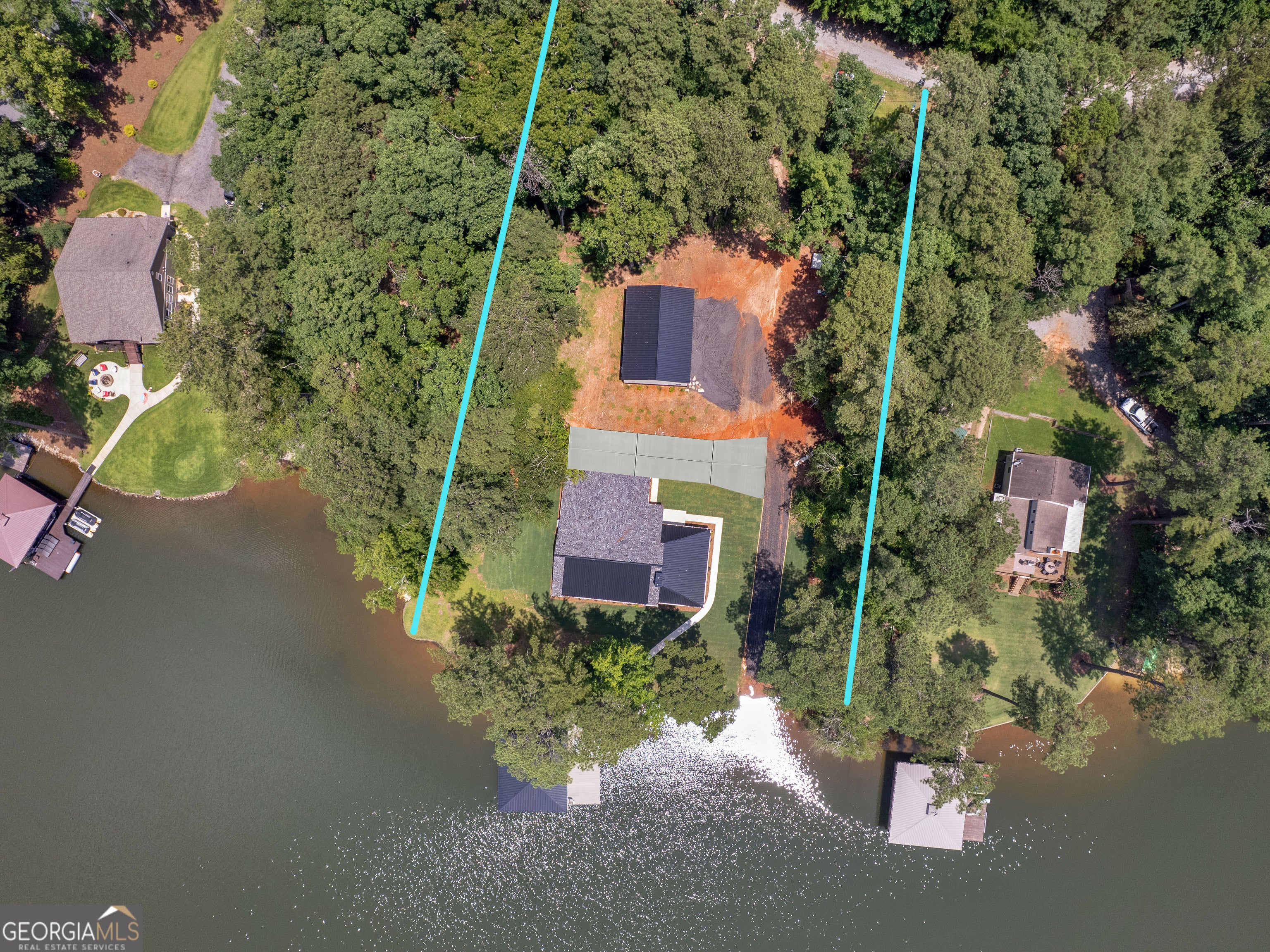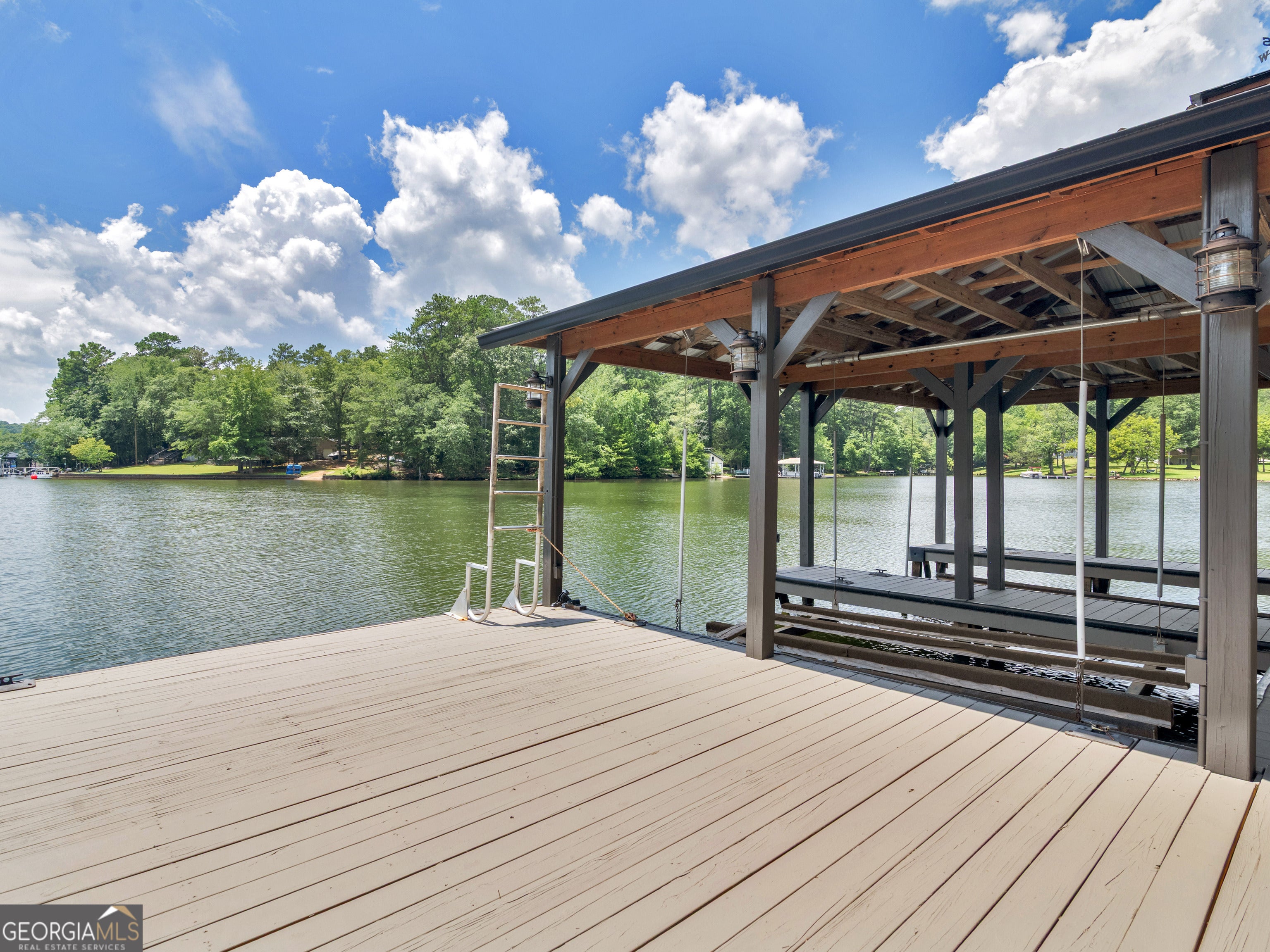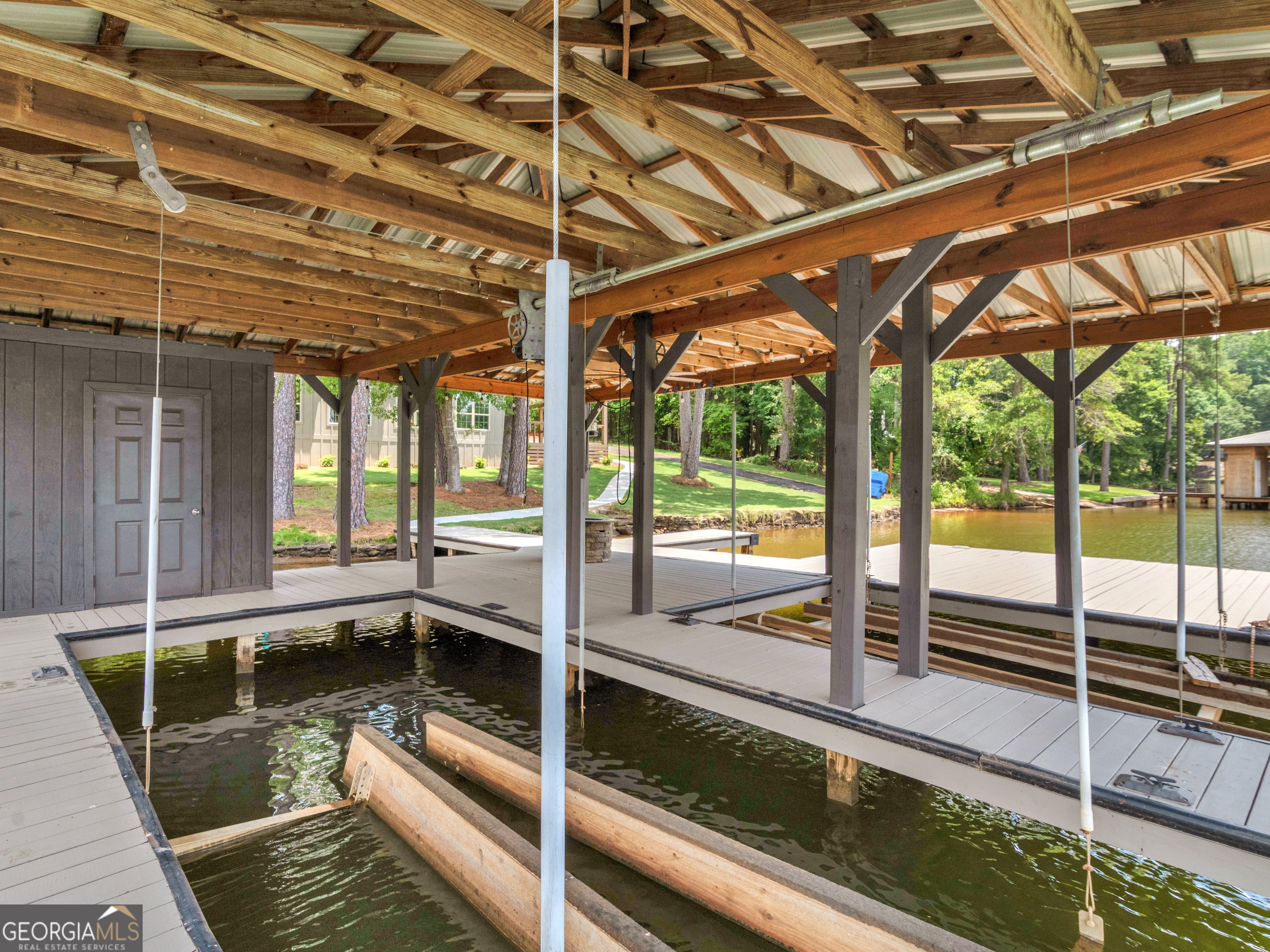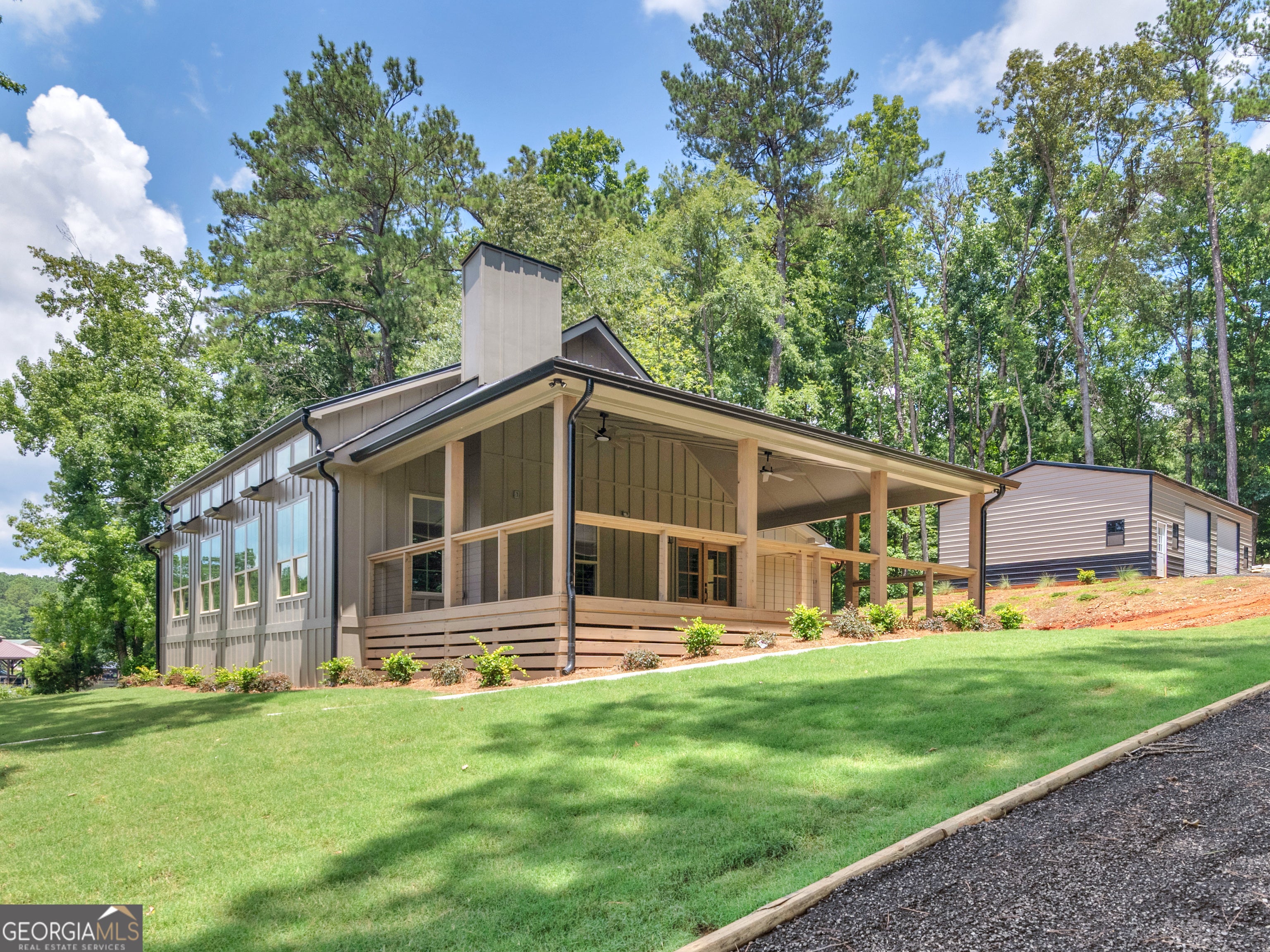 PRICED BELOW RECENT APPRAISAL IN HAND! EXORBITANT AMOUNT OF EQUITY FOR A BUYER! Brand new construction situated on deep water up in a cove on desired Jackson Lake. Situated on a GA Power Lease lot w/ amazing views from all rooms of the home including the secondary guest rooms. Inside features approx. 2,000+/- sq. ft, open concept floor plan w/large kitchen overlooking spacious living room & dining room, 3 bedrooms on the main & 1 bedroom upstairs. Windows all along the front of the home allow for ample lighting thru out the main living area & pristine views of the water. The kitchen features high end finishes such as professional SS 6 burner cooktop, vented exhaust hood, double wall oven, not 1 but 2 french door refrigerators w/freezers, walk in pantry w/cabinets & shelving, 10 ft island w/work station & quartz c'tops & backsplash. LVT flooring thru out entire home allows for easier maintenance. Fireside living room featuring wood beams on the ceiling. Spacious laundry room w/cabinets, folding/hanging area & cleaning supply closet. Relax in the primary suite offering an electric fireplace & more water views. Step into the en-suite bath boasting a double vanity w/quartz c'tops, tiled walk in shower & free standing soaking tub. As if this isn't enough, outside showcases an expansive covered deck perfect for relaxing and/or entertaining while o'looking the lake. Board & Batten exterior finish, double covered dock, approx. 300ft of water frontage, two bay metal shop on a slab & much more! This home is considered a Green Home w/features such as a 16 Plus Sear Heating & Air Unit, Spray foam insulation in walls & ceilings, energy efficient appliances, tankless hot water heater & lifetime shingles and metal roof. Come take a look at this custom build today! ****Please note original structure was torn down except two walls and new structure has been built. Tax records are not accurate.****