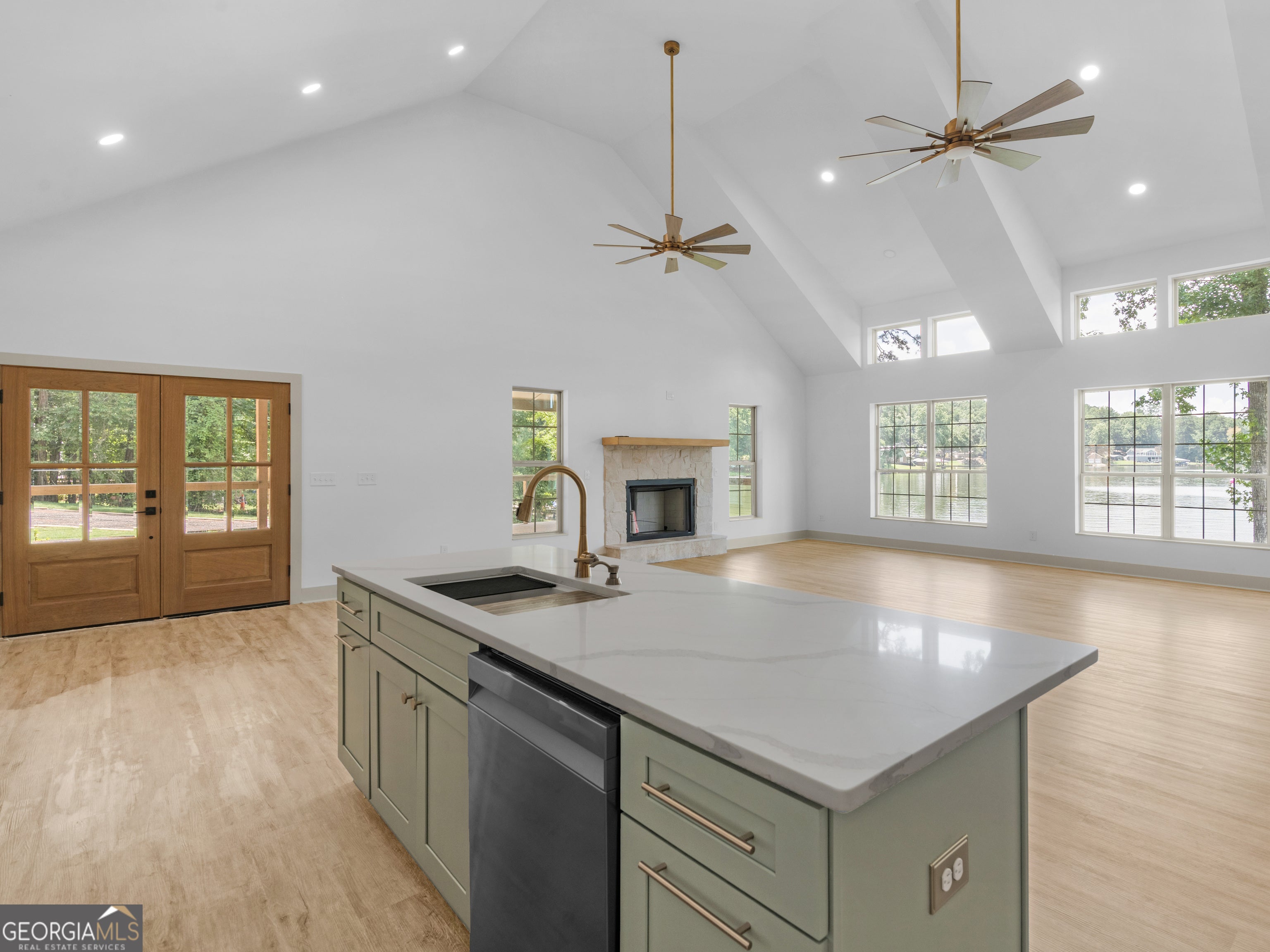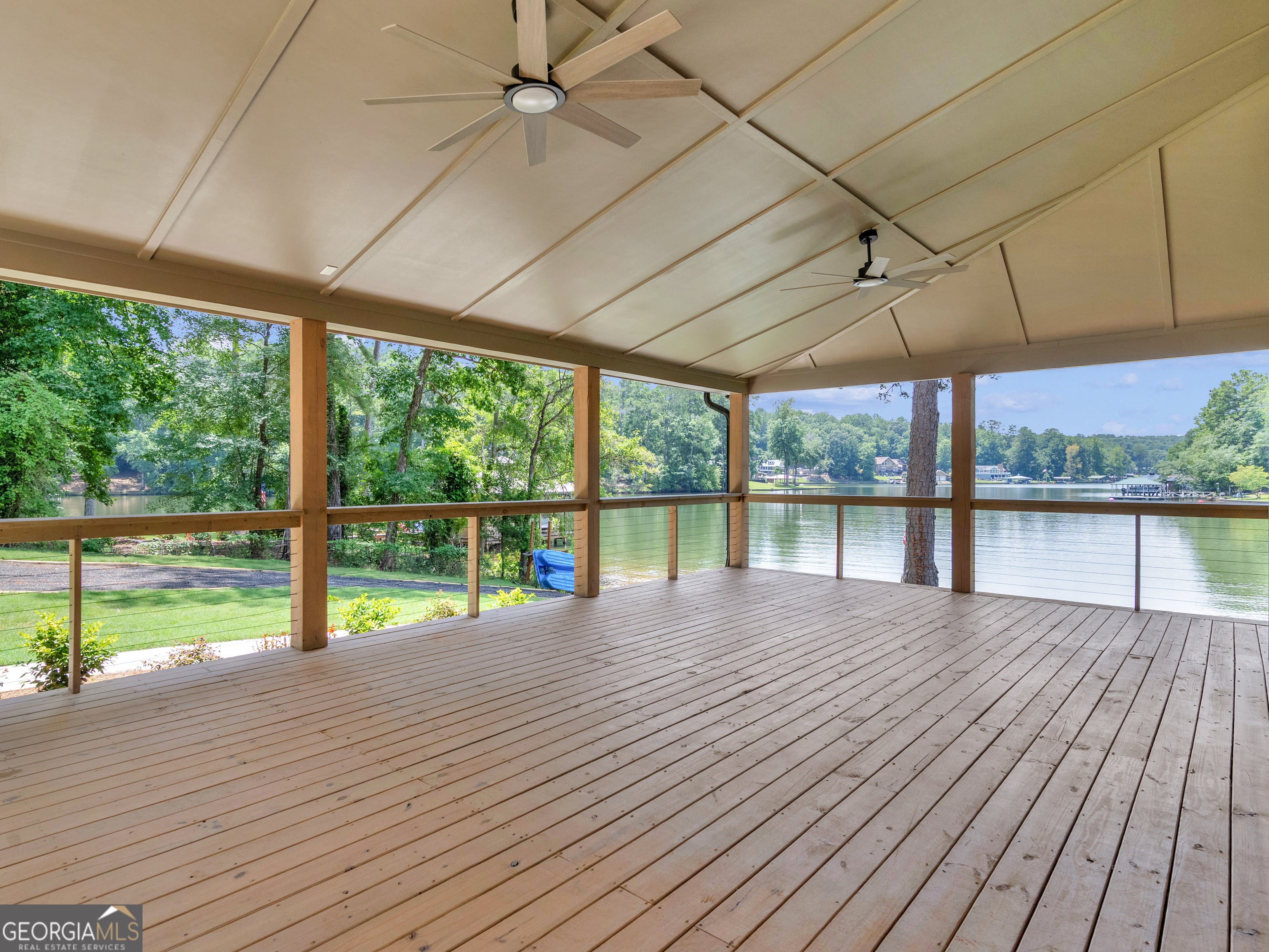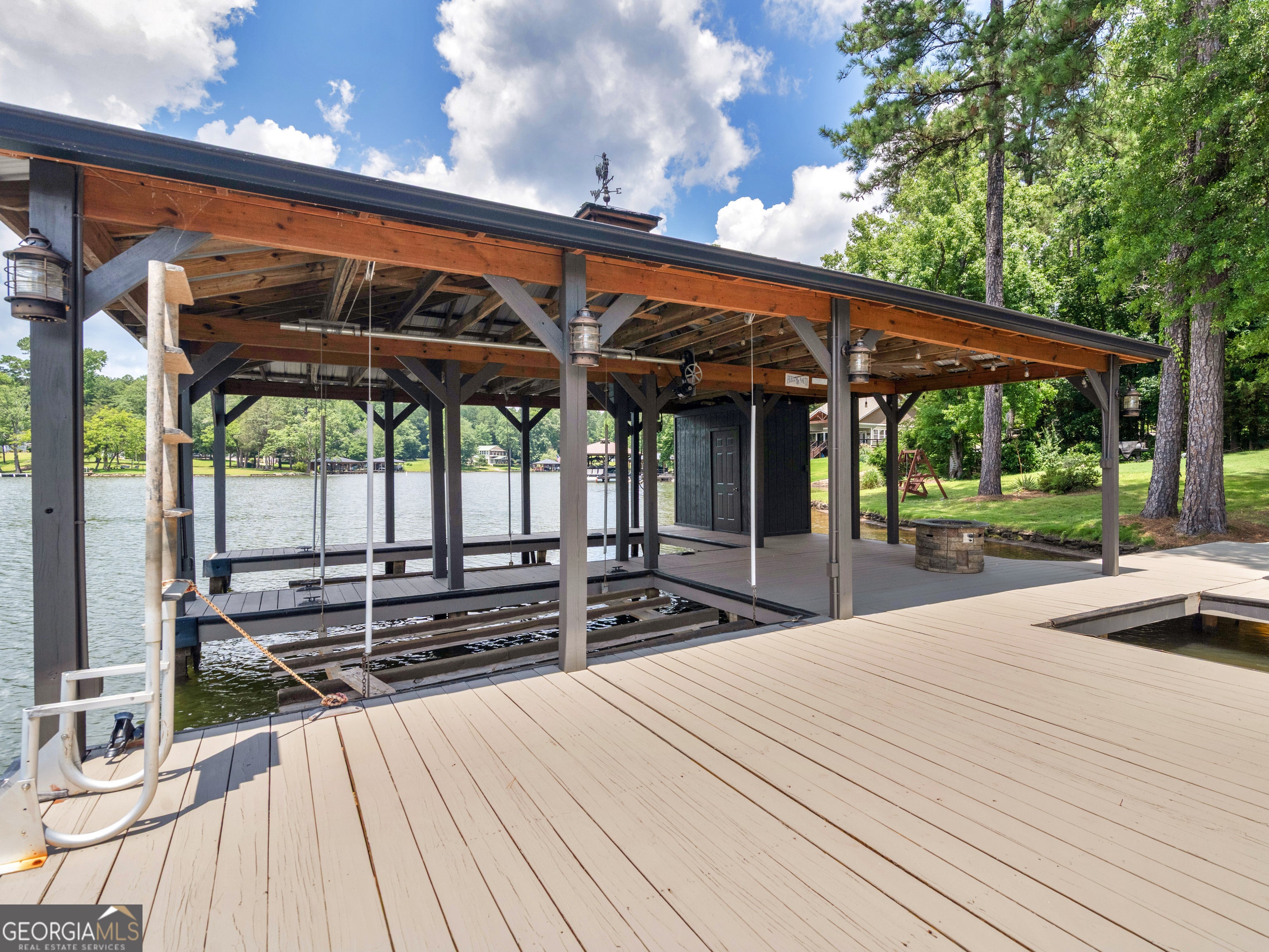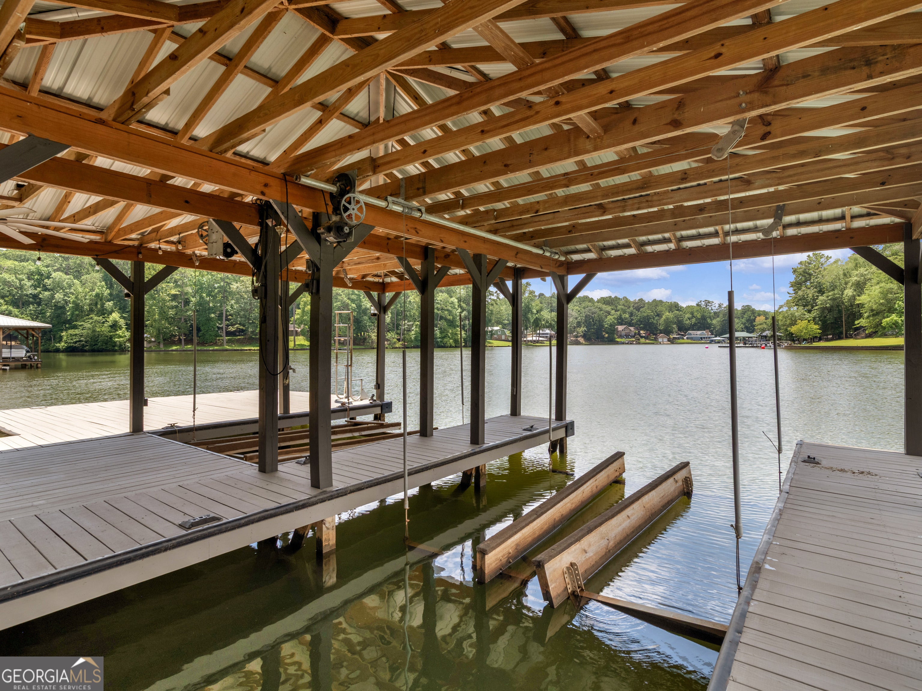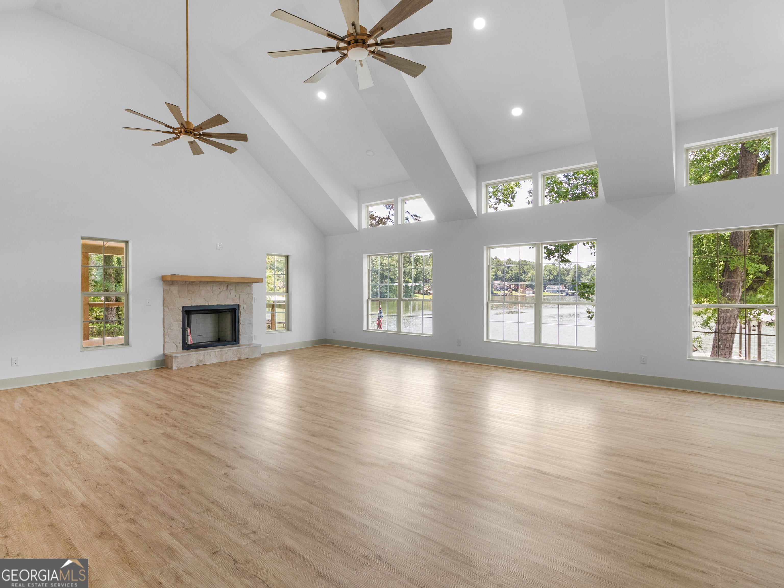 PRICED BELOW RECENT APPRAISAL IN HAND! EXORBITANT AMOUNT OF EQUITY FOR A BUYER! Brand new construction situated on deep water up in a cove on desired Jackson Lake. Situated on a GA Power Lease lot w/ amazing views from all rooms of the home including the secondary guest rooms. Inside features approx. 2,000+/- sq. ft, open concept floor plan w/large kitchen overlooking spacious living room & dining room, 3 bedrooms on the main & 1 bedroom upstairs. Windows all along the front of the home allow for ample lighting thru out the main living area & pristine views of the water. The kitchen features high end finishes such as professional SS 6 burner cooktop, vented exhaust hood, double wall oven, not 1 but 2 french door refrigerators w/freezers, walk in pantry w/cabinets & shelving, 10 ft island w/work station & quartz c'tops & backsplash. LVT flooring thru out entire home allows for easier maintenance. Fireside living room featuring wood beams on the ceiling. Spacious laundry room w/cabinets, folding/hanging area & cleaning supply closet. Relax in the primary suite offering an electric fireplace & more water views. Step into the en-suite bath boasting a double vanity w/quartz c'tops, tiled walk in shower & free standing soaking tub. As if this isn't enough, outside showcases an expansive covered deck perfect for relaxing and/or entertaining while o'looking the lake. Board & Batten exterior finish, double covered dock, approx. 300ft of water frontage, two bay metal shop on a slab & much more! This home is considered a Green Home w/features such as a 16 Plus Sear Heating & Air Unit, Spray foam insulation in walls & ceilings, energy efficient appliances, tankless hot water heater & lifetime shingles and metal roof. Come take a look at this custom build today! ****Please note original structure was torn down except two walls and new structure has been built. Tax records are not accurate.****
