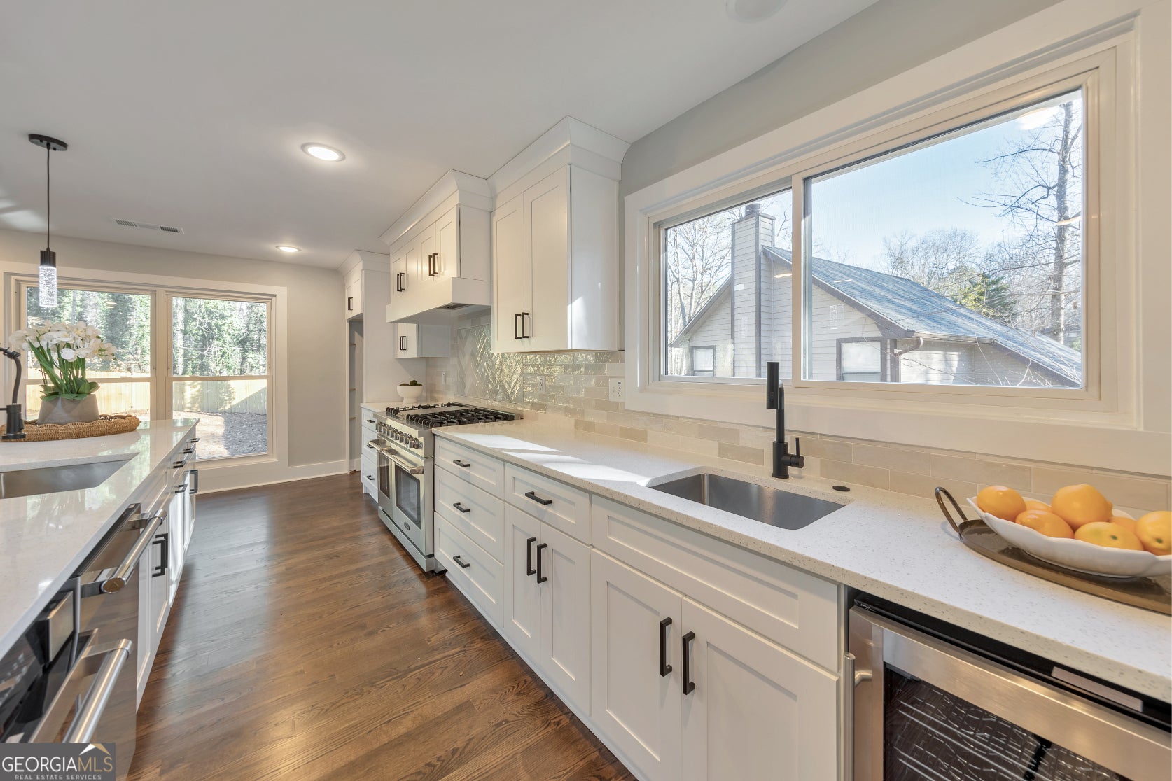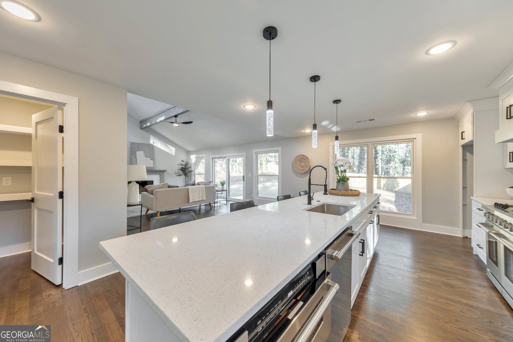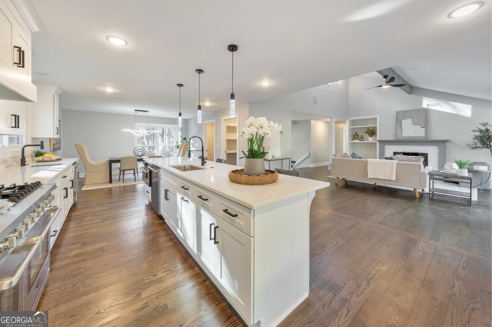 Here it is! The perfect home your family has been looking for! Nestled in a prime East Cobb location within the award-winning Walton High School district, this 5 bed / 3 bath property has been fully renovated inside and out. Recent upgrades include a new roof, gutters with guards, windows, HVAC, gas furnace, heat pump, water heater, electrical service/panel, new fixtures, and updated interior waterlines. Step inside to a main level that radiates warmth and elegance, featuring vaulted beamed ceilings, gleaming hardwood floors, and a fireside living room that seamlessly flows into the chef-inspired kitchen with a 48-inch stove, under-drawer microwave, expansive island, two sinks, wine fridge, and a walk-in pantry. Two main level bedrooms share a beautifully updated hall bath with a double vanity. The primary suite boasts tray ceilings, access to the backyard, and a primary bath offering separate vanities, a luxurious shower, and a spacious walk-in closet. The fully finished basement includes two additional bedrooms each with walk-in closets, an updated full bath, a media room, and multiple storage closets throughout. Flexible space near the entry can function as a mudroom area. The oversized 32-foot garage offers additional storage, new garage doors, and an EV charger - perfect for your Tesla or other electric vehicles. Outdoors, enjoy a fully fenced backyard with fresh zoysia grass and a brand-new patio, perfect for hosting barbeques! Located just a few homes from the neighborhood pool and tennis, and minutes to shopping, dining, I-75, Downtown Roswell, and the Roswell Riverwalk Boardwalk along the Chattahoochee. Don't miss the opportunity to make this exceptional property your own!
