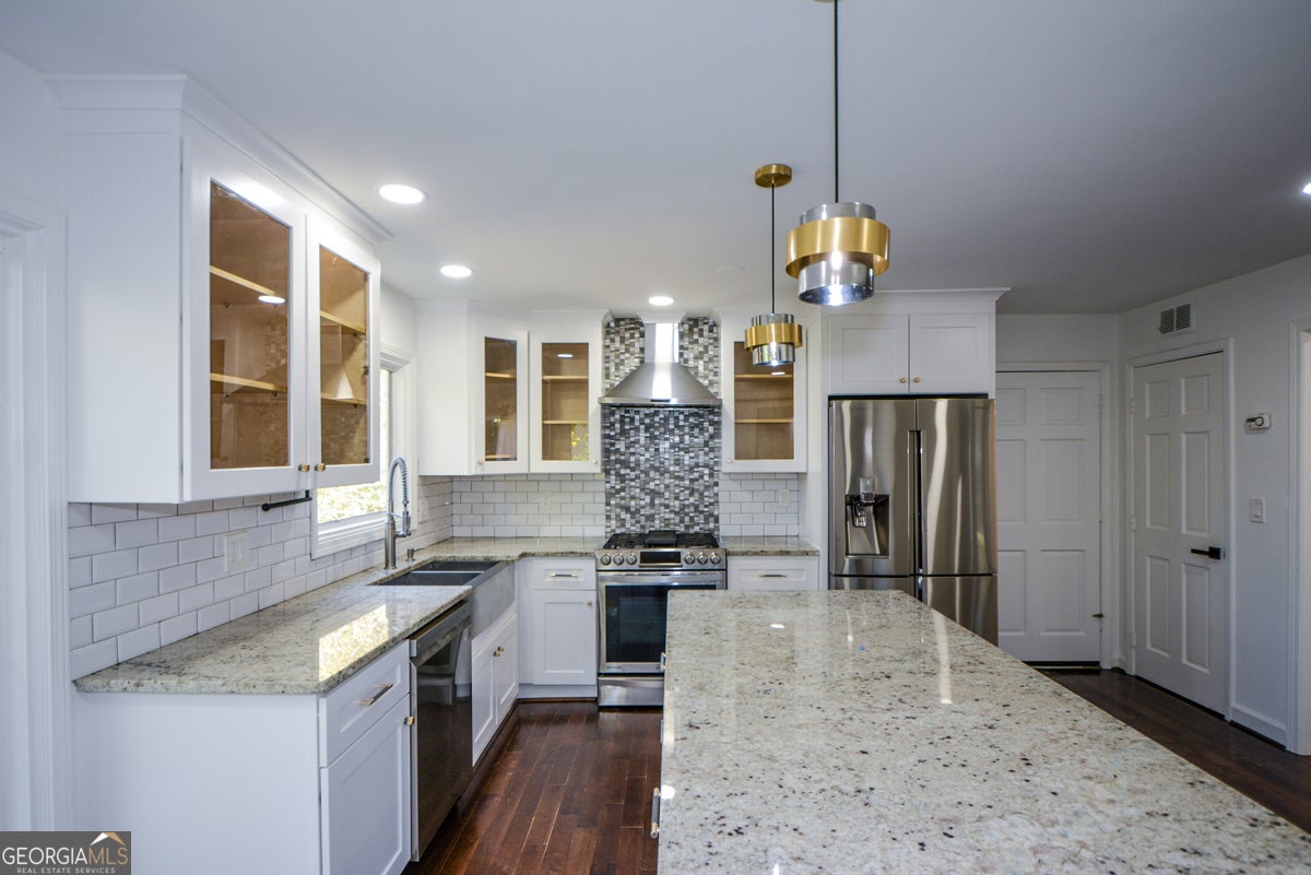 Welcome to this beautiful true story home on a large private lot in the sought after Buckhead Community of Margaret Mitchell. Four Bedrooms and Two & One-half Bathrooms, Finished Basement for additional family room, recreation room etc... This home has been beautifully remodeled with a stunning kitchen and gorgeous modern bathrooms! A Circular Driveway plus two car garage gives you ample parking spacedoors ! Updates and upgrades throughout make this home feel luxurious and modern. A beautiful foyer welcome you into this home featuring walls of windows in the fireside family room and formal dining room. The kitchen, most beautiful, white cabinetry, granite countertops, stainless steel appliances, kitchen Island is large and wonderful for entertaining, and a beautiful barn door for the pantry. Upstairs features for very large bedrooms and the master suite with a sitting area, walk-in closet, new master bathroom with double vanities, separate tub and shower and specialty lighting with Bluetooth capability. All bathrooms have been modernized with specialty lighting, and Bluetooth capability for music. The laundry room is upstairs with the washer and dryer included, and it is huge!The backyard is a wonderful with a gigantic patio on the lower level or a big party deck on the upper level all overlooking the fenced backyard with playset. This home is perfect for entertaining or perfect for the family lifestyle!You will love this home, so come see it today! Regarding the area: At less than one square mile, the Margaret Mitchell neighborhood remains well-known because of its namesake and unique feel. On summer mornings, you will pass friendly neighbors walking their dogs under blue skies down the winding, tree-lined streets. Developed in the 1950s, Margaret Mitchell neighborhood has somehow retained the elusive qualities for which that decade is known. An upscale neighborhood, home styles vary dramatically from newer traditional McMansions to retro modern 60s style ranches. Most homes in the Margaret Mitchell neighborhood are situated on large lots with rolling green lawns and colorful landscaping. The mostly quiet streets are busy with walkers, joggers, and stroller-pushers nearly any day of the week. Kids congregate in front yards for afternoon games, and everyone seems to know each other. There is a strong neighborhood civic association, which organizes fun social events like holiday cocktail parties for adults and Christmas cookie decorating parties for kids. Kids have a playgroup, and the association also organizes a security patrol, a resident directory, book club, pet directory, and many other community-related activities. The iconic Westminister Schools are a landmark of the neighborhood, in addition to it's namesake school, Margaret Mitchell School.