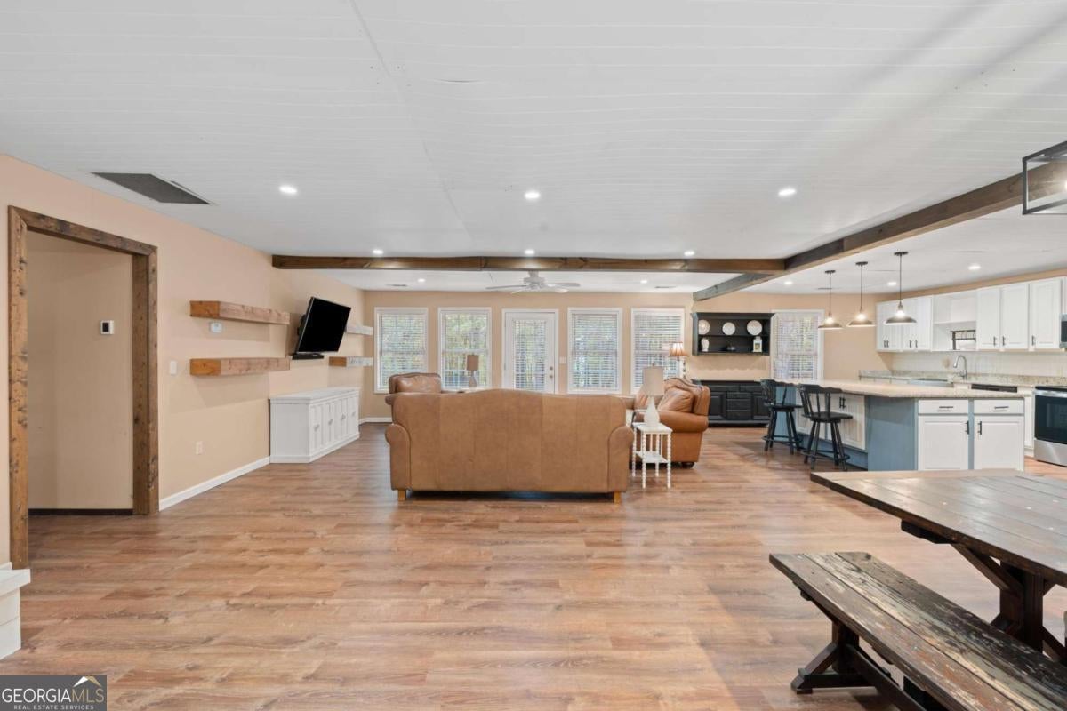 Charming Bungalow Ranch on Private, Wooded, 2+ Acre Lot - No HOA! Welcome to this inviting 3-bedroom, 2-bathroom ranch offering a peaceful retreat on a spacious, tree-lined 2+ acre lot. Bursting with character and modern farmhouse touches, this home has seen many updates yet still leaves room for your personal finishing touches. Inside, you'll find luxury vinyl flooring throughout and an open-concept layout ideal for everyday living and entertaining. The stylish kitchen features white shaker cabinetry, granite countertops, a large island with breakfast bar, and a generous walk-in pantry-all open to the dining area and cozy family room accented by a beamed ceiling. The oversized primary suite offers a walk-in closet and private en suite bath, while the secondary bedrooms share a charming hall bath featuring a classic clawfoot tub. Step outside to the back yard and enjoy the serene privacy of your own backyard oasis-perfect for gatherings, grilling, or quiet mornings with coffee. With its blend of updates, space, and opportunity, this home is ready for your finishing touches to make it truly shine!