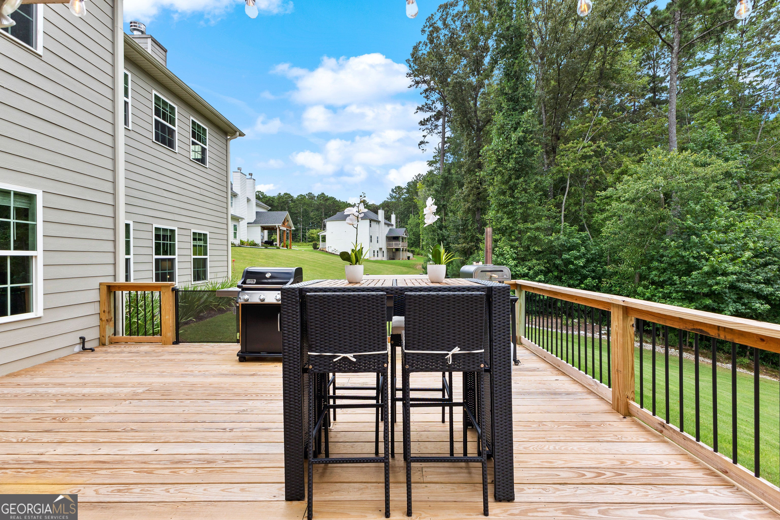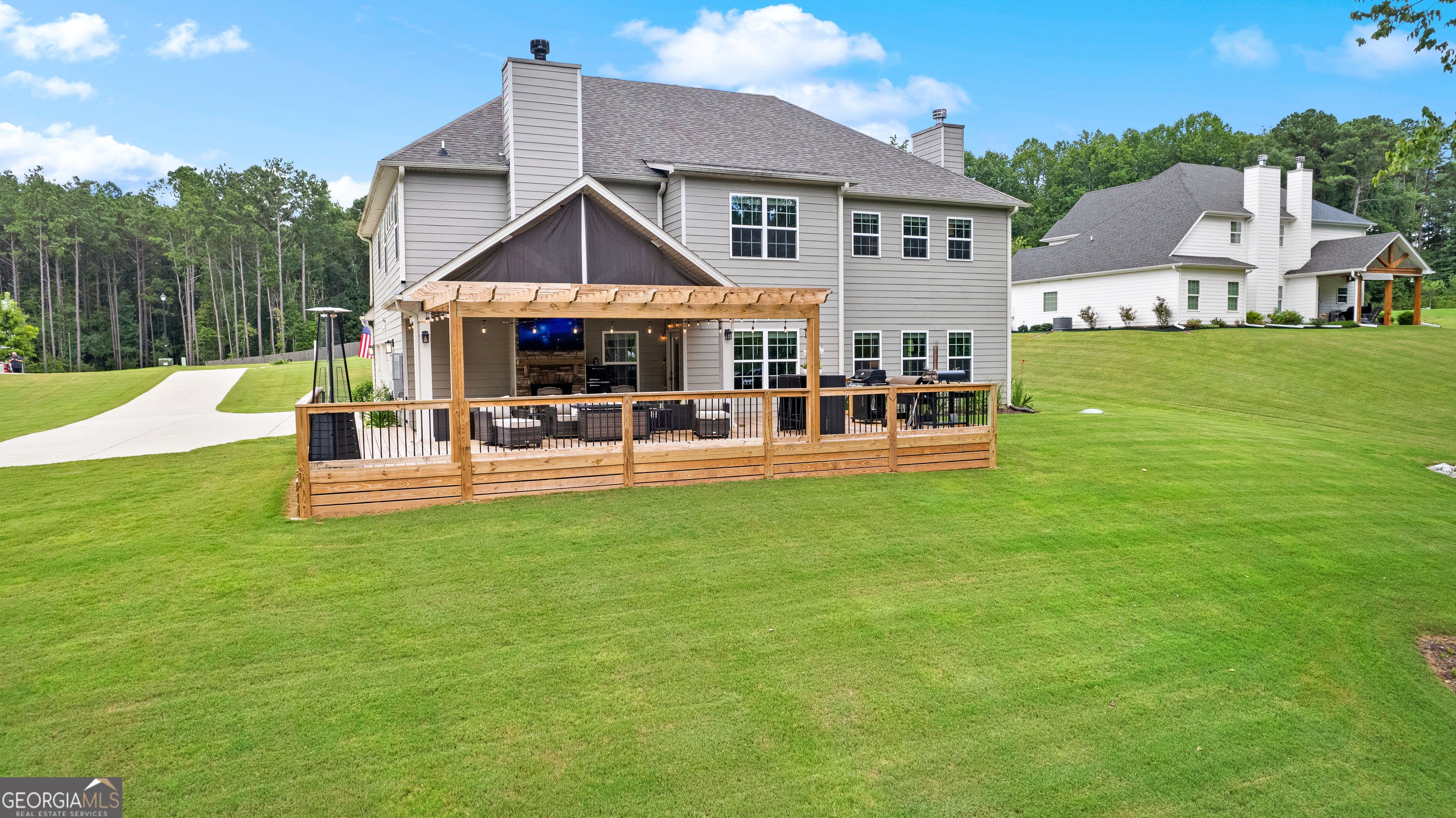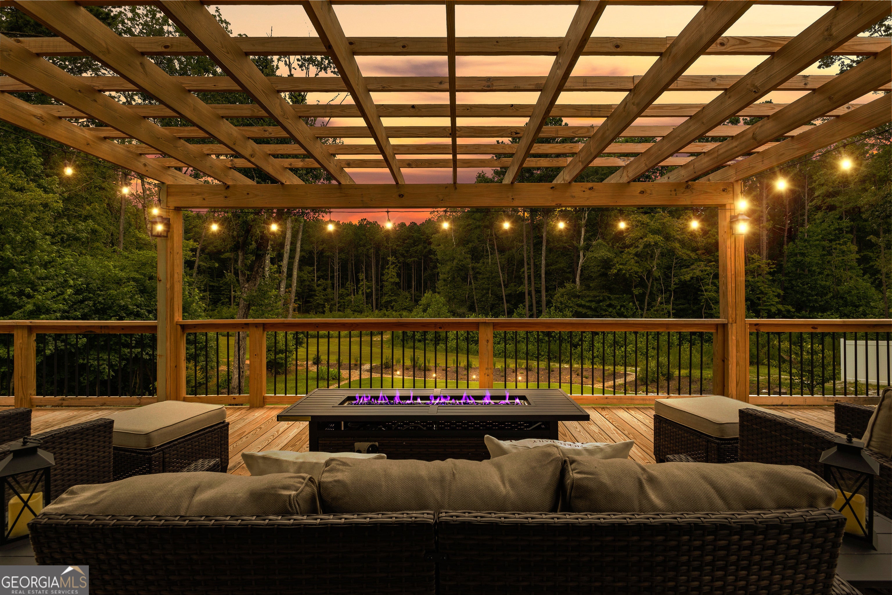 Relaxation and sunset views await in this stunning 5-bedroom, 4.5-bath home set on a full acre with peaceful privacy and breathtaking west-facing views. Enjoy unforgettable evenings from the expansive back deck, ideal for entertaining or simply soaking in the sunset. Inside, you'll find one of the neighborhood's most spacious and functional floorplans, featuring open living areas, a media room perfect for movie nights, and a flexible bedroom that doubles as a music or hobby room. The owners have enhanced the natural setting by extending the tree line and adding a private walking path-your own backyard retreat. Located just minutes from Serenbe and less than 20 minutes to downtown Atlanta, this home offers both convenience and tranquility. Thoughtful upgrades include four mounted TVs, refrigerator, washer, and dryer-all included-making this property truly move-in ready. This home blends elegance, comfort, and value in one of the area's most serene settings. Schedule your private showing today.