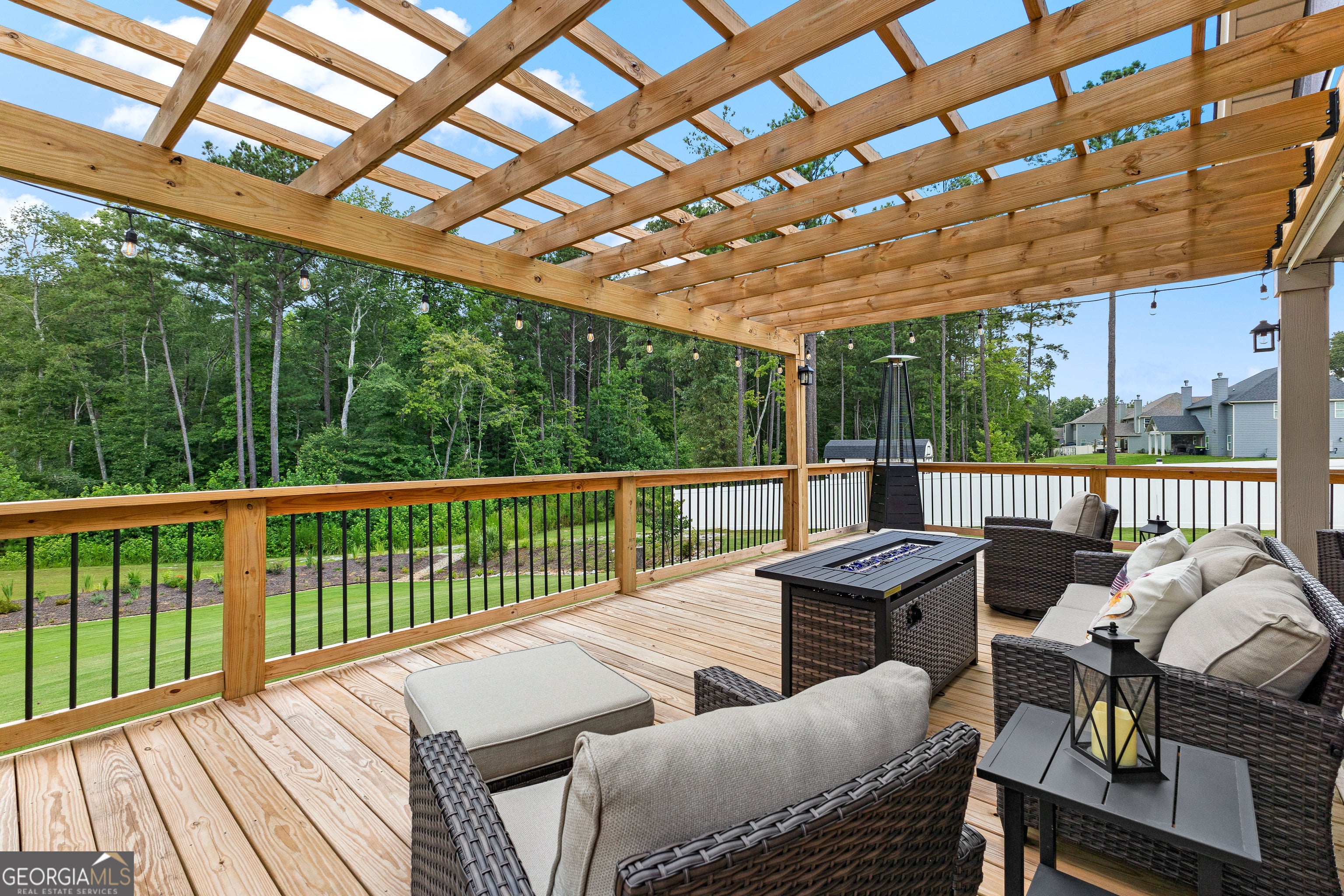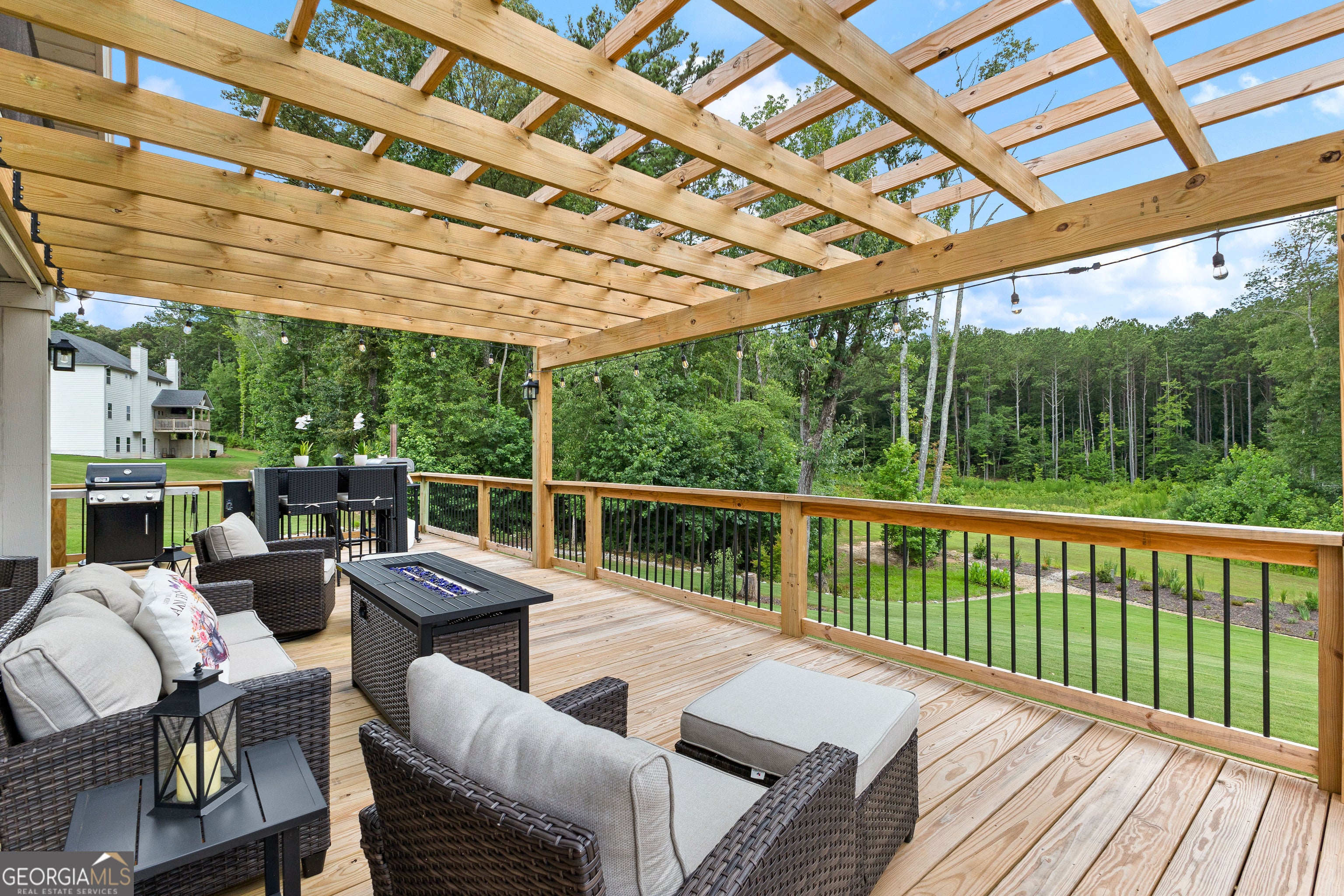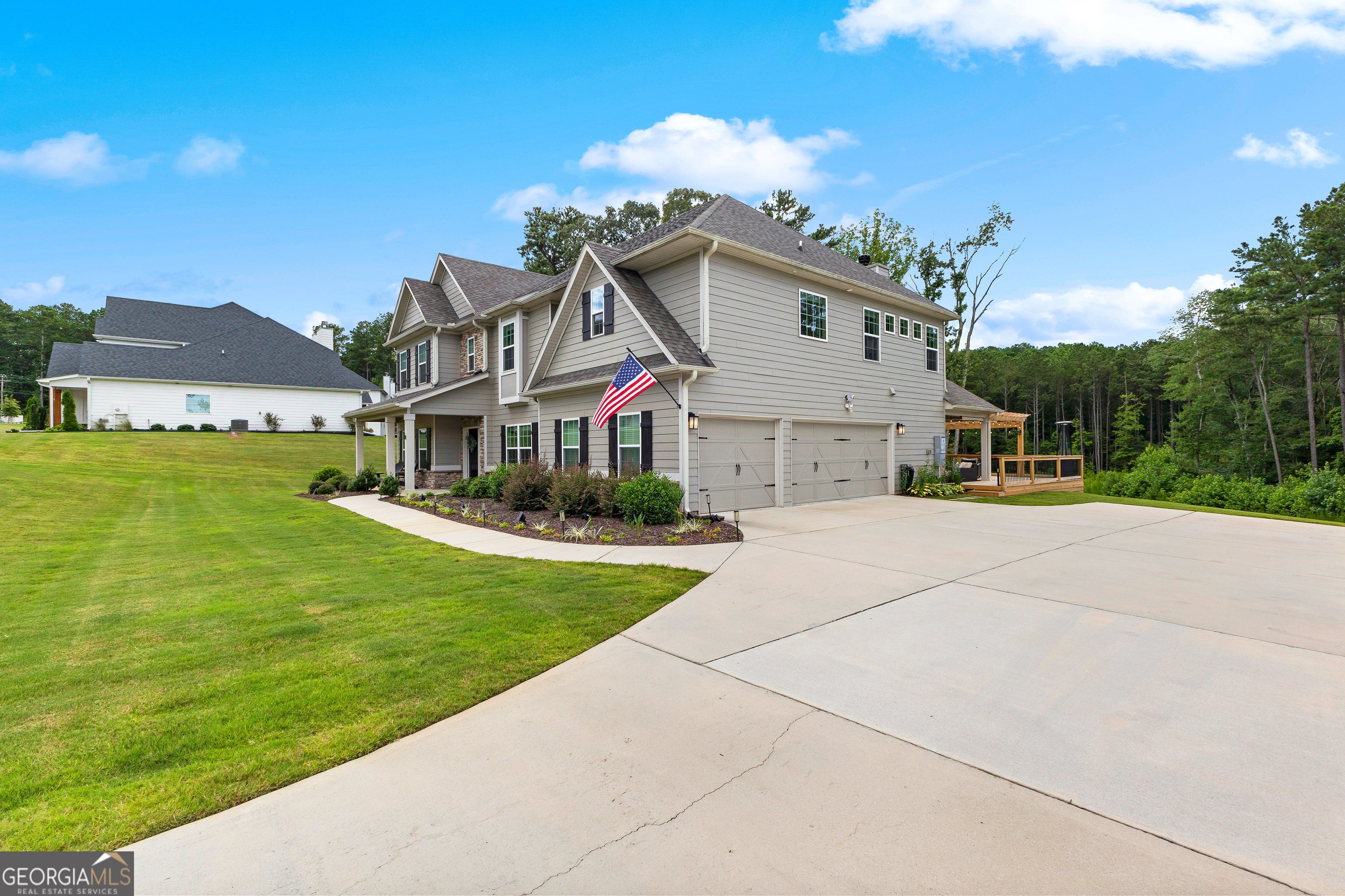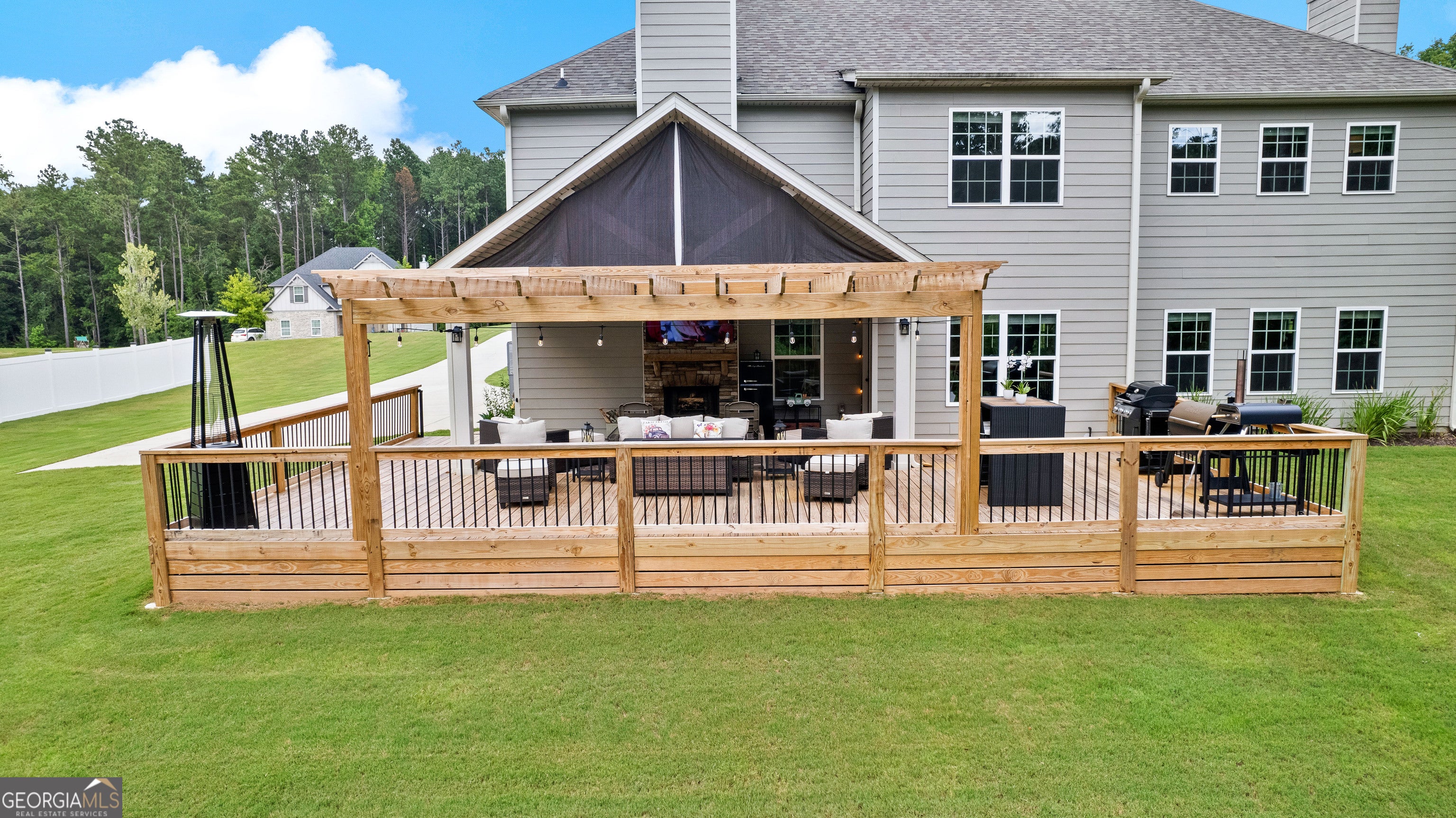 Relaxation and sunset views await in this stunning 5-bedroom, 4.5-bath home set on a full acre with peaceful privacy and breathtaking west-facing views. Enjoy unforgettable evenings from the expansive back deck, ideal for entertaining or simply soaking in the sunset. Inside, you'll find one of the neighborhood's most spacious and functional floorplans, featuring open living areas, a media room perfect for movie nights, and a flexible bedroom that doubles as a music or hobby room. The owners have enhanced the natural setting by extending the tree line and adding a private walking path-your own backyard retreat. Located just minutes from Serenbe and less than 20 minutes to downtown Atlanta, this home offers both convenience and tranquility. Thoughtful upgrades include four mounted TVs, refrigerator, washer, and dryer-all included-making this property truly move-in ready. This home blends elegance, comfort, and value in one of the area's most serene settings. Schedule your private showing today.