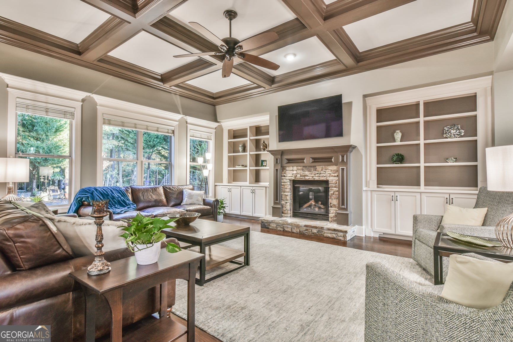 This is a gated community, for access to the Open House please contact the listing agent. Elegant Brick Estate in Gated Stonewater Creek | Mill Creek School District Welcome to this exceptional residence nestled in the highly coveted gated community of Stonewater Creek, located within the award-winning Mill Creek school district. This move-in ready home combines timeless elegance with modern luxury-an absolute must-see. Main Level Highlights Crafted with four-sided brick and refined stone accents, this home opens to a spacious dining room featuring coffered ceilings and custom board-and-batten moldings-perfect for hosting memorable gatherings. The gourmet kitchen is a chef's dream, complete with a farmhouse sink, double ovens, built-in microwave, walk-in pantry, and a generous island that flows seamlessly into the expansive family room. Here, a stacked stone fireplace, built-in bookcases, and matching coffered ceilings create a warm and inviting atmosphere. A private guest suite with ensuite bath on the main level adds convenience and flexibility. Upstairs Retreats Upstairs, discover four generously sized bedrooms and three full bathrooms. The luxurious primary suite boasts its own fireplace and a spa-inspired bath with a walk-in shower. A versatile bonus room offers endless possibilities-ideal for a playroom, media lounge, or home office. Extra Space & Outdoor Living An unfinished basement provides ample room for future expansion or storage. Outside, enjoy a covered patio and a dedicated grilling area-perfect for relaxing or entertaining under the Georgia sky. Why You'll Love It With its prime location, upscale finishes, and thoughtful layout, this home is poised to sell quickly. Don't miss your chance to experience the best of Stonewater Creek living.