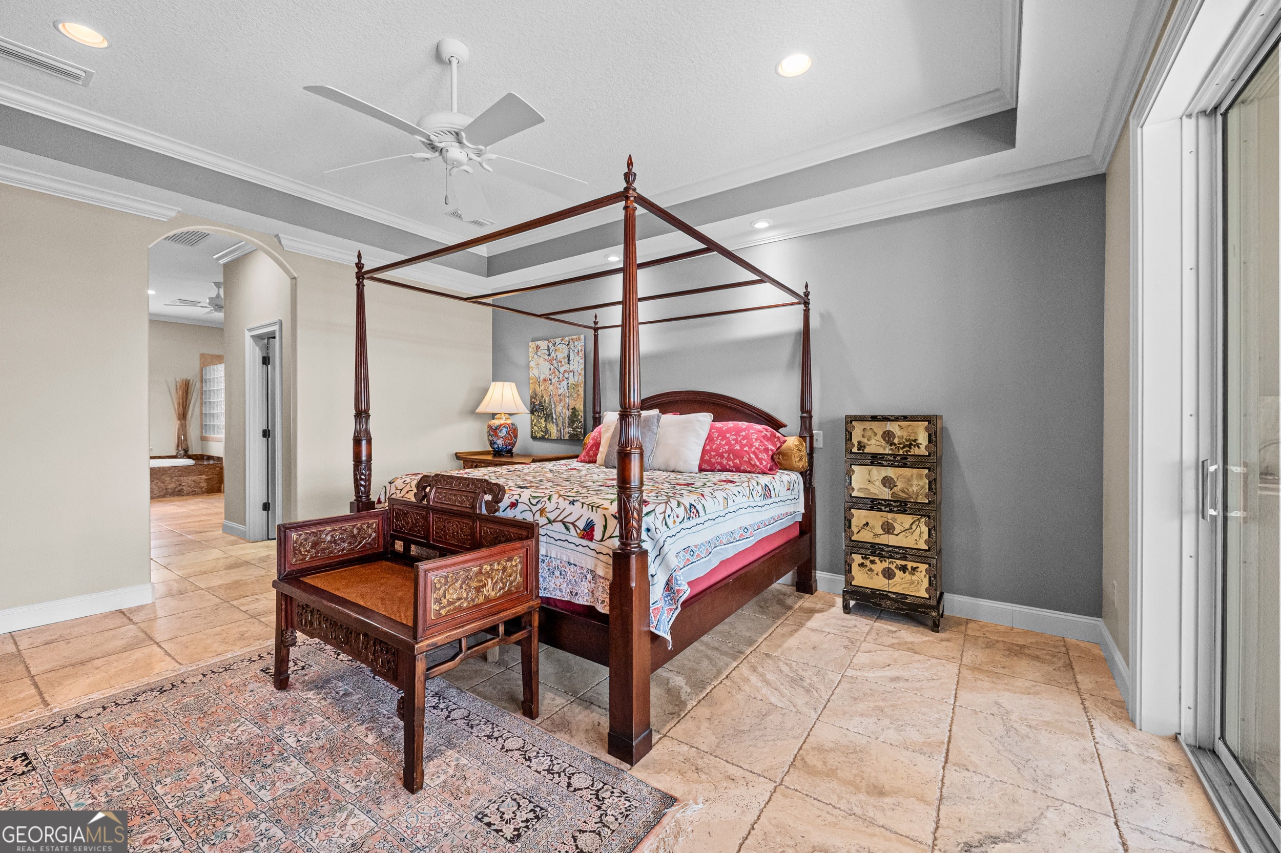 - Interior FeaturesBookcases, Double Vanity, High Ceilings, Master On Main Level, Separate Shower, Soaking Tub, Split Bedroom Plan, Tile Bath, Tray Ceiling(s), Walk-In Closet(s)