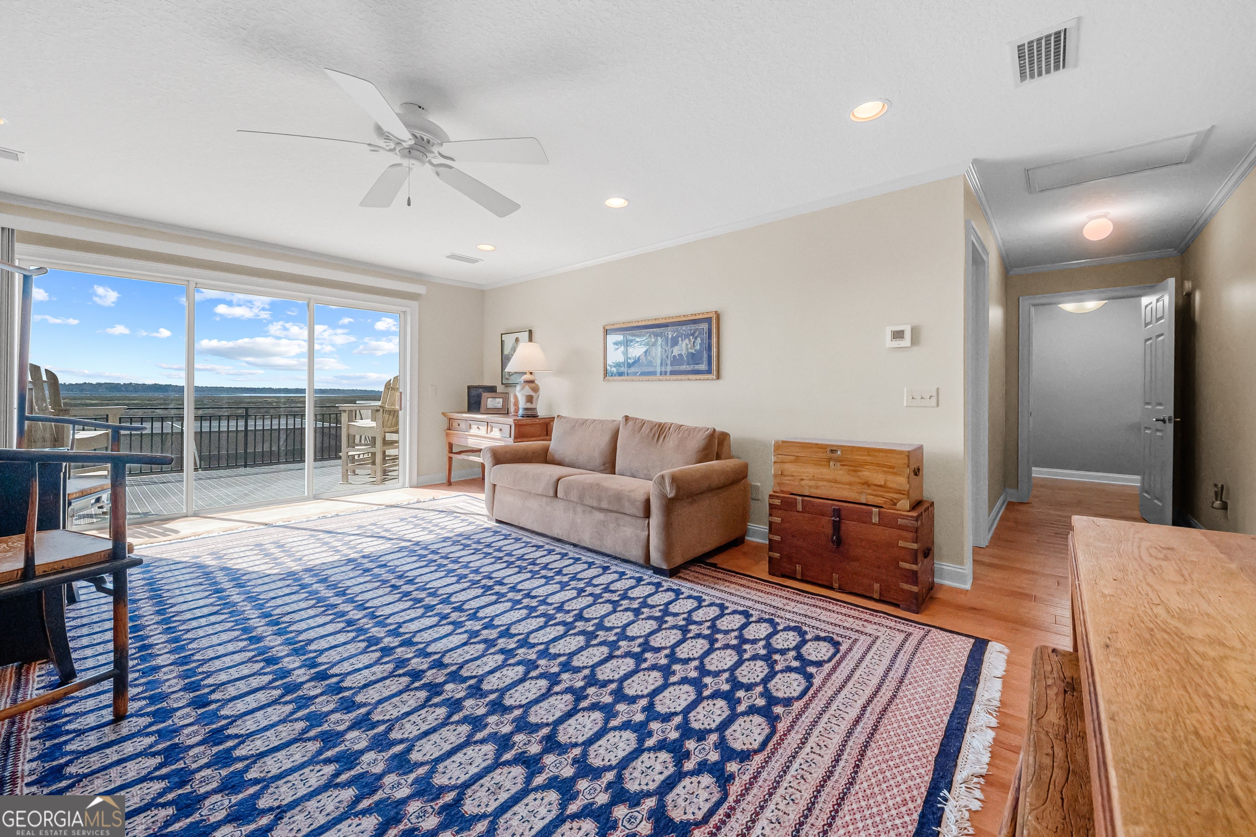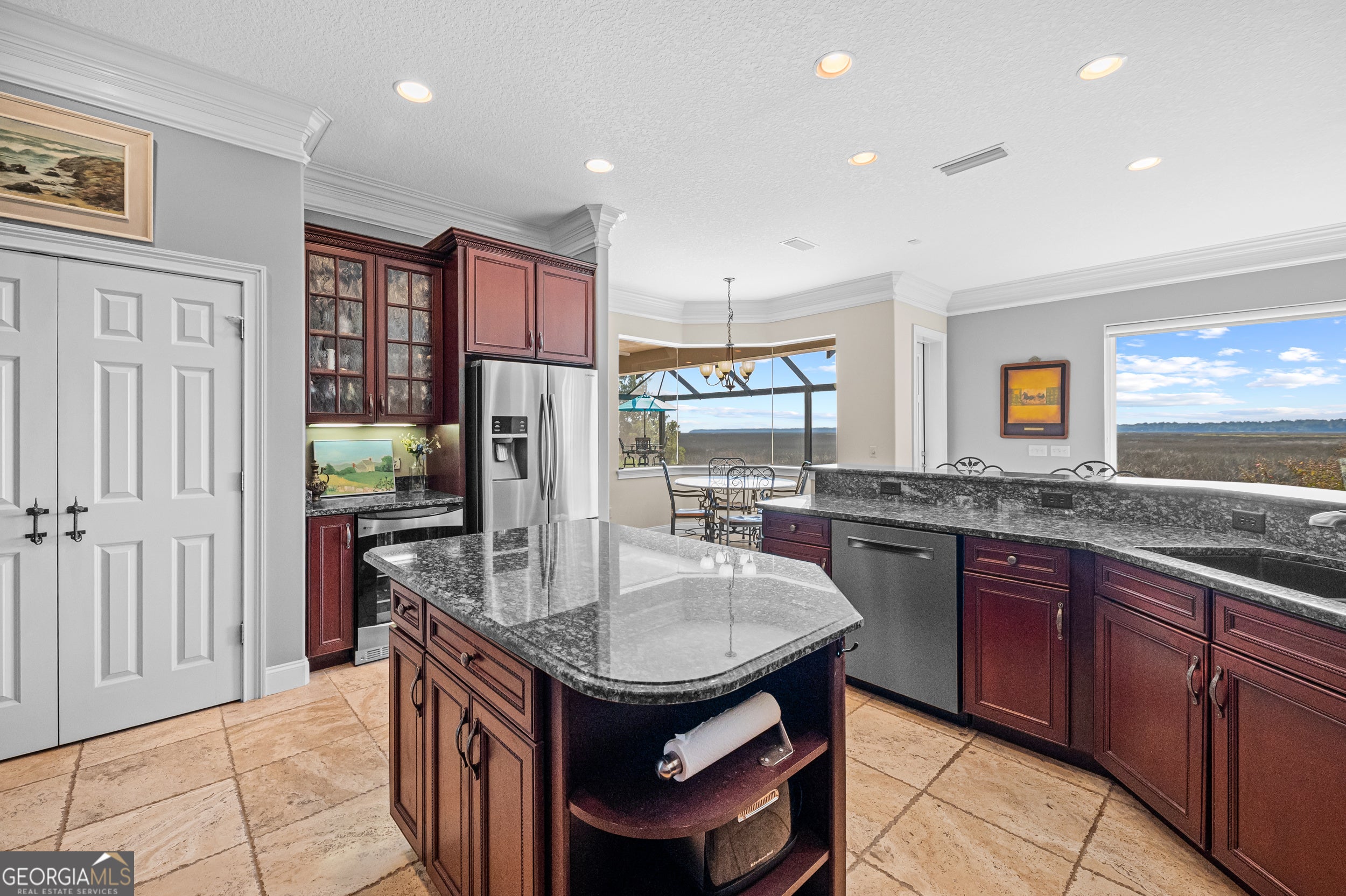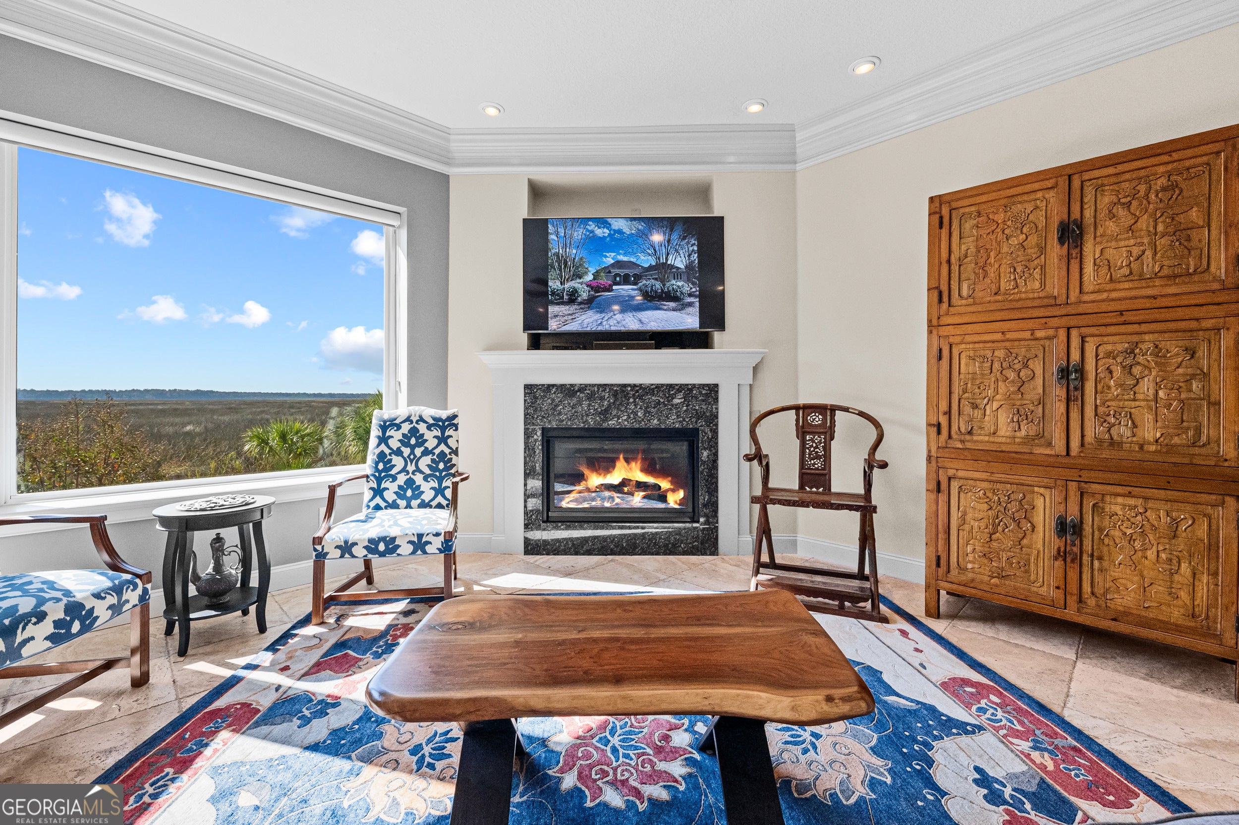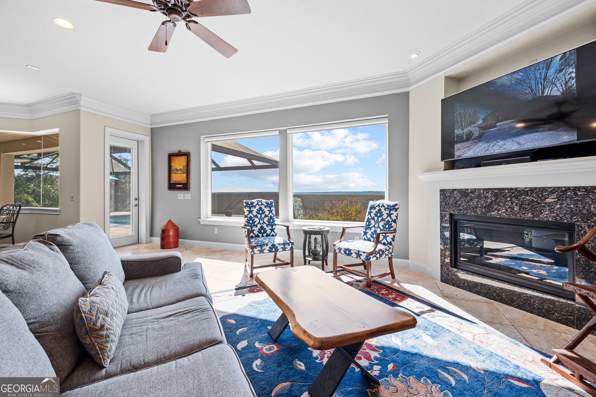 Experience serene marsh front living in this durable, energy-efficient custom home built by Jacksonville-based builder James (Jim) L. Pelkey. Thoughtfully designed and constructed to maximize energy efficiency and long-term durability, this 4-bedroom, 4-bath residence (plus office) showcases quality craftsmanship and attention to detail throughout. Step inside to discover spacious, light-filled living areas accented by tray ceilings and elegant finishes. The chef's kitchen features a gas range with hood, center island, wine fridge, and a breakfast nook framed by panoramic windows overlooking the marsh. The primary suite offers a peaceful retreat with two French doors leading in, dual walk-in closets with built-ins, a luxurious jacuzzi tub, double vanity, and sliding glass doors opening directly to the screened pool area. Outdoors, enjoy resort-style living with a heated saltwater pool, resurfaced in 2025, surrounded by cool decking and a new panoramic screened enclosure. The outdoor kitchen-complete with a natural gas grill and fireplace-makes entertaining effortless against the backdrop of stunning marsh views. Upstairs, energy-efficient details continue with insulated flooring for sound absorption, energy film on sliding doors leading to a balcony overlooking the marsh, and double-paned windows throughout. Additional highlights include a 3-car garage with and an attic with built-in shelving, double-paned windows throughout the home, and Logix ICF construction. A rare opportunity to own a strongly built, energy-smart coastal home that perfectly blends functionality, efficiency, and marshfront beauty.