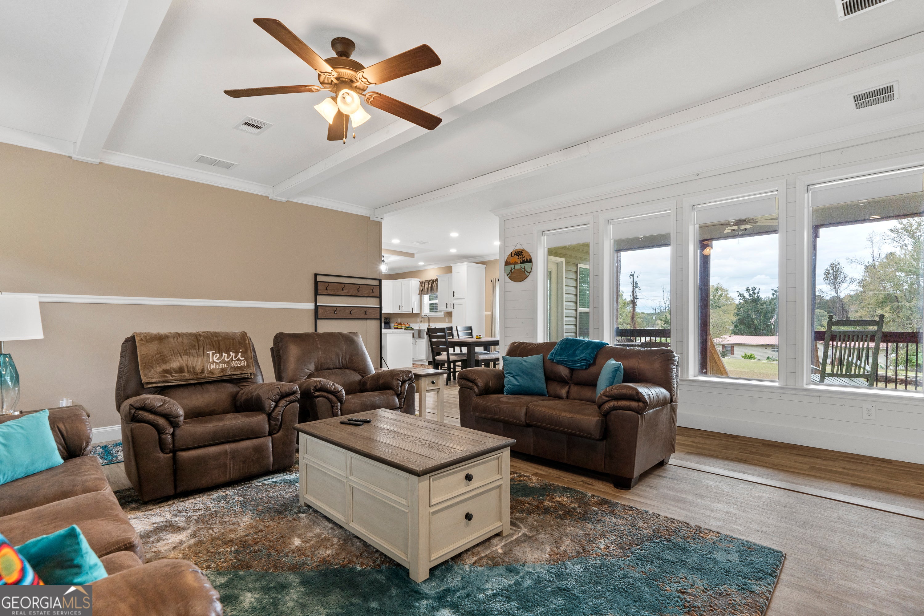 Experience modern comfort and spacious living in this beautifully designed Cavco Timberview 32663E. This three-bedroom, two-bath home combines quality craftsmanship with contemporary style on over an acre of land. Step inside to an inviting open-concept floor plan that seamlessly connects the living, dining, and kitchen areas-perfect for both everyday living and entertaining. The gourmet kitchen features rich cabinetry, premium countertops, a large island, and modern appliances, creating a stylish yet functional centerpiece for the home. The private primary suite is a true retreat, featuring an oversized walk-in closet and a luxurious en-suite bath with dual vanities, soaking tub, and separate tile shower. Two additional bedrooms and a full guest bath provide comfortable accommodations for family or guests. A dedicated utility room adds everyday convenience, while thoughtful design touches-like crown molding, large windows with lake views, and durable flooring-enhance the home's overall appeal. Built by Cavco, a leader in quality manufactured housing, the Timberview 32663E offers energy efficiency, solid construction, and timeless curb appeal. With its 32' 66' footprint and nearly 2,000 square feet of well-planned living space, this home delivers the perfect blend of practicality and elegance-ready for your personal touch and lifestyle. Don't miss out on this one! Selling fully furnished.