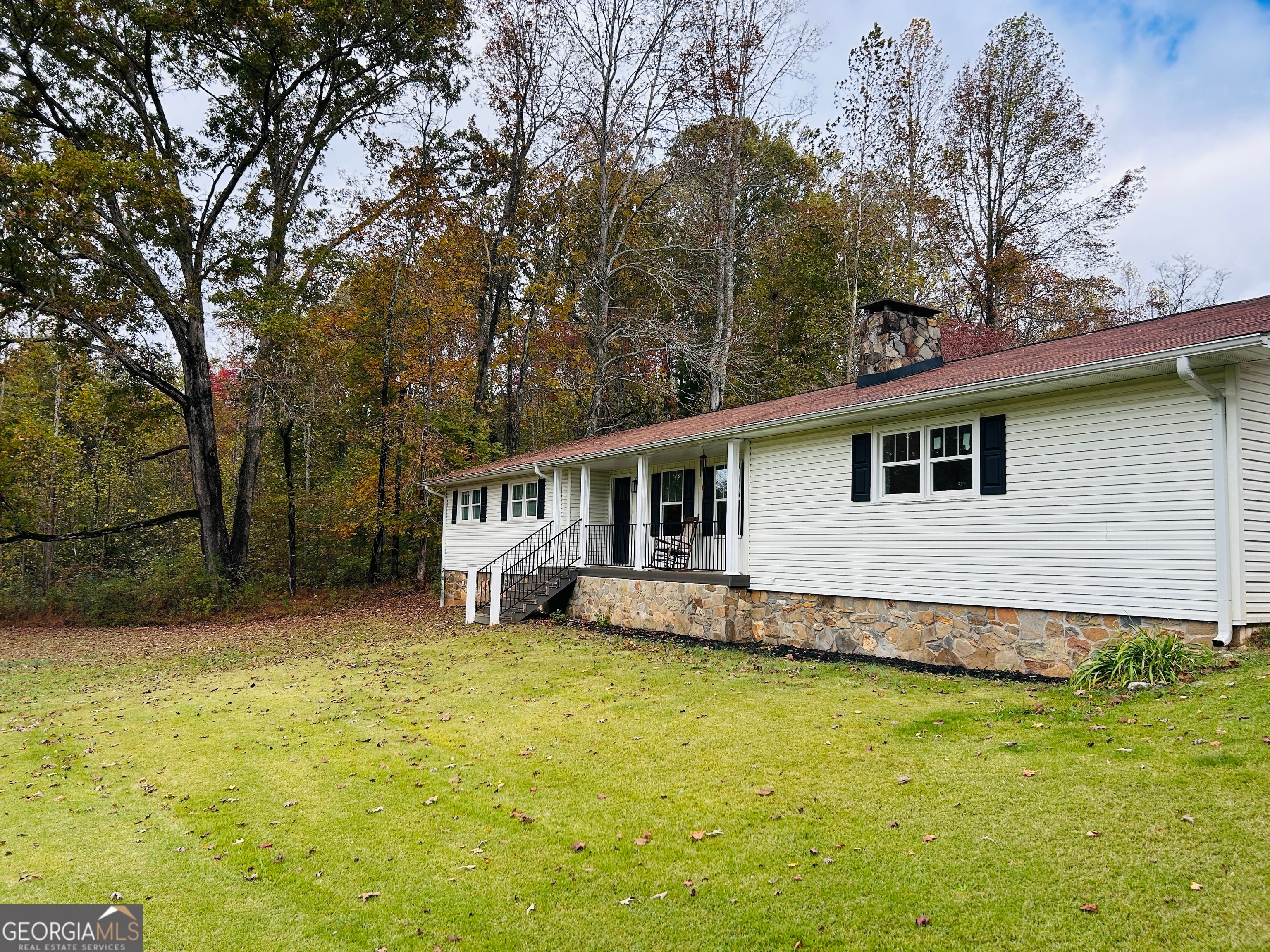 Amazing country setting in the Northeast Georgia Mountains. This single level living ranch home sits on approximately 3.3 acres and provides plenty of peace and quiet just outside of Clarkesville. This property was completely renovated in 2021 and features luxury vinyl flooring throughout the home. The kitchen renovation provided plenty of new cabinetry and solid surface counter tops extending to the central island. The open floor plan expands to the living room featuring a brick fireplace and huge picture windows to frame the tranquil country setting. Just off the dining area, a Florida room/den provides great office space or a cozy sitting area to enjoy a book or cup of coffee. This room allows you to take in the private natural setting of the back yard through a bank of windows covering the entire back wall. The primary bedroom feature two separate closet spaces and a large ensuite bath. Two more large bedrooms are serviced by another hall bath, all with renovated fixtures and cabinets. Come sit on the front porch in the rocking chair and enjoy the beautiful landscape of the front yard rising to the backdrop of the country hillside of North GA. Relax as an occasional deer comes scampering through the yard. Need room to expand or build a shop? Its got plenty of space on this very usable 3 acres.