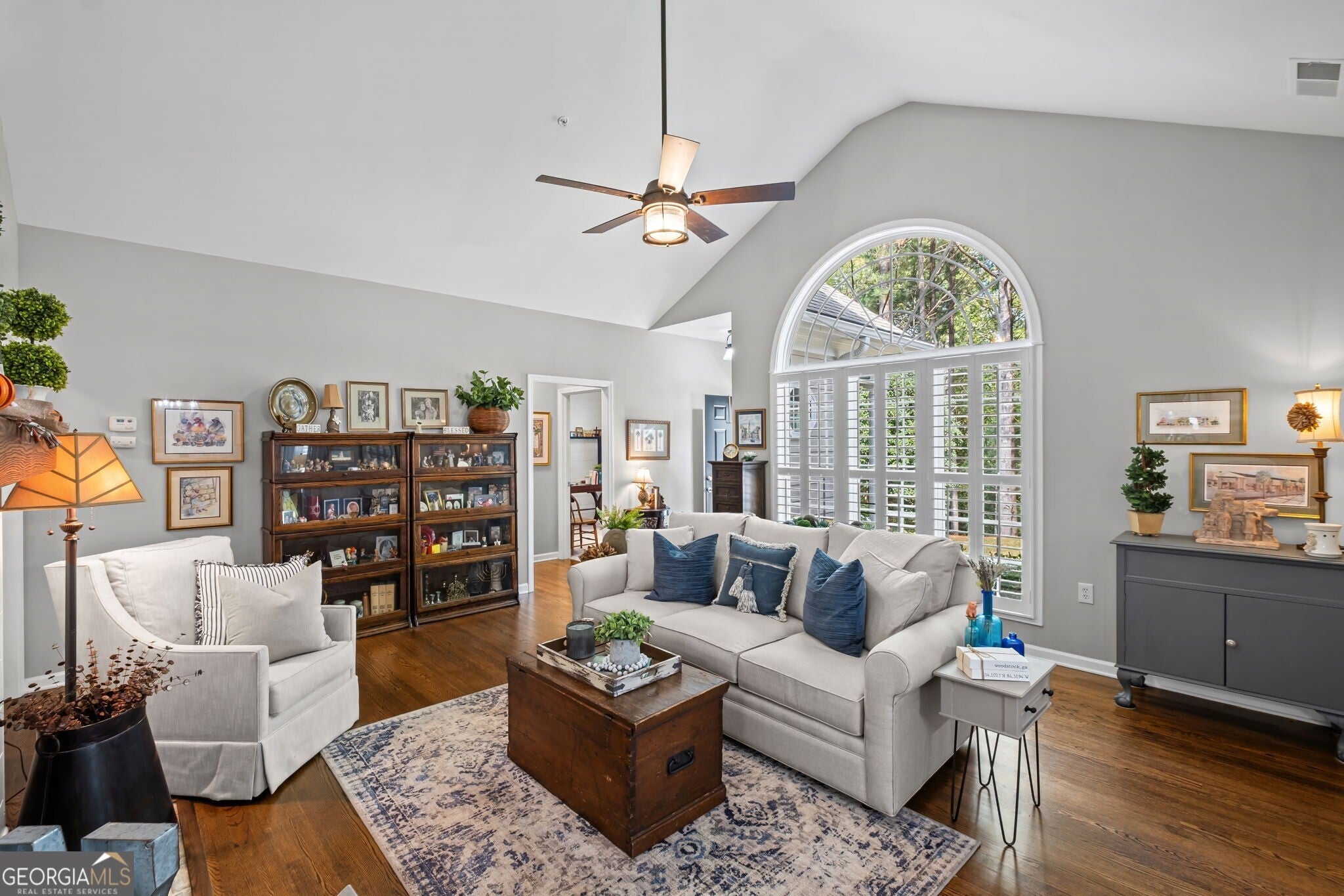 Impeccably Maintained Stepless Ranch in a Gated 55+ Community! You've finally found the one! This impeccably maintained stepless ranch home is perfectly situated on a private, quiet, and secluded end homesite in a sought-after gated 55+ Active Adult Community. Step inside to discover a completely updated interior featuring gleaming hardwood floors throughout the main living areas and plush new carpet in the bedrooms. The open-concept floor plan offers a fireside vaulted great room, ideal for both relaxing and entertaining. The spacious white kitchen is a chef's dream complete with quartz countertops, a breakfast bar, a large pantry, and a walk-in laundry room. Enjoy your morning coffee or quiet afternoons in the sunroom just off the dining area.The owner's suite is a true retreat, featuring an oversized walk-in closet, a huge walk-in shower, double vanities with quartz countertops, and a linen closet. The secondary bathroom also showcases quartz countertops and a large soaking tub, perfect for unwinding after a long day. Throughout the home, you'll find plantation shutters (with the exception of the owner's suite and one guest bedroom, which feature wood blinds), upgraded light fixtures, and thoughtful design touches no expense spared to create this gorgeous, move-in-ready home. Additional highlights include an oversized two-car garage with abundant storage, a welcoming front-yard seating area, and gutter guards for low-maintenance living. The HOA covers all exterior maintenance and landscaping, as well as water, sewer, trash pickup, and termite control, ensuring a truly maintenance-free lifestyle. Residents also enjoy access to a clubhouse for social events and gatherings. Conveniently located just minutes from downtown Woodstock, Roswell, Marietta, and Canton, you'll have endless options for shopping, dining, entertainment, parks, and recreation.