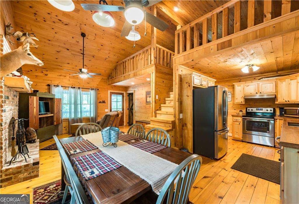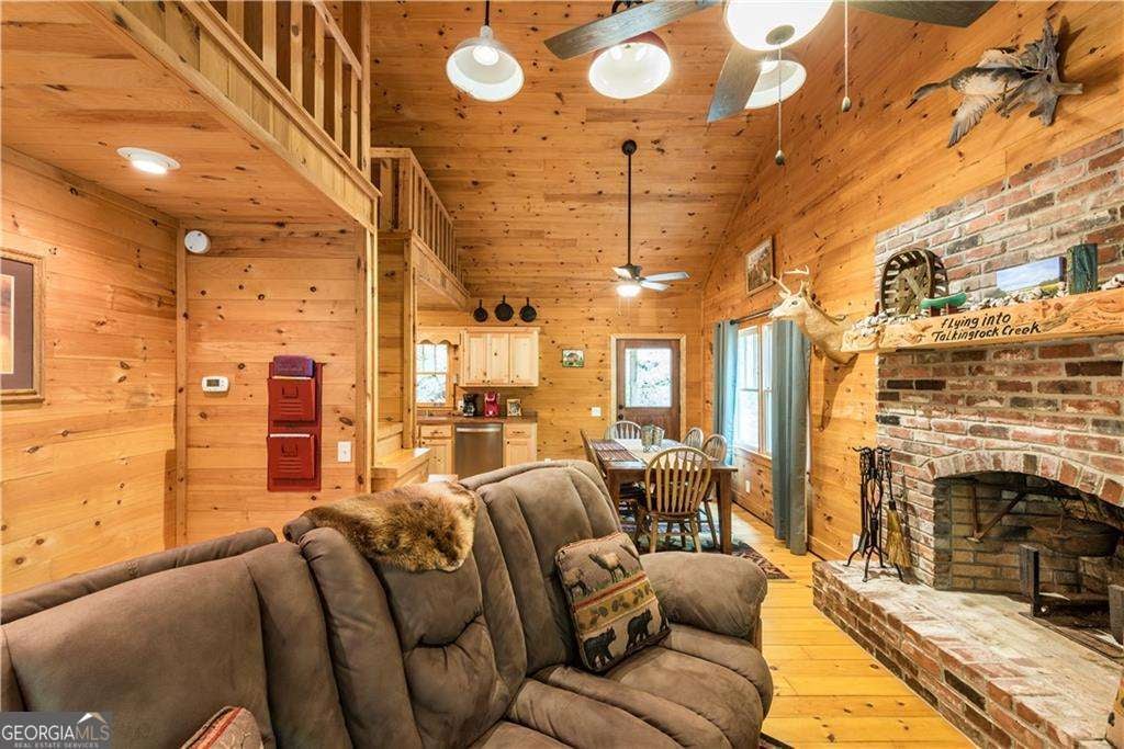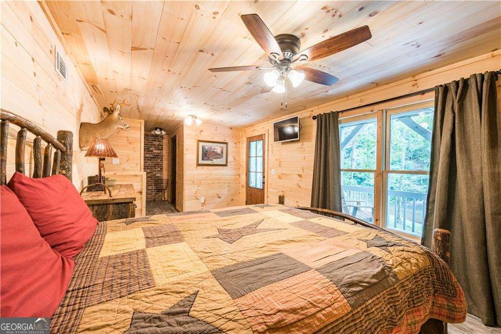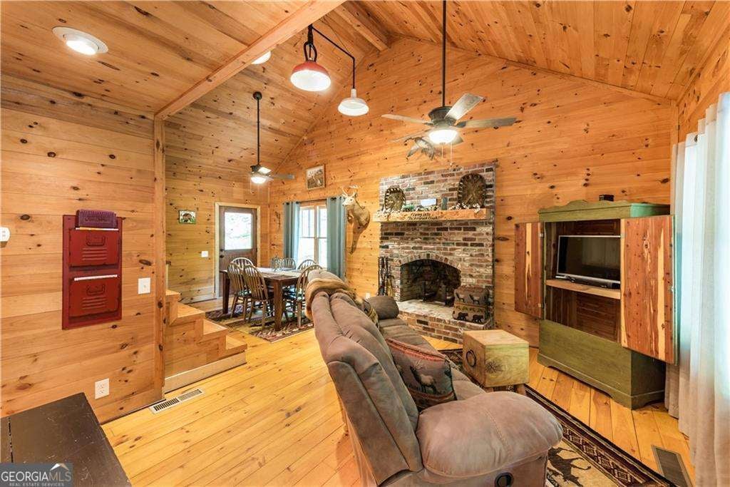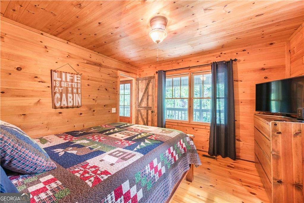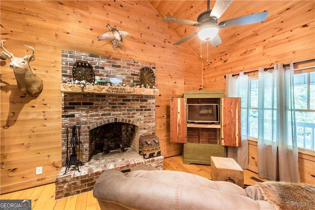 Welcome to Creekside Cabin - a hidden gem where rustic charm meets peaceful seclusion. Nestled on 1.5 wooded acres with walk-in access to Talking Rock Creek, this cozy retreat offers the perfect blend of comfort, adventure, and tranquility. Located just 1.6 miles off the paved road, the drive in is part of the experience - 4-wheel drive is recommended and required during certain months - but once you arrive, you'll find the serenity is well worth the journey. Step inside to discover a warm and inviting interior featuring 2 bedrooms, 2 full baths, and a spacious sleeping loft, comfortably accommodating family and friends. The open-concept living area welcomes you with the soothing sound of the creek, a brick fireplace, and access to a covered porch that overlooks the forest. The main level includes a fully equipped kitchen with modern appliances - including a dishwasher and microwave - a cozy living room with a 32" TV, and a full bath with a tub/shower combo. The main bedroom offers a queen bed and 40" TV, while the terrace-level suite features another queen bed, 32" TV, full bath, laundry, and access to a covered porch. Upstairs, the sleeping loft with two full beds overlooks the living and dining areas, creating the perfect space for guests or family. Enjoy your days fishing, grilling on the back patio, relaxing by the fire pit, or lounging beside the creek. With satellite TV and the option for satellite internet, you can choose to stay connected - or completely unplug and unwind. Whether you're looking for a peaceful mountain getaway, a vacation rental opportunity, or a full-time home surrounded by nature, Creekside Cabin offers it all. Sold fully furnished, this charming cabin is ready for you to move in and start making memories. Escape the noise, embrace the quiet, and make this one-of-a-kind creekside retreat your very own slice of North Georgia paradise.