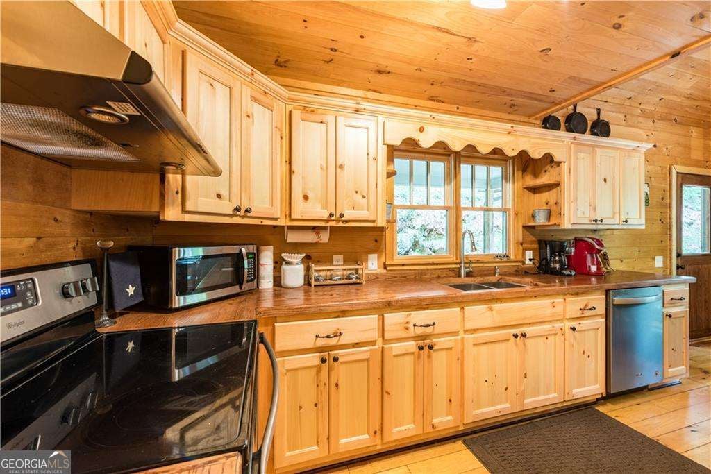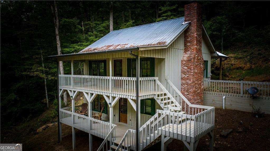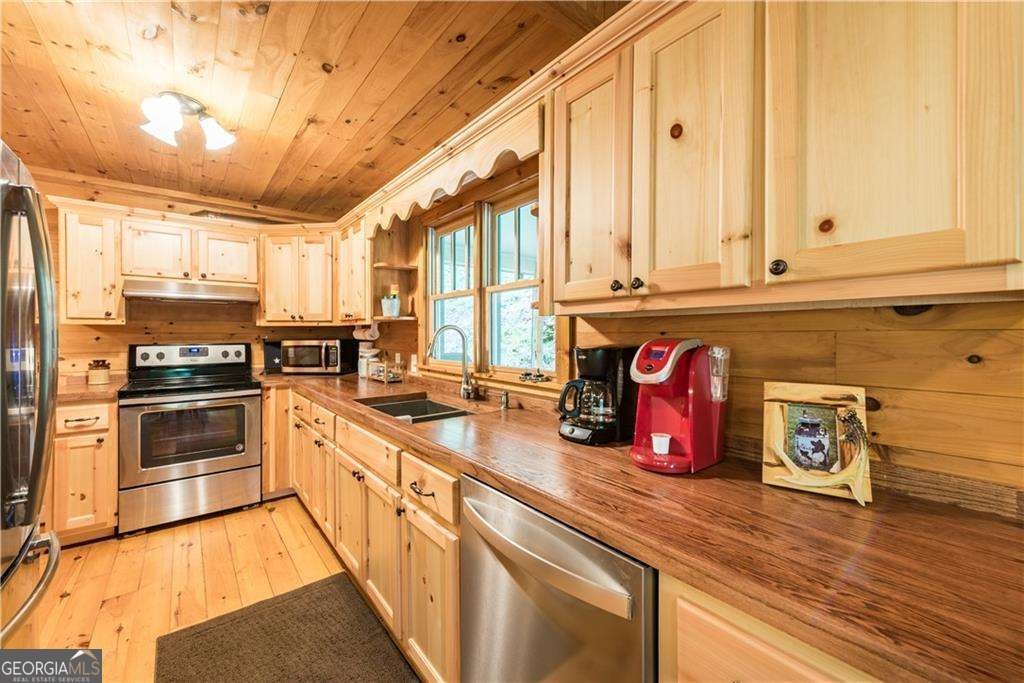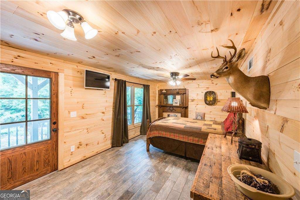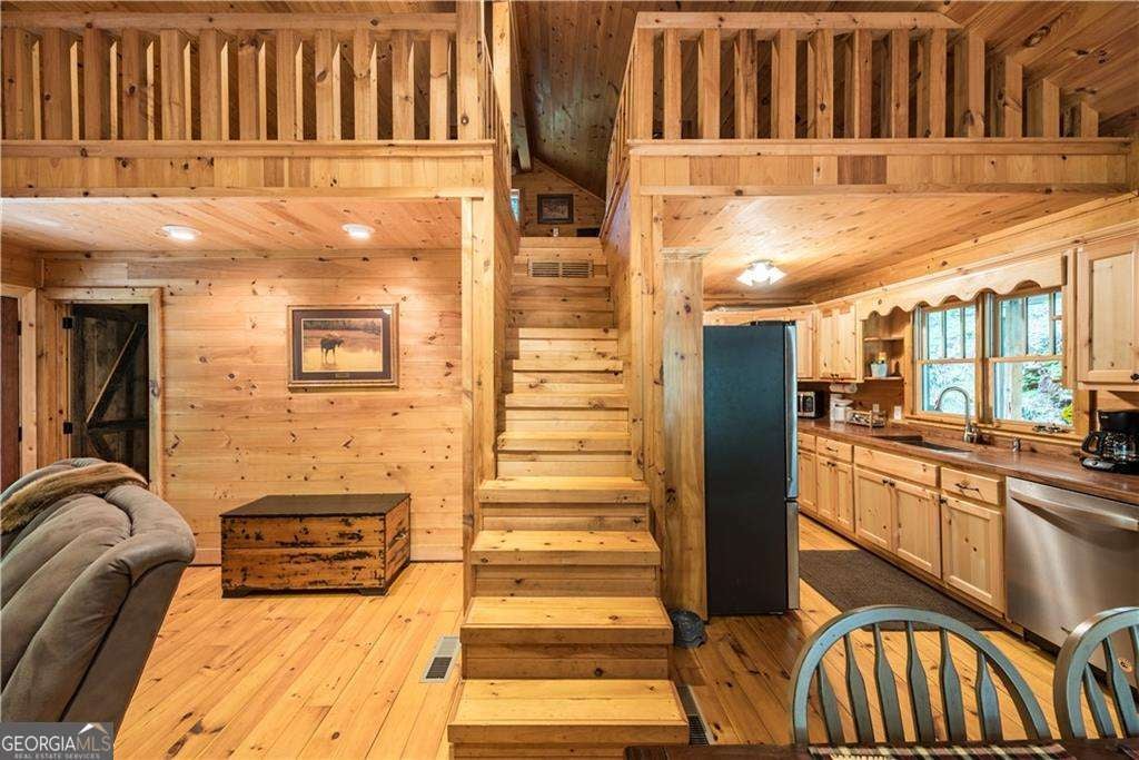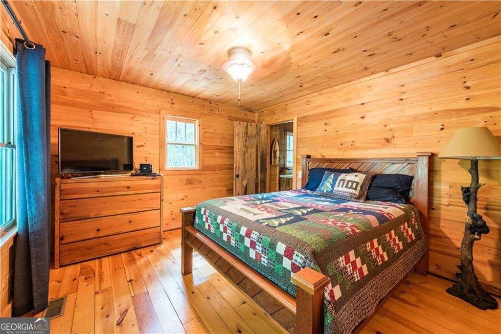 Welcome to Creekside Cabin - a hidden gem where rustic charm meets peaceful seclusion. Nestled on 1.5 wooded acres with walk-in access to Talking Rock Creek, this cozy retreat offers the perfect blend of comfort, adventure, and tranquility. Located just 1.6 miles off the paved road, the drive in is part of the experience - 4-wheel drive is recommended and required during certain months - but once you arrive, you'll find the serenity is well worth the journey. Step inside to discover a warm and inviting interior featuring 2 bedrooms, 2 full baths, and a spacious sleeping loft, comfortably accommodating family and friends. The open-concept living area welcomes you with the soothing sound of the creek, a brick fireplace, and access to a covered porch that overlooks the forest. The main level includes a fully equipped kitchen with modern appliances - including a dishwasher and microwave - a cozy living room with a 32" TV, and a full bath with a tub/shower combo. The main bedroom offers a queen bed and 40" TV, while the terrace-level suite features another queen bed, 32" TV, full bath, laundry, and access to a covered porch. Upstairs, the sleeping loft with two full beds overlooks the living and dining areas, creating the perfect space for guests or family. Enjoy your days fishing, grilling on the back patio, relaxing by the fire pit, or lounging beside the creek. With satellite TV and the option for satellite internet, you can choose to stay connected - or completely unplug and unwind. Whether you're looking for a peaceful mountain getaway, a vacation rental opportunity, or a full-time home surrounded by nature, Creekside Cabin offers it all. Sold fully furnished, this charming cabin is ready for you to move in and start making memories. Escape the noise, embrace the quiet, and make this one-of-a-kind creekside retreat your very own slice of North Georgia paradise.
