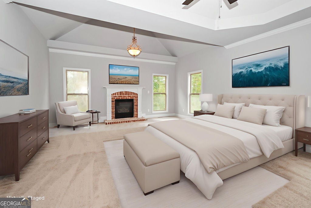 Welcome home to this newly-renovated beauty located on the lake. This 5-bedroom, 4.5-bath executive home is move-in ready! An inviting, spacious floor plan with an open kitchen that includes new stainless steel appliances, granite countertops, and a beautiful island to gather around. The master bedroom is located on the main floor and includes its own private fireplace for cozy nights in. The master bath boasts a large jacuzzi tub, separate tiled shower, private toilet, double vanity, and a huge walk-in closet. This floor plan includes 3 bedrooms on the main floor, with an additional 2 bedrooms located on the second floor. Fresh interior paint with brand new flooring throughout the entire first and second levels. With a large unfinished basement, there is plenty of space for future expansion. Incredible opportunity to own an upgraded home near Downtown Fayetteville, Trilith Studios, Hartsfield-Atlanta Airport, and more! Schedule a showing today!