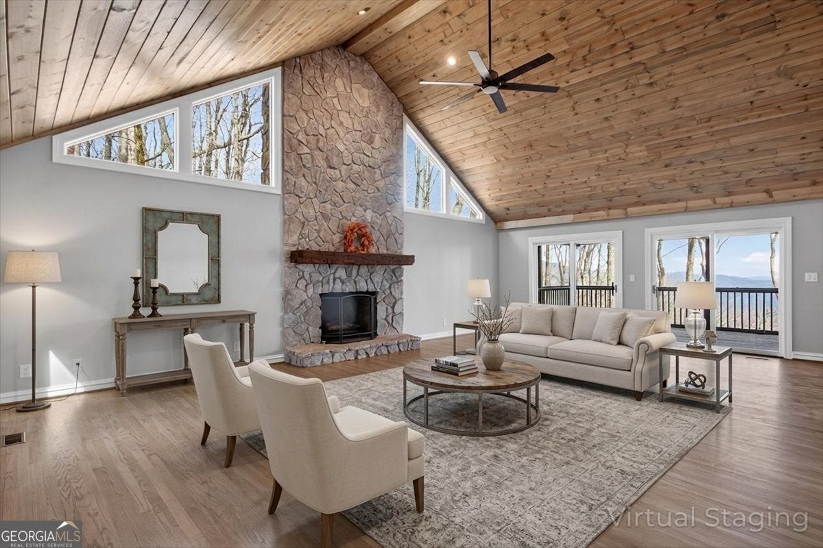 Enjoy breathtaking, long-range Blue Ridge Mountain views from this beautifully renovated multigenerational home in the luxury gated community of Big Canoe. Newly vista-pruned and professionally landscaped, this property offers exceptional privacy, curb appeal, and year-round scenery. The main level features a wide open living space including a wood-burning stone fireplace, a wall of sliding glass doors, and tongue-and-groove ceilings that flood the home with natural light while framing the mountain vistas beyond. The spacious master suite is conveniently located on the main level, offering comfort, ease, and direct access to the breathtaking views. This home has been upgraded with over $100,000 in improvements since its last purchase. Recent renovations include refinished hardwood floors throughout, new tongue-and-groove ceilings in the great room, and a fully updated kitchen with new countertops, backsplash, and modern appliances. The entire interior and exterior have been freshly painted, and the decking has been replaced with new screens for the screened-in porch. All bathrooms have been completely renovated with high-end finishes, and the lighting has been upgraded throughout the home. Additional improvements include new stone retaining walls, a repaved driveway, new carpet in the bedrooms, a newer roof, a new furnace, and a freshly repaired and cleaned septic system. Designed for multigenerational living, the home offers two full living spaces, providing flexibility for extended family, guests, or a private retreat. Every detail has been thoughtfully updated to blend luxury, comfort, and functionality, creating a truly move-in-ready mountain home. Nestled in Big Canoe's premier gated community, you'll enjoy access to world-class amenities including golf, lakes, hiking trails, fitness centers, dining, and more - all within a short drive from Atlanta. Experience the perfect balance of mountain serenity and modern luxury in this completely renovated Big Canoe retreat. ***Seller financing available with substantial down payment. Property also suitable for DSCR (this is good for rentals) or conventional financing***