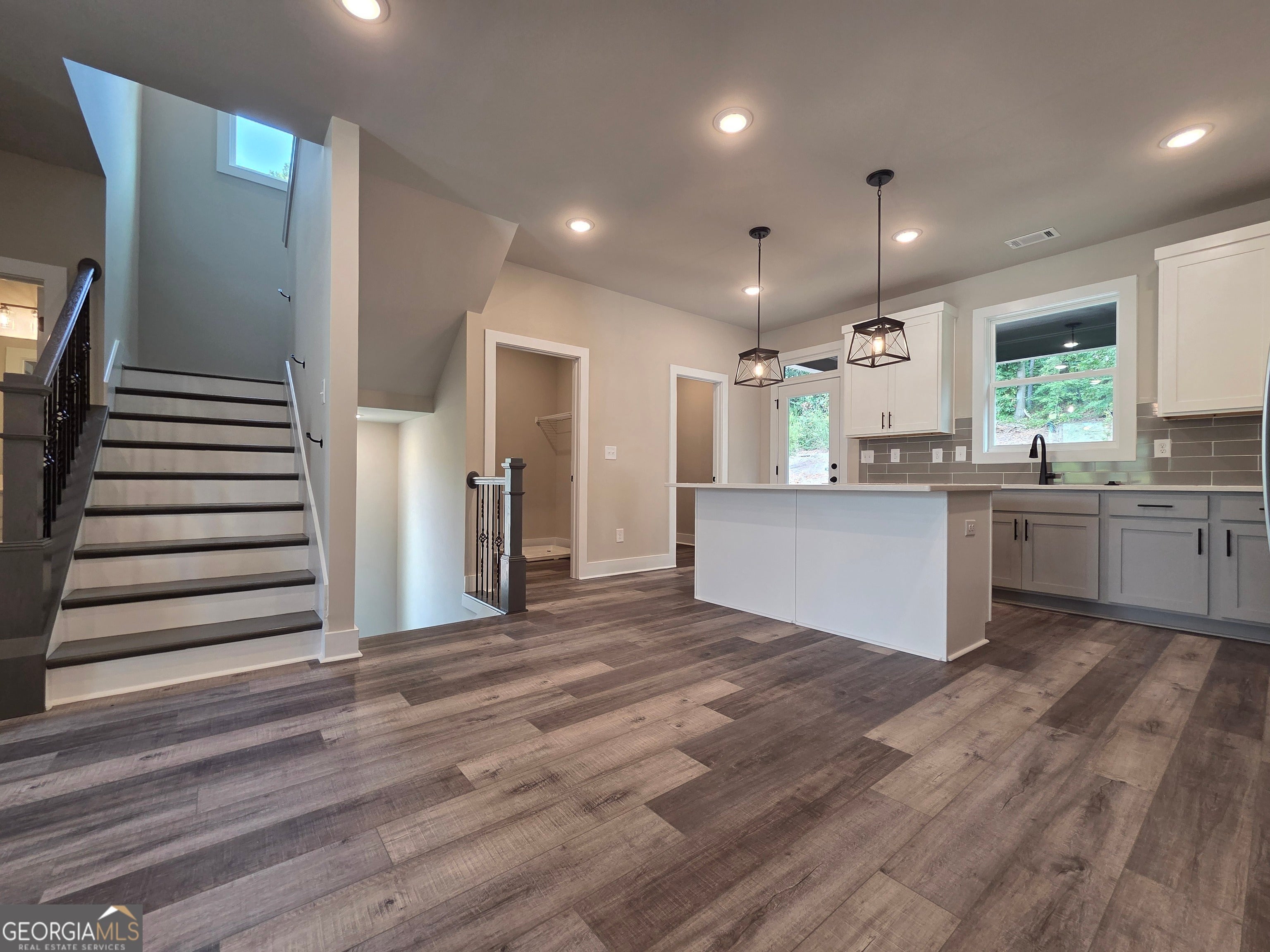Richardson Housing Group - the Kinsley END UNIT floor plan, a 5-bedroom design with a private covered back deck in the gated community of Parkstone Row in Tucker, GA. This exclusive 33-home neighborhood is ideally located just 12 miles northeast of Atlanta and offers quick access to I-85, I-285, and Highway 78, placing shopping, dining, parks, and local events all within convenient reach. Parkstone Row is also located in the highly regarded Parkview High School District, making it a top choice for buyers seeking quality schools and convenience. The homes in Parkstone Row feature a premium list of modern finishes that outshine the competition. Brick exteriors with cedar accents, 3/4 view front doors, and 30-year architectural-style shingle roofs create curb appeal and long-lasting value. Inside, you'll find designer kitchens with quartz countertops, shaker-style cabinetry, stainless steel appliances, subway tile backsplash, and pendant lighting over the island. High-end details continue throughout with 1x6 baseboard trim, 1x4 door casings, 1x4 window surrounds, 5-panel interior doors, flat-panel wainscoting in the foyer and dining area, black hardware and fixtures, oak site-finished stained hardwood stairs, and fully tiled master showers on the floor and walls with frameless glass doors. LVP flooring extends through the main level and continues upstairs in the common areas, providing both durability and style where it's often overlooked. All 3 levels feature 9-foot ceilings, and the main level is enhanced by 6-foot-tall windows that fill the space with natural light. Each home also includes an electric vehicle charging outlet. HOA dues cover lawn maintenance, termite bond, and select exterior building maintenance, offering a low-maintenance lifestyle in a secure, gated setting. The home is 100% completed, and the photos shown are of the actual home currently listed for sale. Ask about up to $10,000 in closing cost incentives when using an approved lender, plus options for 100% financing or a 1% below-market interest rate.