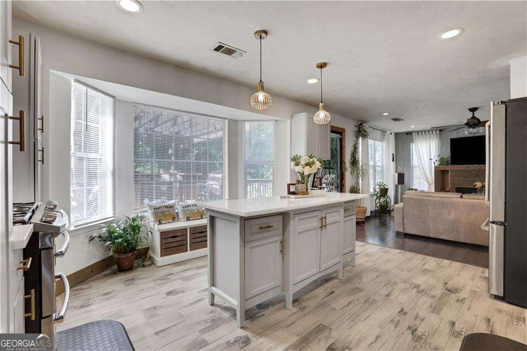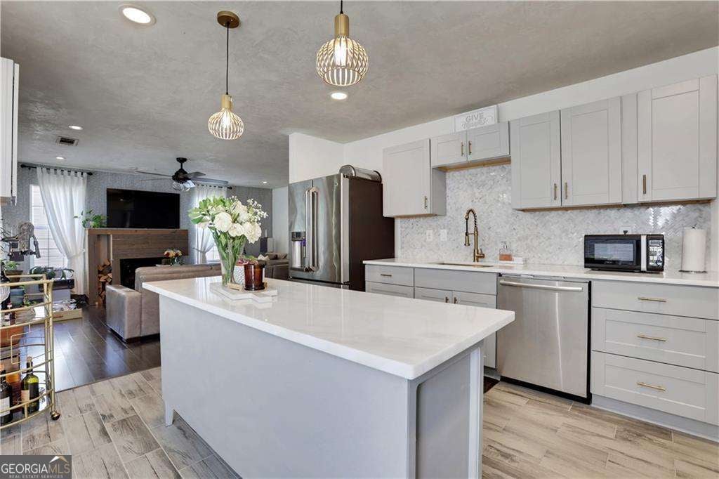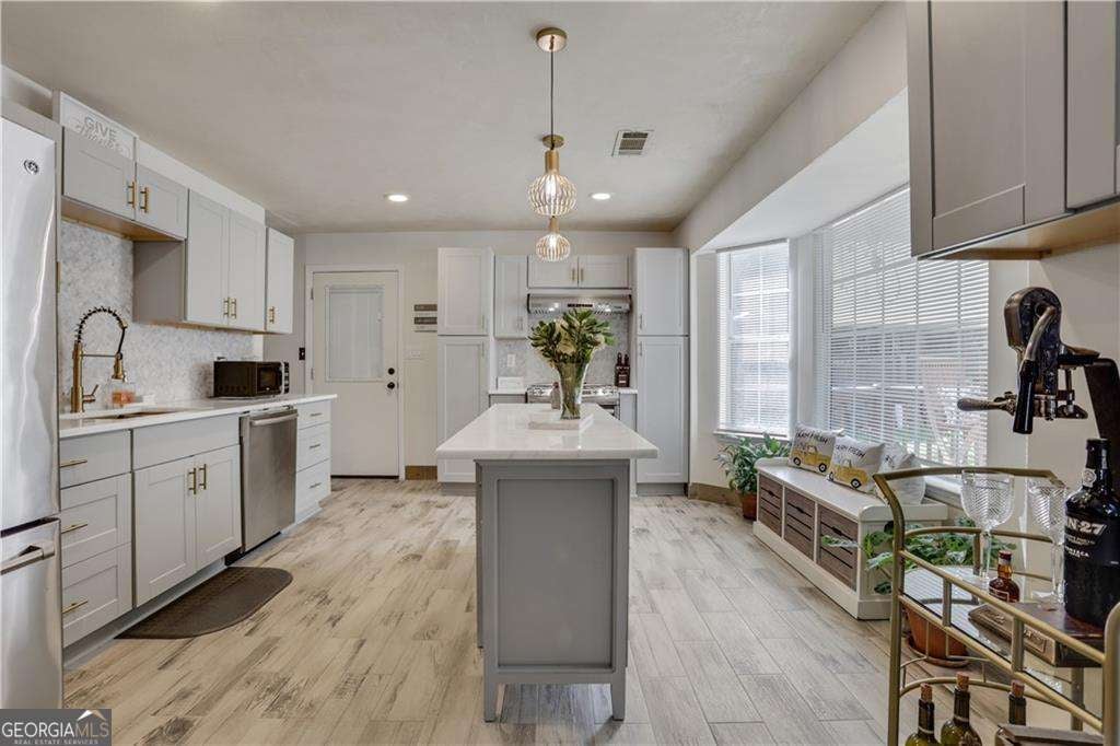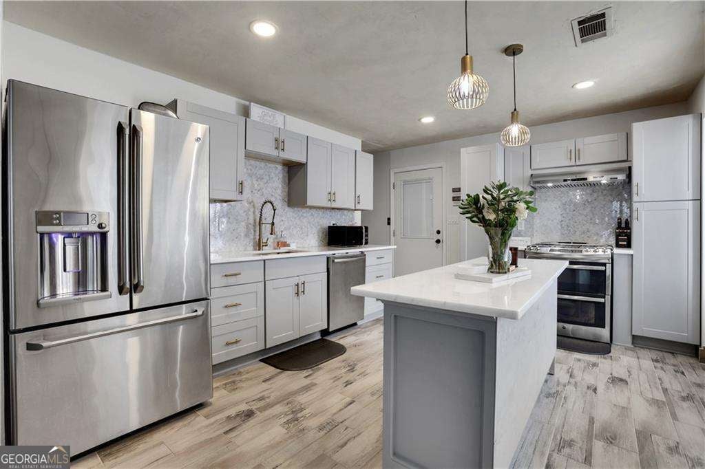 Turnkey Income Opportunity! Discover the perfect blend of living and earning with this outstanding property, already flourishing as a successful short-term rental business. Welcome to your 4-bedroom, 2.5-bath oasis in the heart of incorporated Mableton! This home is a true entertainer's dream, featuring a spacious deck and ample backyard space. Upon entering, you'll be welcomed by stunning heather grey luxury vinyl flooring that seamlessly flows throughout the entire main floor, complemented by light-colored walls and large windows flanking the entryway to create an open and airy atmosphere. Step into the newly renovated kitchen, a perfect gathering spot for the entire family. It features brand new grey shaker cabinets accented with luxurious gold pull knobs and a stylish gold gooseneck faucet, creating a chic contemporary atmosphere. The kitchen is enhanced by fresh white quartz countertops with a marblesque appearance, complemented by elegant gold and glass designer lighting-ideal for any culinary enthusiast. Equipped with a GE Profile Cafe Series refrigerator and stove, this rear-facing kitchen overlooks a spacious deck and flows effortlessly into the living room. Here, a cozy wood-burning fireplace sets a warm and inviting tone. The formal dining room at the front of the home comfortably seats up to six, making it perfect for hosting dinner parties. After meals, relax in the family room directly across, which offers an excellent space for further entertainment with friends and family. All four bedrooms are situated on the upper level, including an owner's suite with an ensuite bathroom featuring Italian heated marble flooring, a beautiful clawfoot tub and a separate custom shower. Additionally, there are three generously sized bedrooms, one of which shares ensuite access to the owner's bath, making it an ideal choice for a child's room or home office. Enjoy this well-designed, versatile space perfect for living and entertaining also featuring a partial gym in the basement. Additionally, the basement offers a perfect in-law suite for relatives or friends, complete with a renovated kitchenette, living area, and sleeping quarters. Unlock an exceptional opportunity for added income with this unit, already rented to a delighted short-term tenant! An unlimited amount of fun for the whole family with Sweetwater National Park, Discovery Park at Riverline, Six Flags Over Georgia Theme Park and Riverside EpiCenter all just minutes away. Also, near to I 20 for quick access across the city. Welcome Home.
