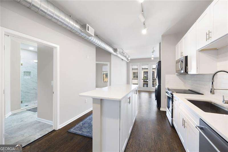 Renovated 1BR, 1BA Loft unit on the top floor overlooking courtyard in sought after Lofts @5300 in Chamblee across from the Chamblee Marta Station! Great Island Kitchen with white cabinetry, tile backsplash, stainless steel appliances & Quartz countertops! Gorgeous bath with tile floor, large tile shower, tub with tile surround, vanity with stone counter-top, & spacious walk-in closet. Hardwood floors in the Kitchen & living room. Balcony off living room overlooks the courtyard. New carpet in the bedroom. This unit comes with one covered parking space and a storage unit! Enjoy the convenience of urban living with quick access to public transportation and an abundance of shopping and dining/bar options!! This complex is FHA & VA approved. The rental cap has been met.