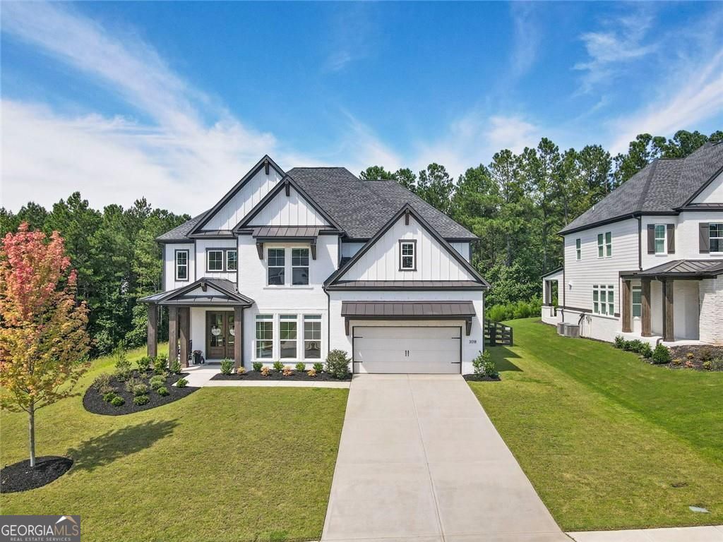 Situated just beyond the Milton line, this beautifully upgraded home combines timeless style with everyday functionality. A dramatic two-story great room anchors the open floor plan, which also includes a private office with custom double doors, formal dining room, and a gourmet kitchen with custom cabinetry, oversized island, and premium appliances. The walk-out backyard is fully fenced and professionally landscaped. Upstairs, the primary suite offers a spacious retreat with custom closet and a fully renovated bath boasting dual vanities, soaking tub, and upgraded shower. Additional highlights include custom built-ins, a thoughtfully designed mudroom, upgraded hardwood floors throughout, and a beautifully updated first-floor full bath. Blending pastoral charm with modern convenience, this residence offers a rare opportunity to enjoy refined living just minutes from Atlanta National Country Club, Milton, Alpharetta, and Woodstock's best amenities.