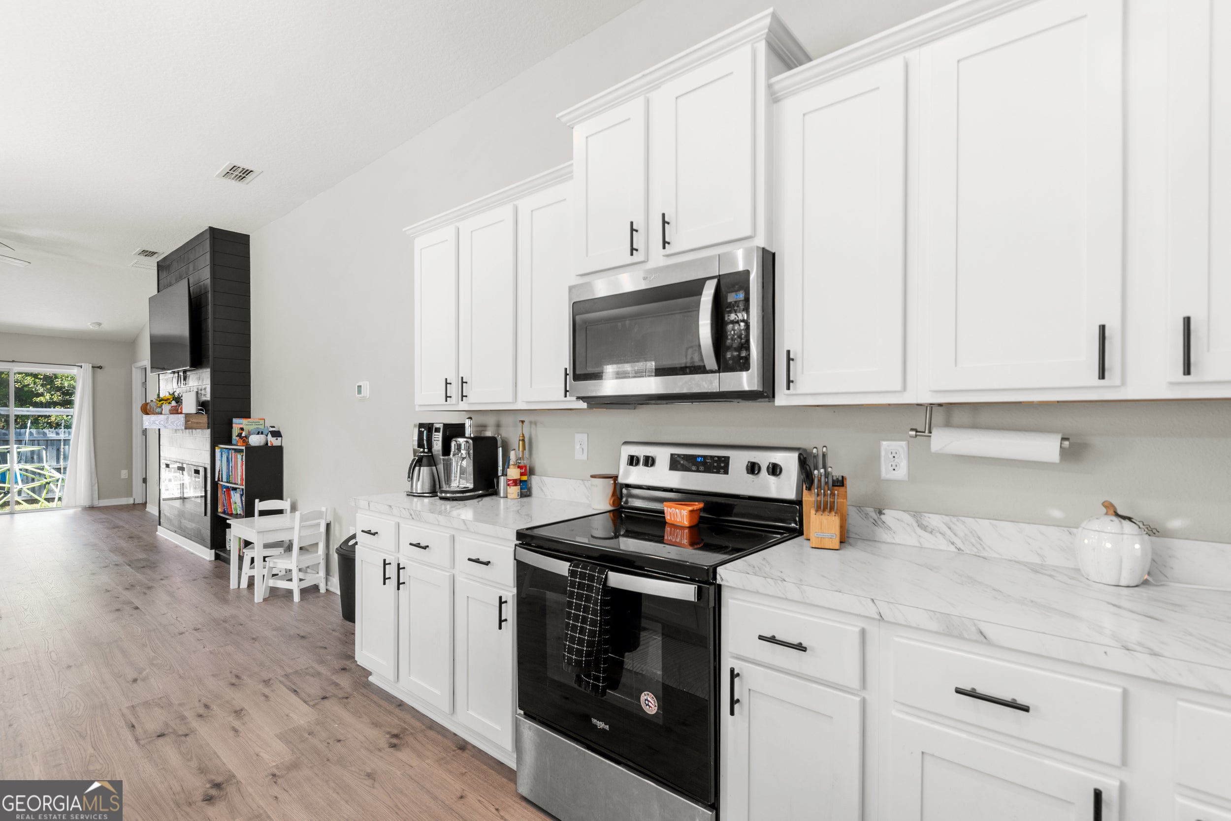 This beautiful 3-bedroom, 2-bath home features a desirable split-bedroom floor plan with luxury vinyl plank flooring throughout the living space. The open-concept kitchen offers a spacious island, stainless steel appliances, and a generous pantry with built-in shelving. Enjoy cozy evenings by the stunning modern shiplap electric fireplace in the living area. The primary suite includes a double vanity, ample storage and walk in closet. Outside, you'll find a fully fenced backyard-perfect for relaxing or entertaining. Conveniently located just 1.3 Miles from Kings Bay Naval Base and 29.1 miles to Jacksonville International Airport! Call today to schedule your showing!