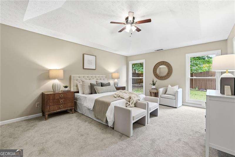 Updated Single-Level Living in Prime Johns Creek Location! Discover this meticulously maintained and updated single-level ranch in a prime Johns Creek location! This home features a desirable East-facing orientation, offering a warm, welcoming entrance that captures the gentle morning sun. Inside, the open floor plan features a spacious family room with a cozy gas fireplace, which flows through a premium Anderson sliding door to a private, fully fenced backyard. This home offers tremendous storage and a large owner's suite, a true retreat with a modern frameless glass shower and separate soaking tub. Move in with total peace of mind, as this home is truly turn-key: professionally deep cleaned (Oct 2025) and featuring brand-new carpet (Oct 2025). The list of major updates is exceptional, including a FULL ROOF REPLACEMENT (2023), ALL NEW HARDY BOARD SIDING (2021), a RELIABLE NEW FURNACE (2021), and a NEW DISHWASHER (2025). Additional upgrades include a new garage door opener (2022), refrigerator (2021), and double-pane insulated windows. This location offers unparalleled convenience, minutes from GA-400, 141, premier shopping, dining, Emory Johns Creek Hospital, and parks like the Big Creek Greenway. Zoned for the award-winning Lake Windward Elementary, Taylor Road Middle, and Chattahoochee High School district. Residents are part of the Caney Creek Recreational Association, enjoying a clubhouse, pool, and active tennis courts (Rentals not allowed). This is a rare opportunity to find a beautifully updated home where all the work has been done. Move in and be settled just in time for your seasonal gatherings!