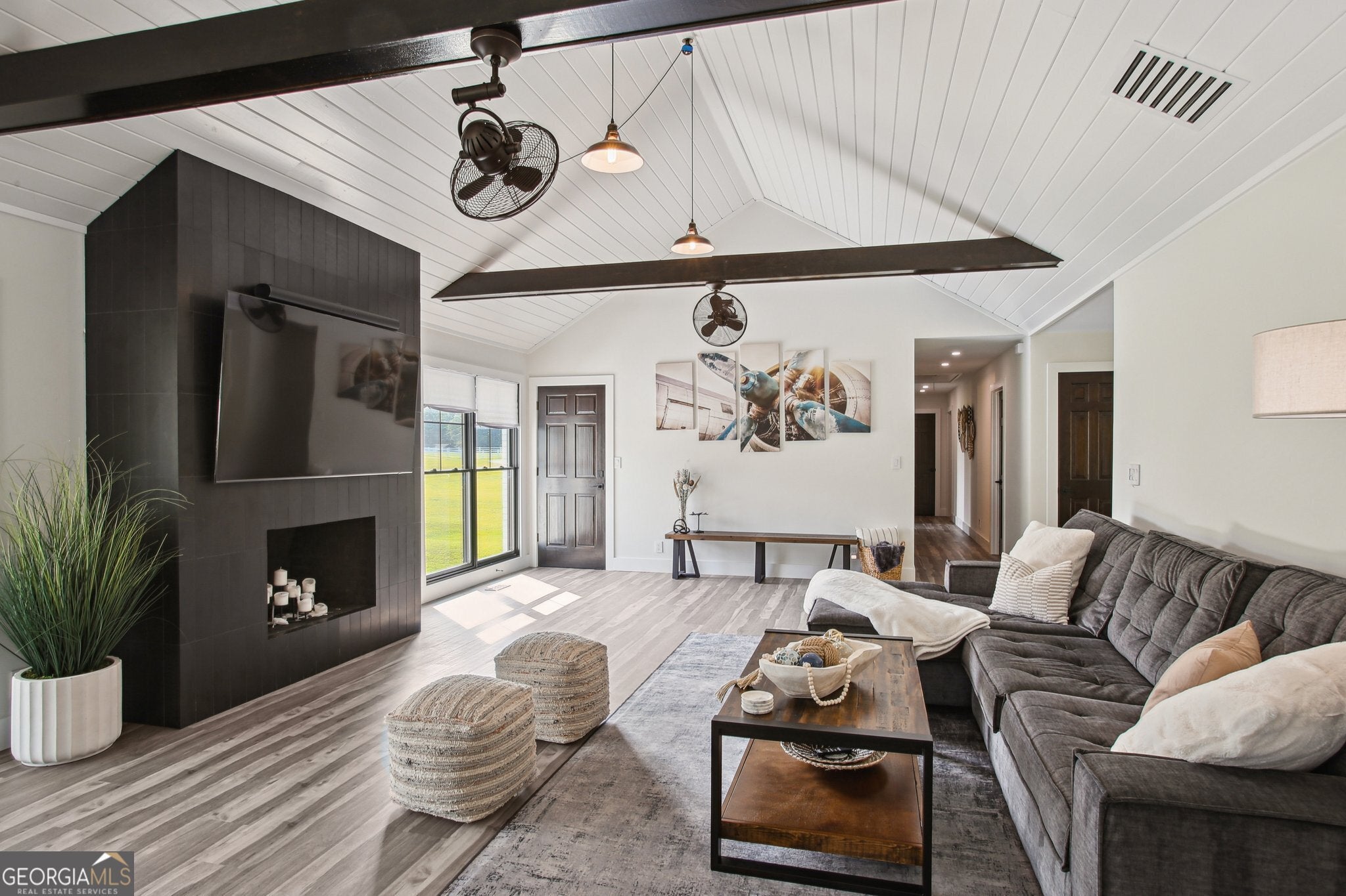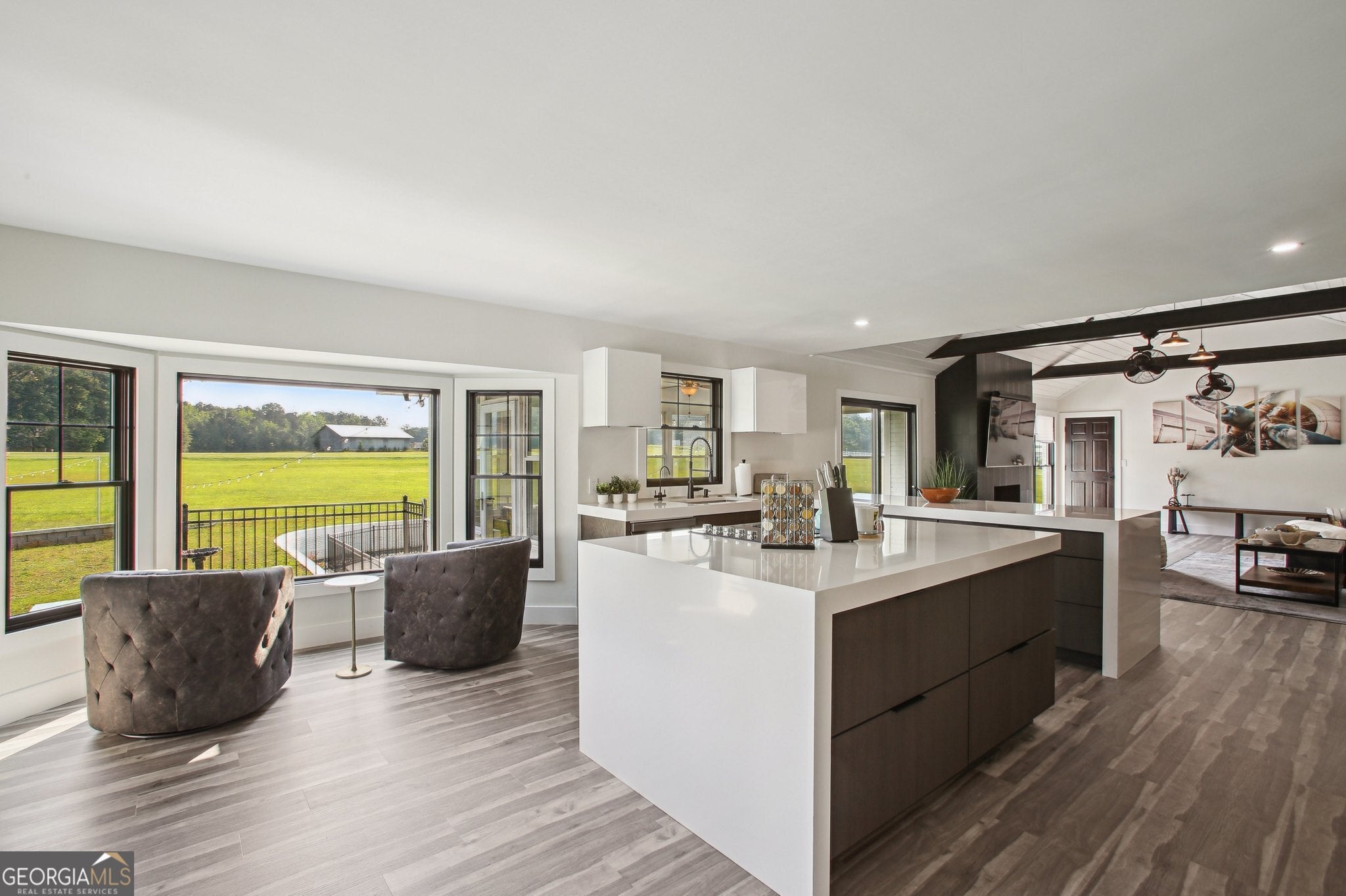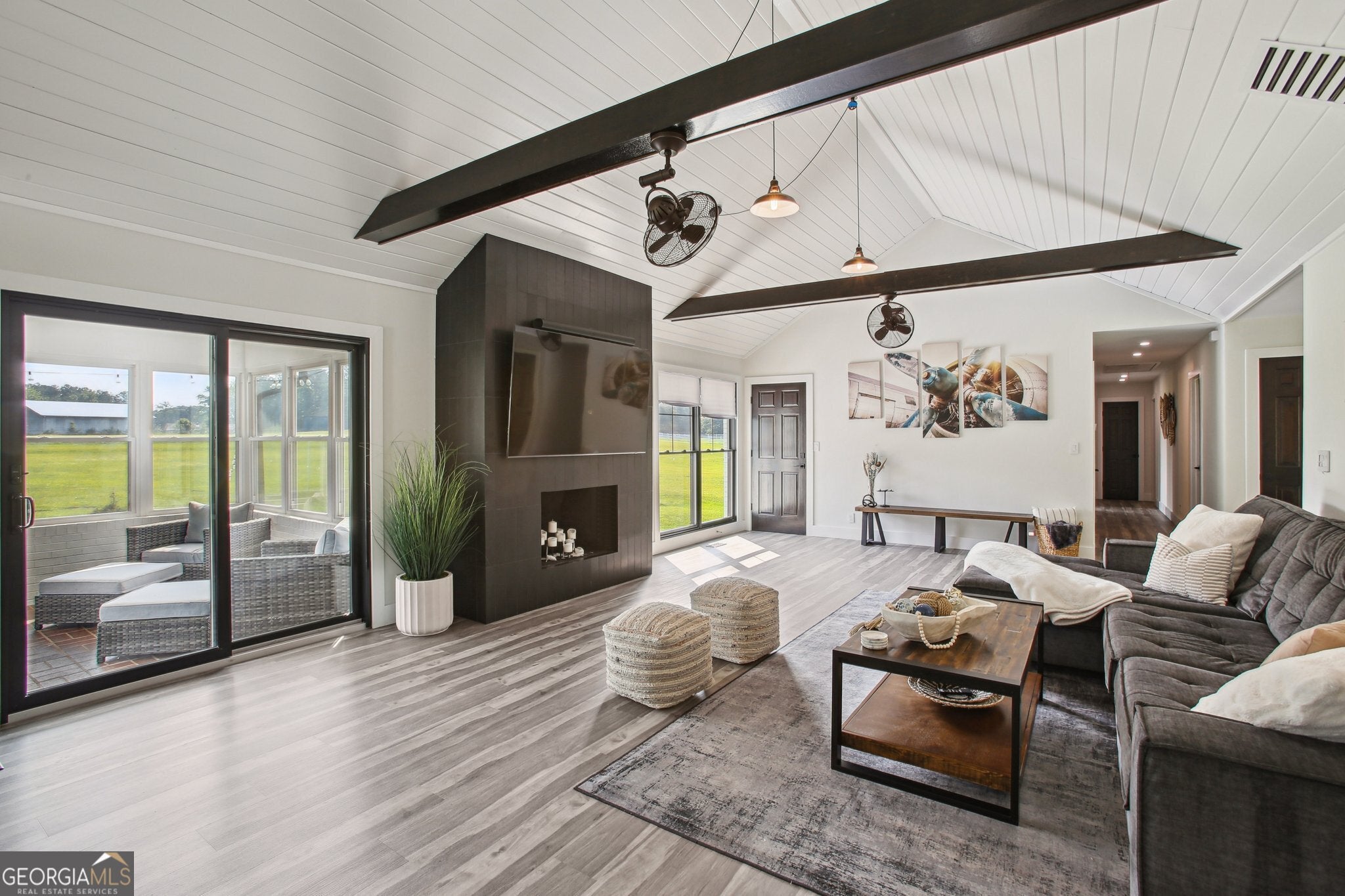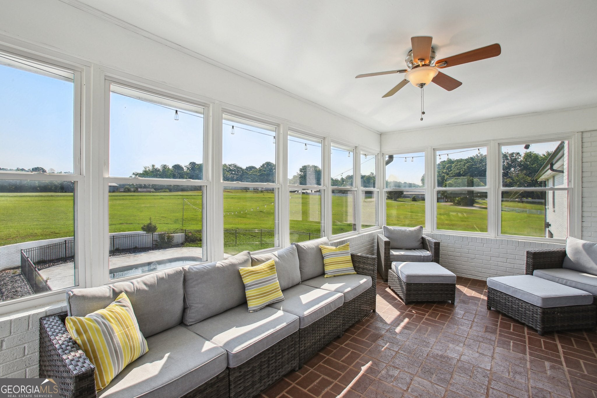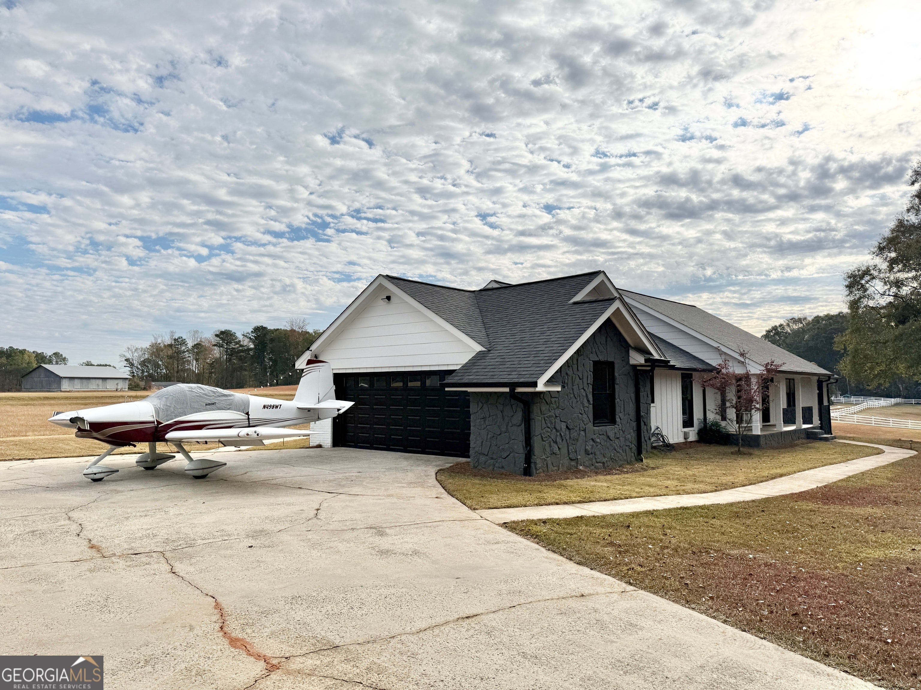 A Pilot's Dream home. Welcome to your private fly-in retreat located on 4.4 sprawling acres in the Willow Pond Aviation Community in Fayetteville, GA. Aviation enthusiasts , imagine sipping your morning coffee in the sunroom watching the takeoffs and landings on the private airstrip right in your backyard. This modern, beautifully renovated ranch home offers convenience, comfort and luxury. With 3-bedrooms, 2.5-baths, this open-concept floor plan is gorgeous. The well equipped kitchen flows seamlessly into the living and dining areas, perfect for entertaining. The spacious owner's suite includes a spa-like ensuite bath including a double vanity and heated floors, while two additional bedrooms and a guest bath provide ample space for family or visitors. Step outdoors and unwind in the sparkling salt water pool, surrounded by nature and total privacy. However, you might be lucky enough to catch a neighbor taking off on the shared, private runway. This home has ample parking with a 2-car garage and an unfinished, drive in basement for extra storage. Park your own plane? No problem! You can pull right up to this home in your aircraft. There's also enough acreage to build your own 60x80 hanger. Located minutes from the Town of Trilith and Trilith Studios, QTS Data Center and US Soccer. Lots of great shopping, dining, and top Fayette County schools all near by. Hartsfield Jackson Airport is a short 20 minutes away. Furniture package additional. This home is also listed for rent for $7500 a month. Schedule through Showing Time