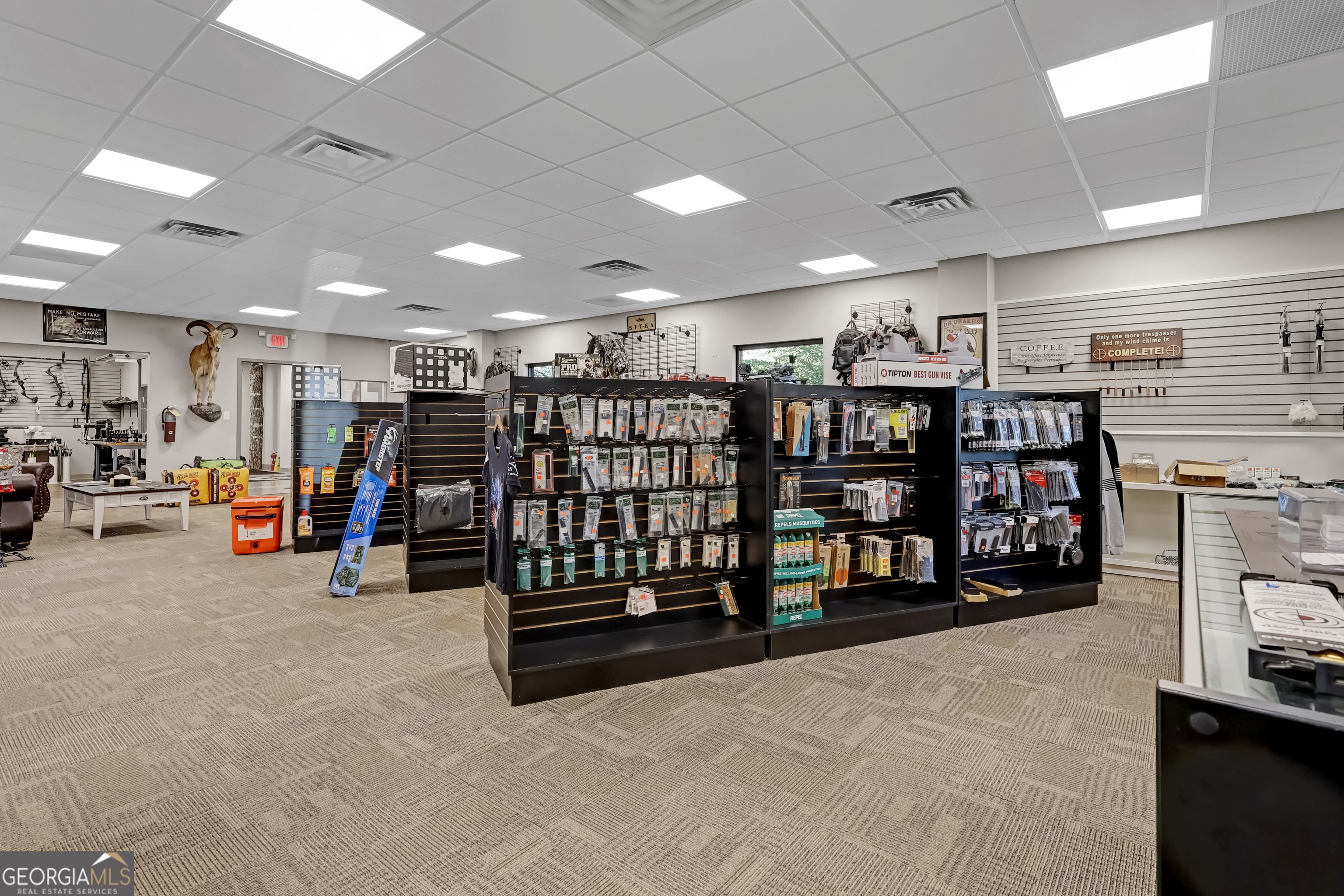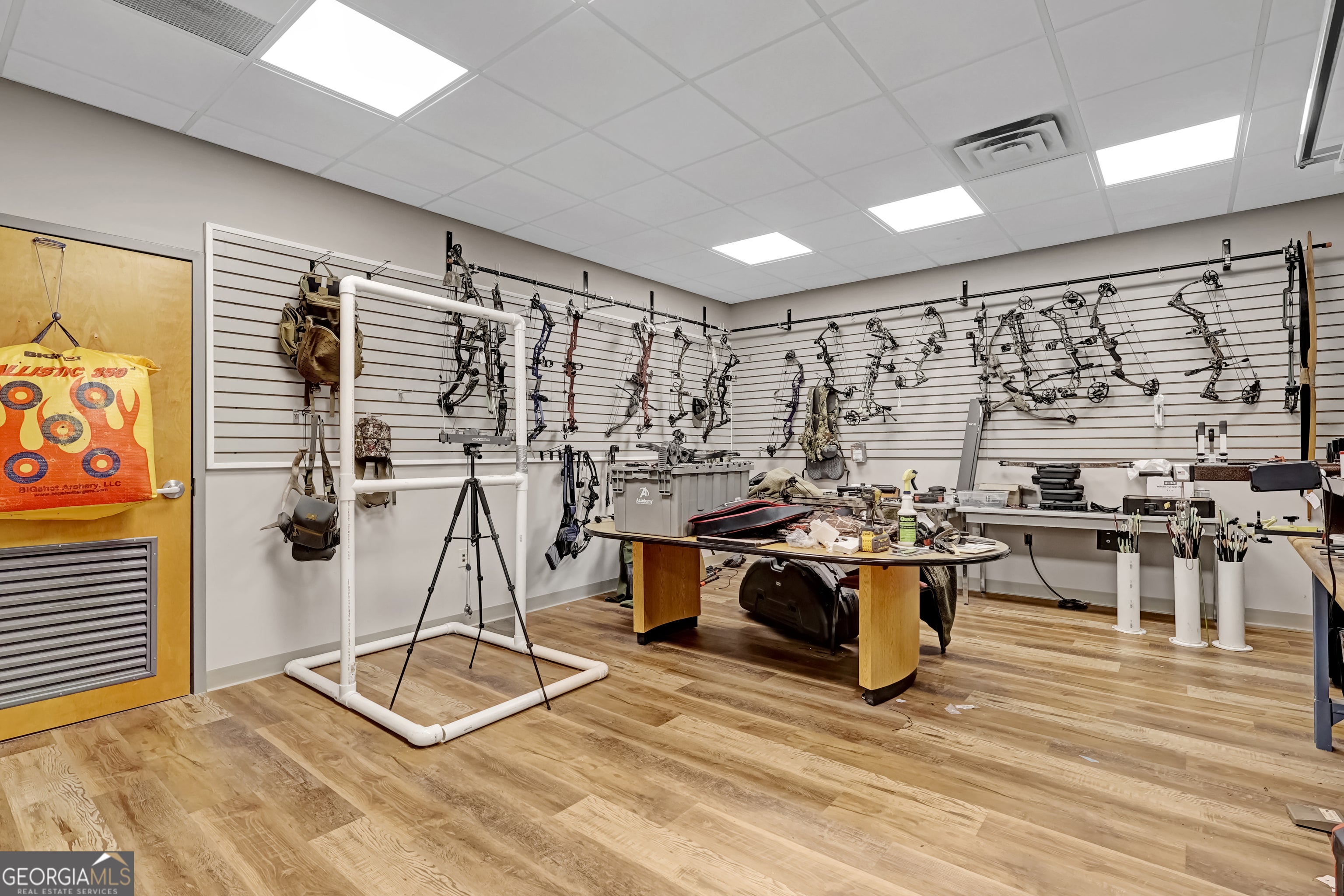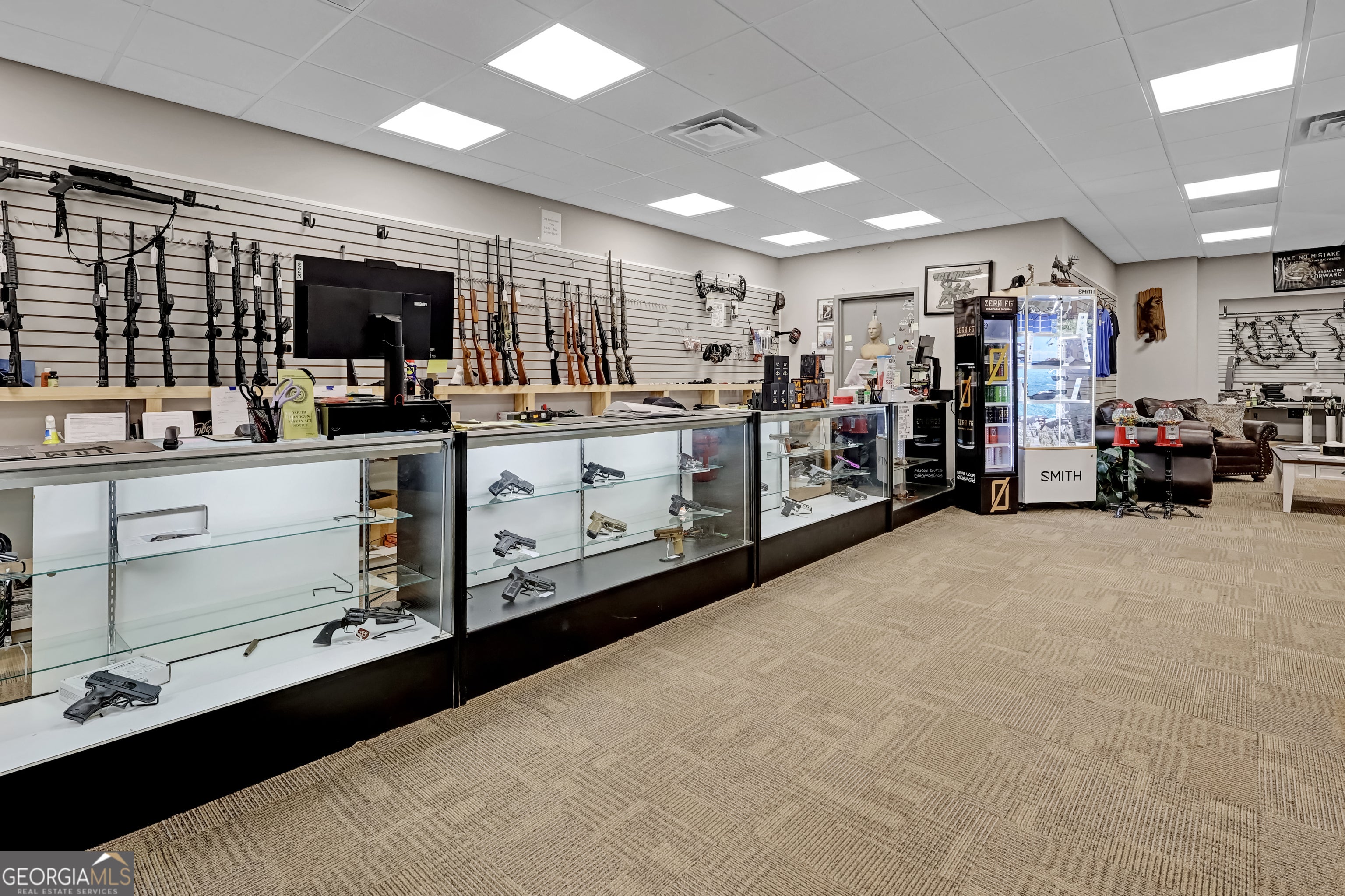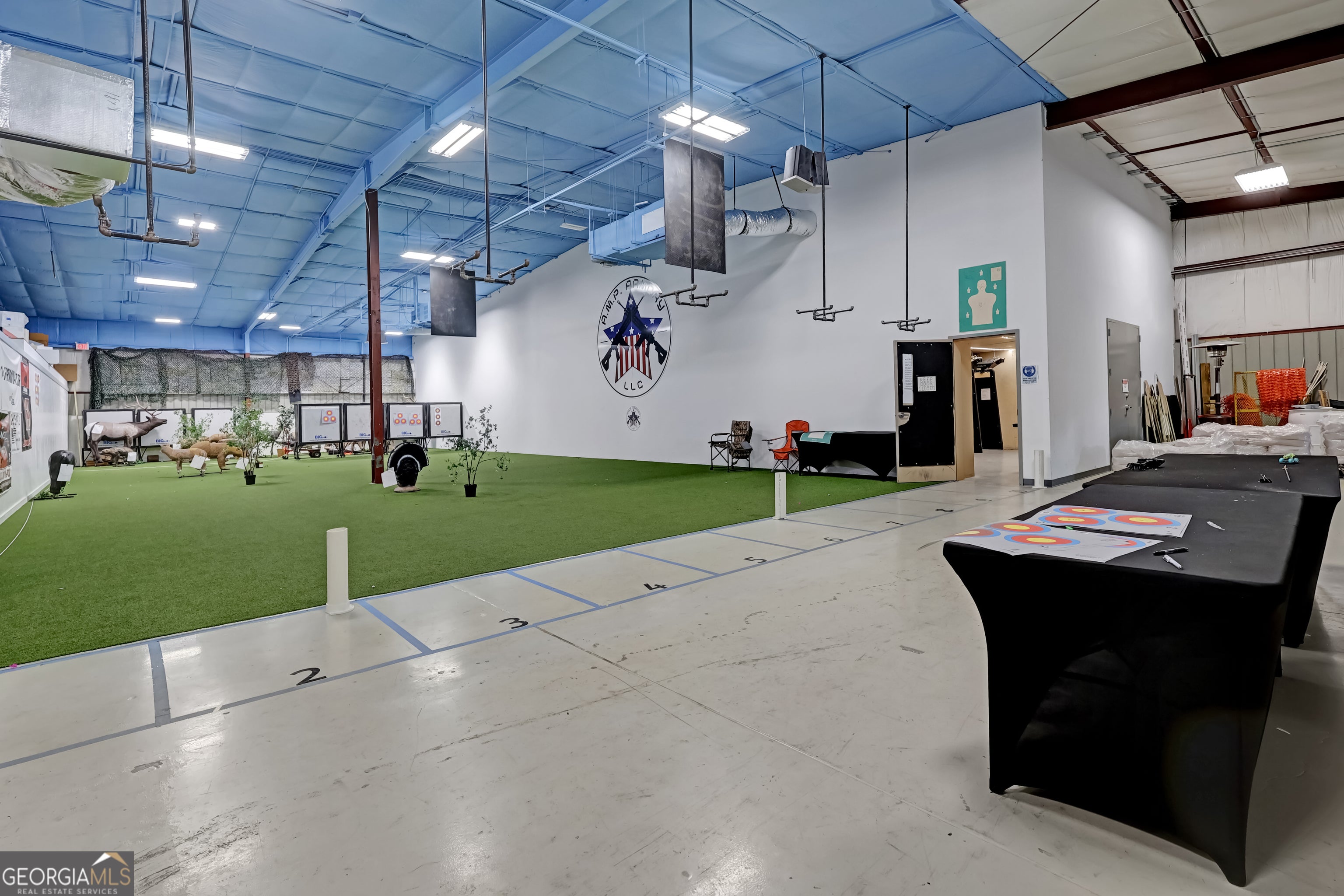 Fully equipped armory and training facility designed for retail, instructional, and administrative operations. The property includes a spacious showroom for displaying gear and equipment, indoor shooting range with multiple lanes, archery range, and reception area with customer check-in. Additional spaces include a private office, secure storage areas, and a rear delivery dock for inventory management. This facility is ideal for firearm dealers, tactical equipment retailers, training academies, or other security and defense-related businesses.
