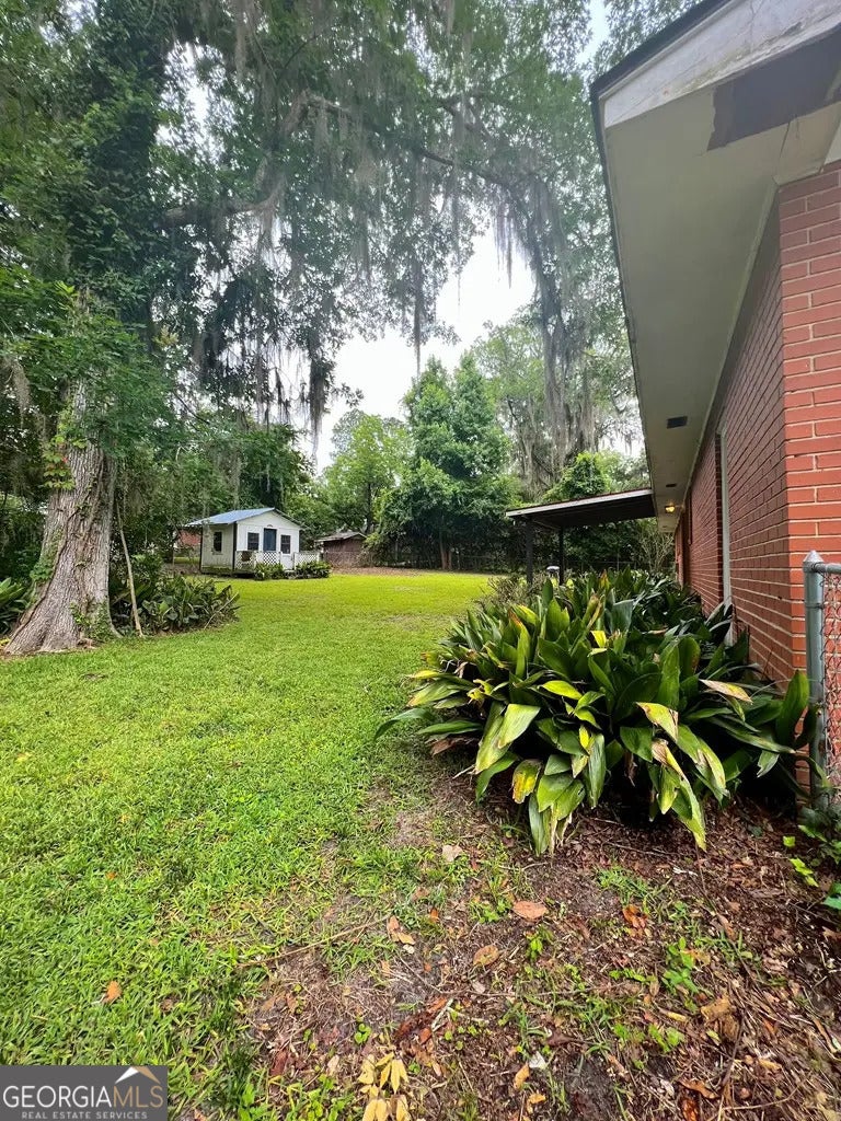 Welcome to this solid and spacious 3 bedroom, 2 bathroom brick ranch located in a quiet, established Valdosta neighborhood. With a functional single-level layout, tons of natural light, and a massive backyard, this home is the perfect opportunity to update, customize, and instantly build equity. The large living areas make everyday living comfortable, including a bright front family room and a roomy eat-in kitchen with classic wood cabinetry, tile flooring, and plenty of workspace. French doors lead from the dining area out to the backyard, giving you excellent indoor/outdoor flow for gatherings. Bedrooms are generously sized with good closet space, and both bathrooms offer timeless mid-century tile and vintage touches that can easily be refreshed or restored for a trendy modern-retro look. The huge fenced backyard is a standout feature ? ideal for pets, play spaces, gardening, future deck or pool installation, or simply enjoying the privacy with mature trees. A covered carport and exterior storage area add convenience and functionality. Whether you're a homeowner looking to personalize a great house or an investor searching for a strong rental or flip, this property checks all the boxes.