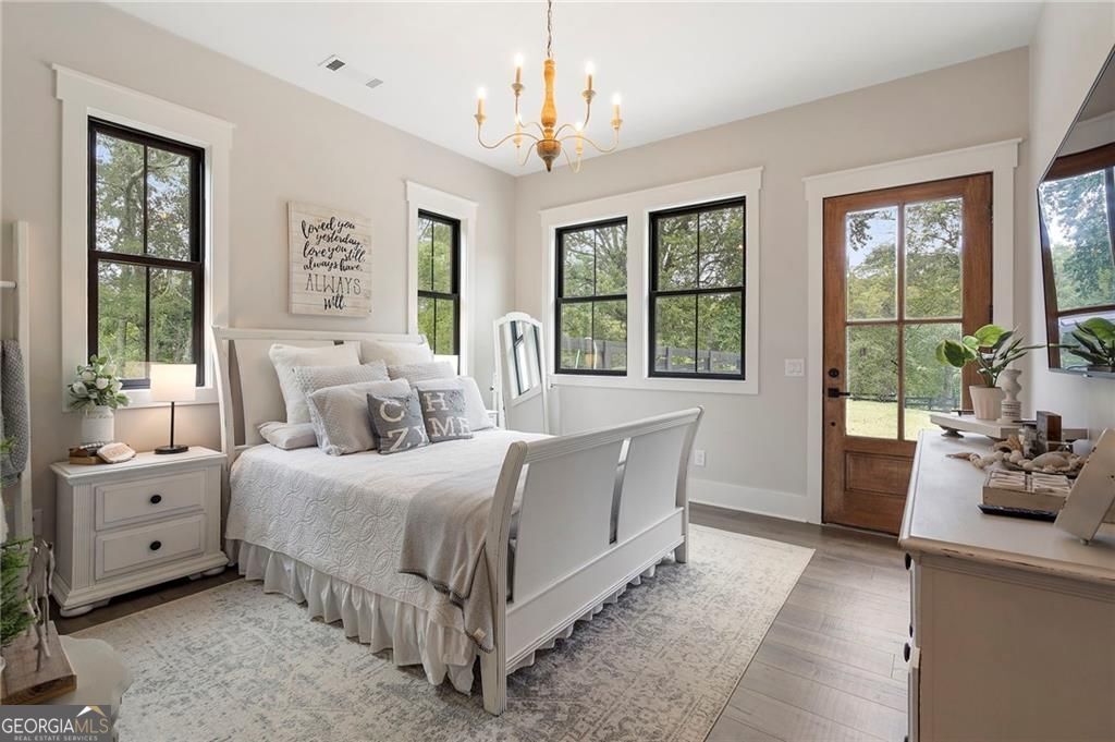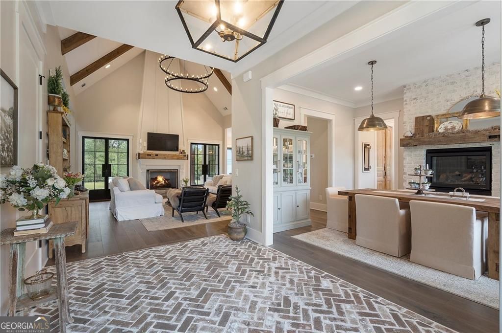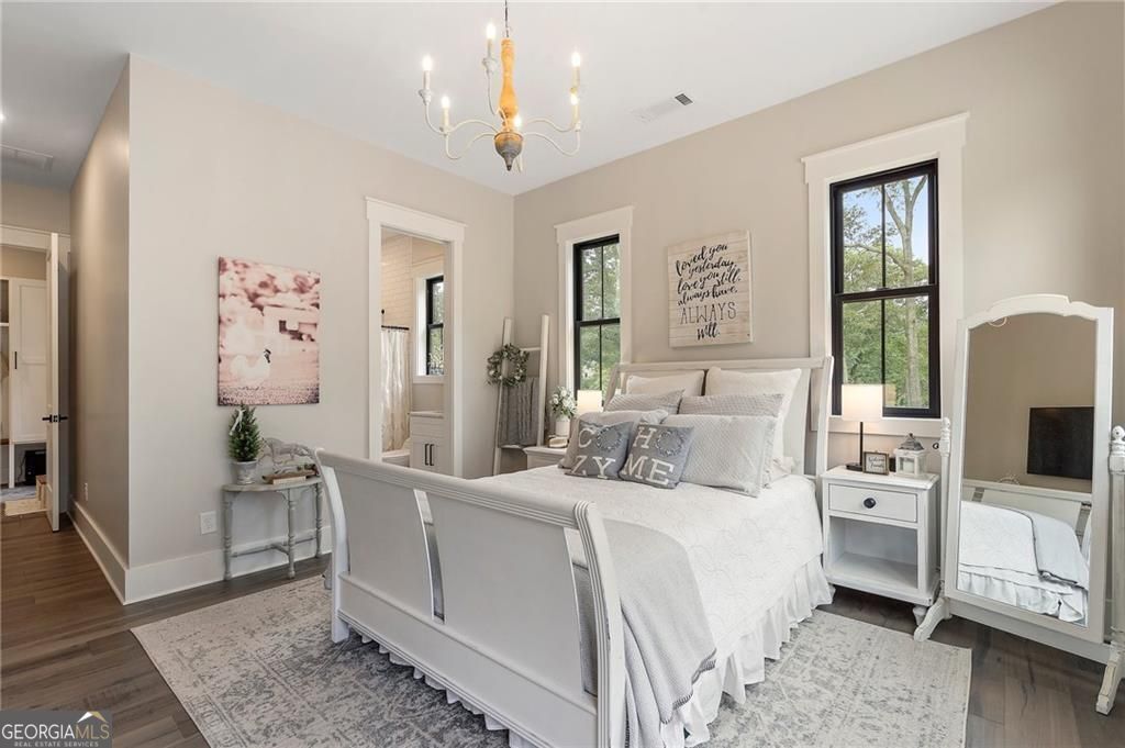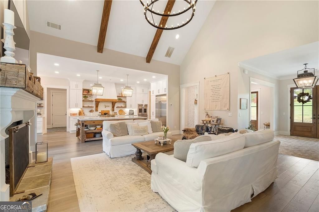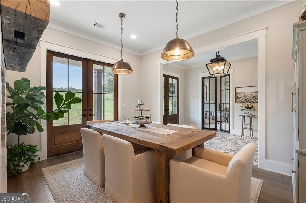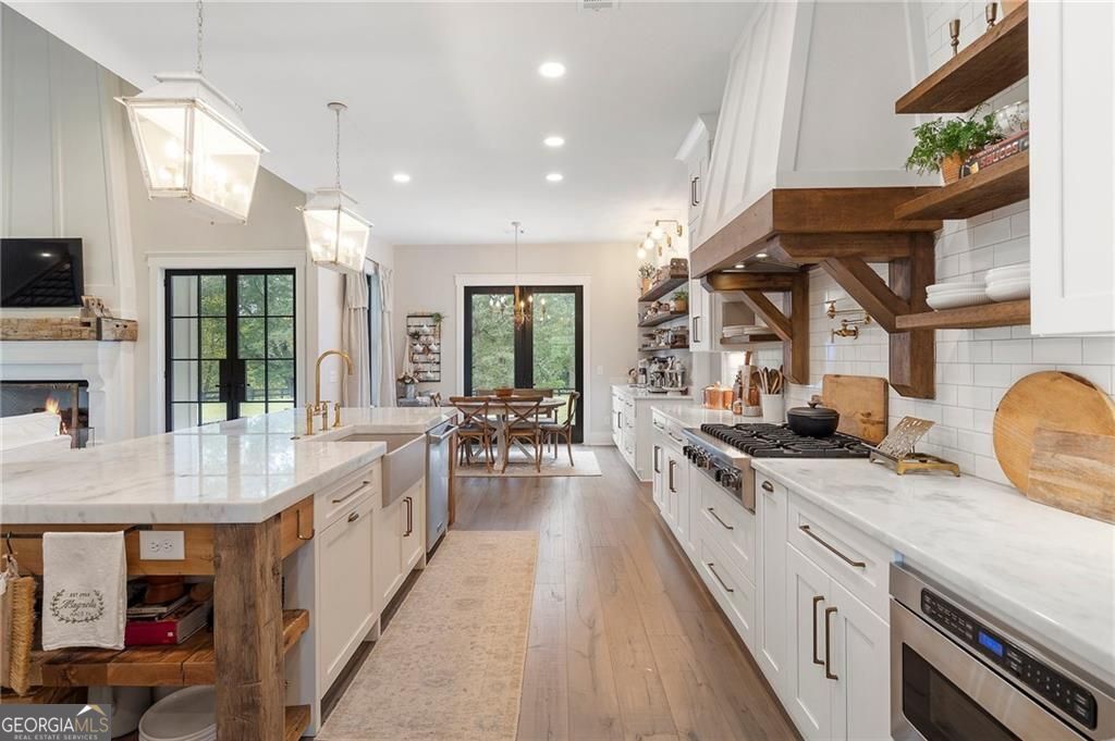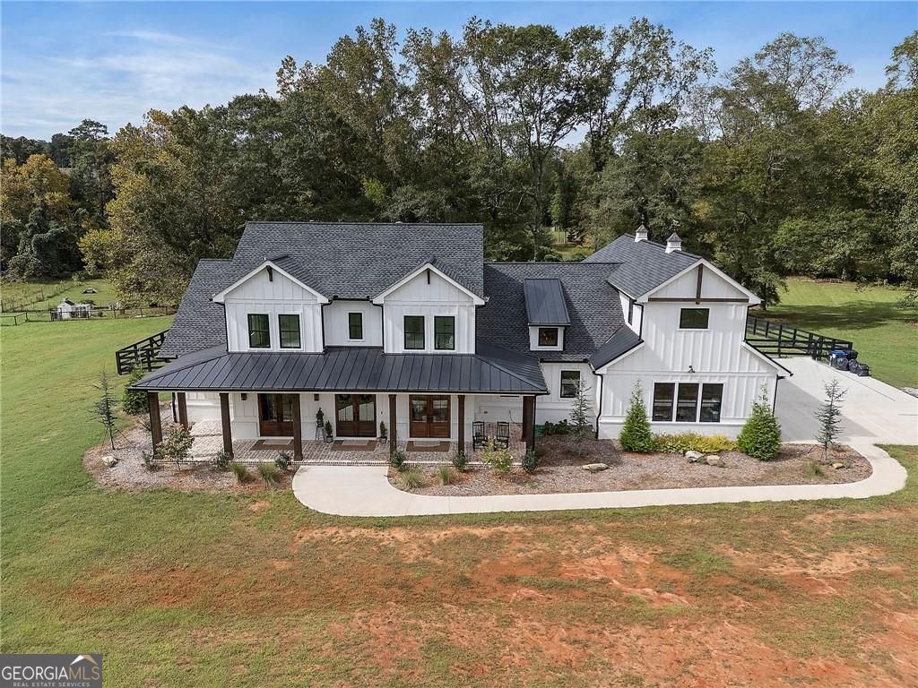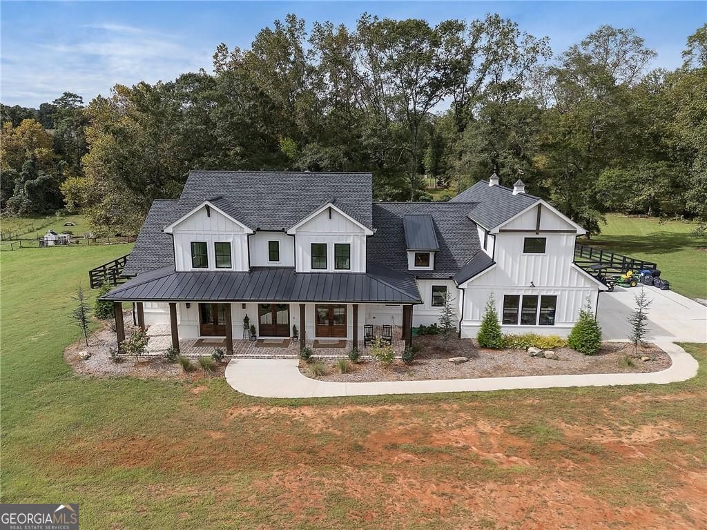 Welcome Home! You are invited to come experience this beautiful slice of heaven nestled on a secluded estate lot in the heart of Forsyth County. This cozy, 5-bedroom, 3.5 bath home is the combination of luxury, elegance and rural charm. Four custom copper gas lanterns greet you on the front porch. As you walk into the foyer, you are amazed by the open concept family, kitchen and dining room. The Chef's Kitchen features Viking high-end appliances. Custom built reclaimed wood island and vent hood with Brazilian stone countertops and imported brass tap sinks. Butler's pantry and separate dry food pantry are connected to kitchen and lead into mudroom and laundry with pet bath. Expansive garage with three separate garage doors and car charging station. Primary on main with amazing views and custom walk-in closet. Spa-like Primary bath includes stepless-entry shower with his/her shower heads and soaking tub. Main level also features in-law suite with private entrance for multi-generational living. Custom rod-iron stair rail leads upstairs to three more bedrooms and additional full bath. Home sits on a pasture with a back yard full of endless possibilities. Home is located in the premium buildable area on property. You will be living your best life, tucked away in the peacefulness but also close to high-rated schools, fine dining and local shops! Come find your happiness today at Cottage Mill Farm! **OPTION TO HAVE HOME FURNISHED ask agent for more details**