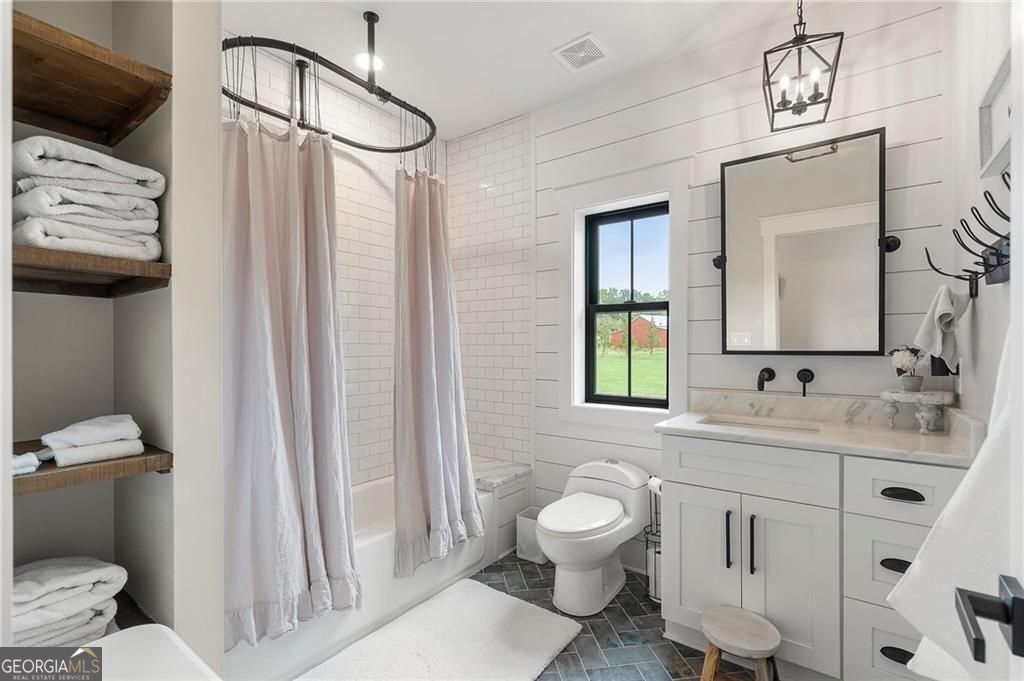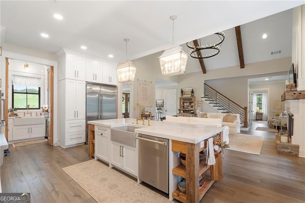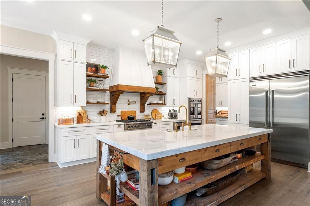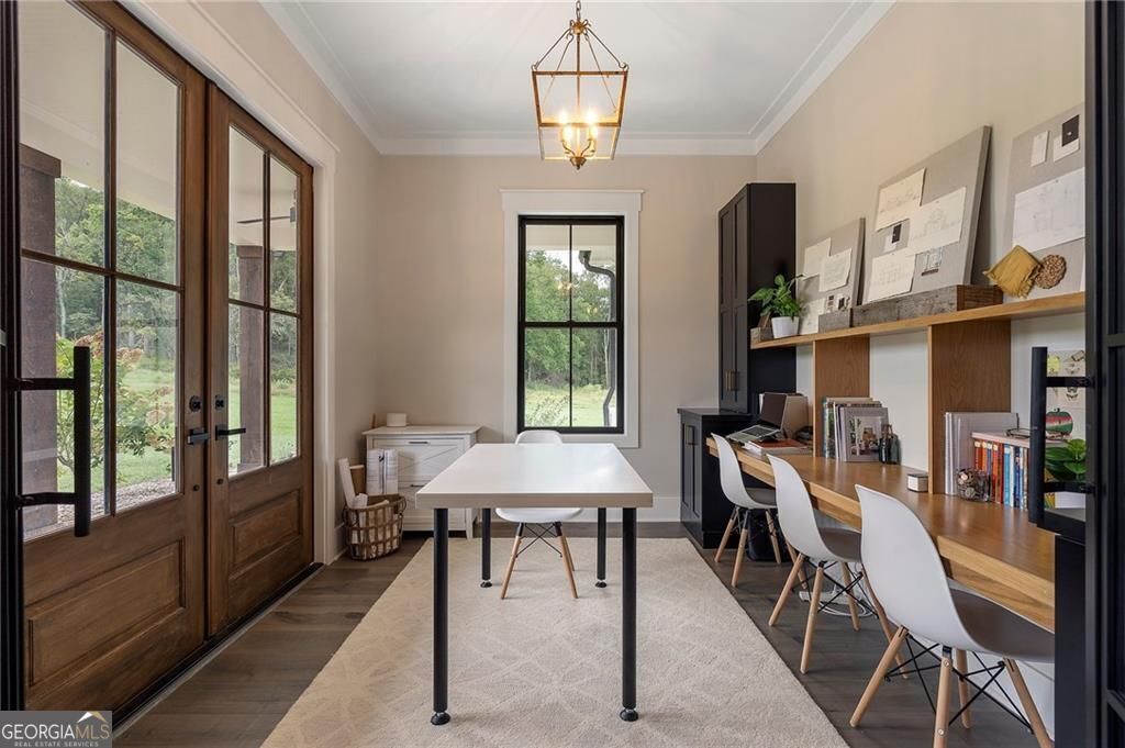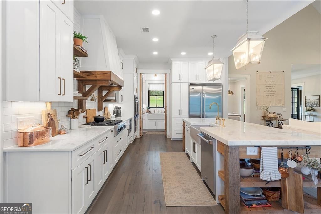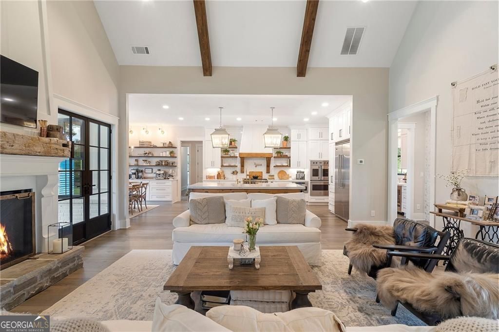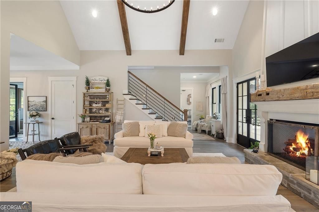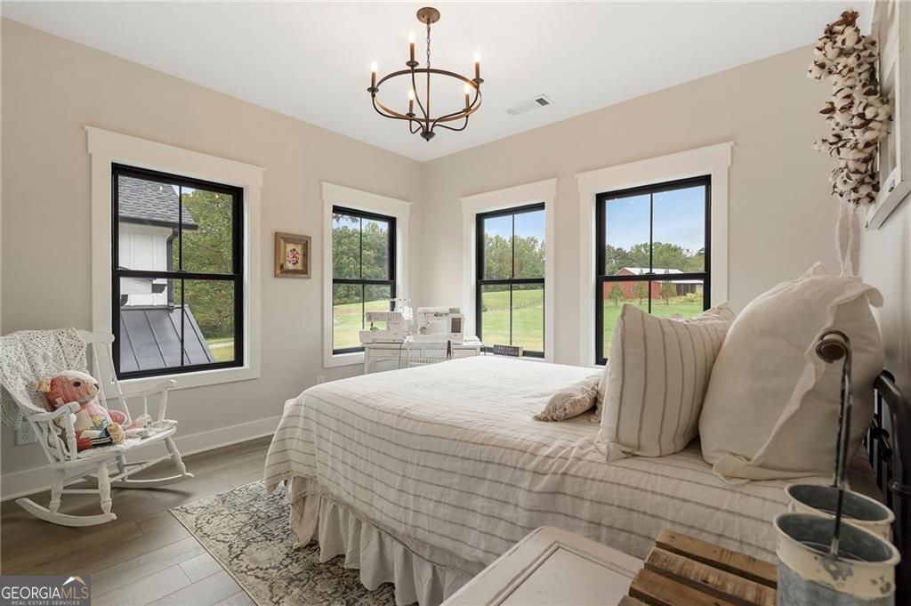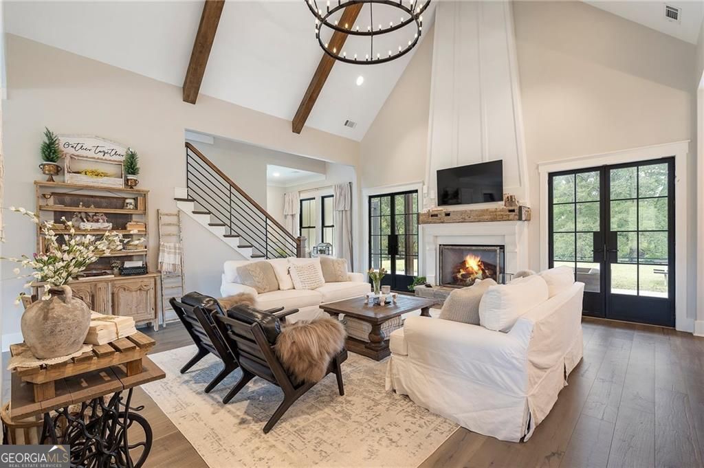 Welcome Home! You are invited to come experience this beautiful slice of heaven nestled on a secluded estate lot in the heart of Forsyth County. This cozy, 5-bedroom, 3.5 bath home is the combination of luxury, elegance and rural charm. Four custom copper gas lanterns greet you on the front porch. As you walk into the foyer, you are amazed by the open concept family, kitchen and dining room. The Chef's Kitchen features Viking high-end appliances. Custom built reclaimed wood island and vent hood with Brazilian stone countertops and imported brass tap sinks. Butler's pantry and separate dry food pantry are connected to kitchen and lead into mudroom and laundry with pet bath. Expansive garage with three separate garage doors and car charging station. Primary on main with amazing views and custom walk-in closet. Spa-like Primary bath includes stepless-entry shower with his/her shower heads and soaking tub. Main level also features in-law suite with private entrance for multi-generational living. Custom rod-iron stair rail leads upstairs to three more bedrooms and additional full bath. Home sits on a pasture with a back yard full of endless possibilities. Home is located in the premium buildable area on property. You will be living your best life, tucked away in the peacefulness but also close to high-rated schools, fine dining and local shops! Come find your happiness today at Cottage Mill Farm! **OPTION TO HAVE HOME FURNISHED ask agent for more details**