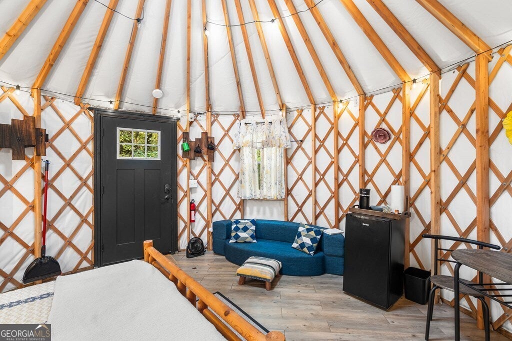 Step into a living piece of Brasstown history. Built in 1941 by Folk School teachers Eleanor "Ellie" & Monroe Wilson, this farmhouse radiates craftsmanship & connection - from hand-milled wood & forged hardware to Ellie's own stained glass still glowing in the sunroom. This 6+ acre farm is where generations lived, worked, & gathered. The property holds the historic community springhead that once served Brasstown families before running water reached their homes, a flowing symbol of connection that still nourishes the land today. Over 31/2 years, the current stewards have restored & renewed this property with great care, preserving its artistry & expanding its purpose. Now they open the door for the next caretaker - someone who will feel the magic here & carry its legacy forward with love, creativity, & vision. The main home features 3 bedrooms, 2 bathrooms, a living room with stone wood burning fireplace, sunroom, office, laundry room, & a storage room. Additionally, there is a garage apartment & 3 barns. Barn 1 has a large storage room, workshop & wood stove heater. Barn 2 is prepared for an outdoor kitchen & stubbed for a bathroom. Barn 3 has chicken coups & goat pens. Beyond the small farm the property also offers an income producing area featuring 2 yurts and a spacious tent that are regularly rented. Each of the rentals have their own private bathrooms and a nice creekside common area. Plus this charming old farm house with great history is close to the famous John C. Campbell Folk School and Brasstown's wonderful farm to table restaurant (The Crown at Brasstown).