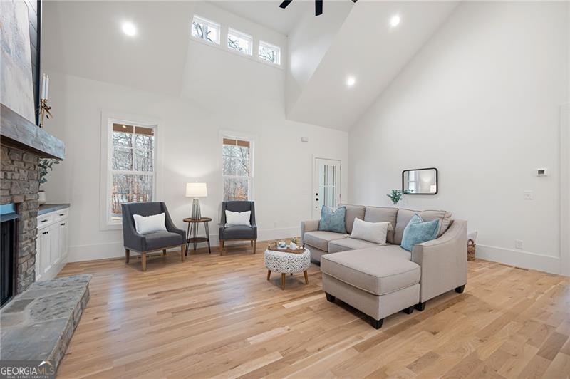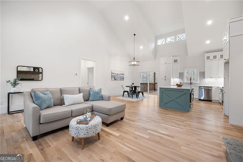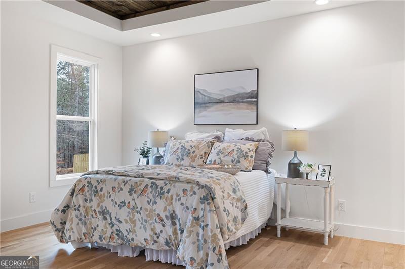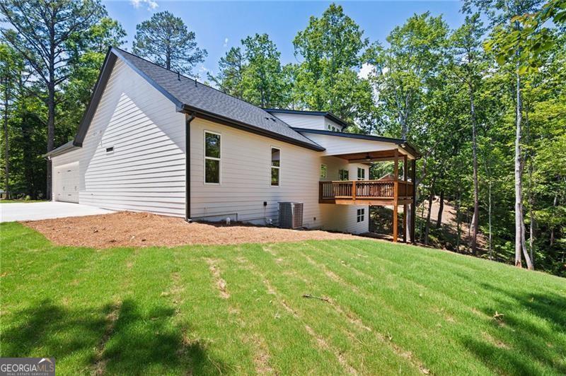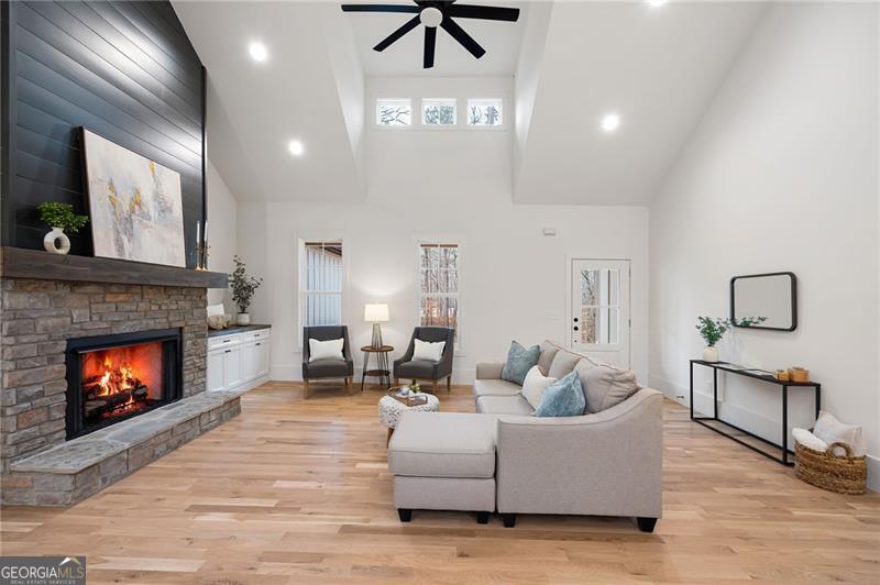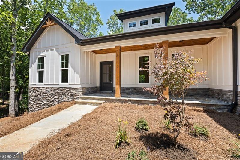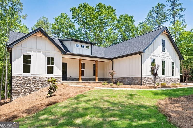 **ASK ABOUT SELLER FINANCING OPTIONS!** The seller is open to offering private financing with competitive terms-potentially lower than current market rates. Let's discuss what could work for you. Prepare to fall in love with this exquisite new construction one level living Ranch style home, thoughtfully designed for modern living with timeless charm. Nestled on a picturesque homesite with lake views and wooded privacy, this one-level beauty offers the perfect blend of elegance, comfort, and functionality-all set over a full, ready-to-customize basement. From the curb, cedar accents and a stone-front porch warmly welcome you, hinting at the quality and style found within. Step inside to find soaring ceilings and gorgeous white oak flooring that flows throughout-completely carpet-free. The heart of the home, the kitchen, is a true showstopper with double-stacked white cabinetry, including glass-front displays, soft-close doors, and a stylish vent hood that draws the eye to the high ceiling. The oversized island includes stainless steel appliances including an under-counter microwave, while quartz countertops and a gas range make everyday cooking feel gourmet. A spacious pantry with roll-out shelving adds practical beauty. The open-concept living area is anchored by a gas fireplace with dramatic shiplap detailing that climbs the vaulted ceiling, flanked by custom built-ins for added charm and storage. The split-bedroom layout offers privacy, with the primary suite serving as a luxurious retreat. Enjoy wood-clad ceilings, two generously sized closets, and panoramic backyard views that include a peaceful pond. The en suite bath and secondary spaces continue the high-end theme with stylish finishes and thoughtful touches throughout. Even daily routines feel indulgent thanks to a well-appointed laundry room featuring a stainless sink and designer accent tile. Outdoors, relax under the covered porch, perfectly positioned to take in the tranquil landscape. The sodded front and back yards offer instant curb appeal, while the side-entry garage includes an epoxy-coated floor for a polished finish. Downstairs, the full basement is already outfitted with a powered, lit panic/tornado room and is ready to become whatever you envision-be it a home theater, workshop, or extended , multi-generational living area. With its refined craftsmanship, abundant storage, high-end finishes, and an unbeatable setting, this home delivers everything you've been dreaming of-and so much more. The look and feel of being away from it all...yet minutes from - Woodland Hills Golf Course, Sam Smith Park, Historic Downtown Cartersville, Lakepoint Sports Complex and even Dallas and Acworth!