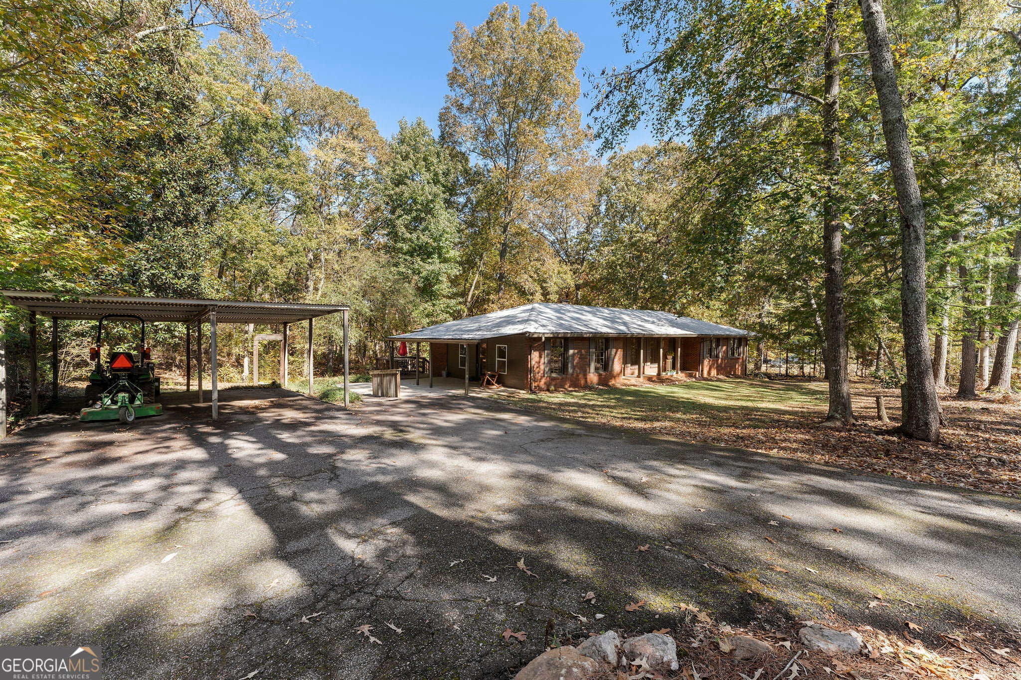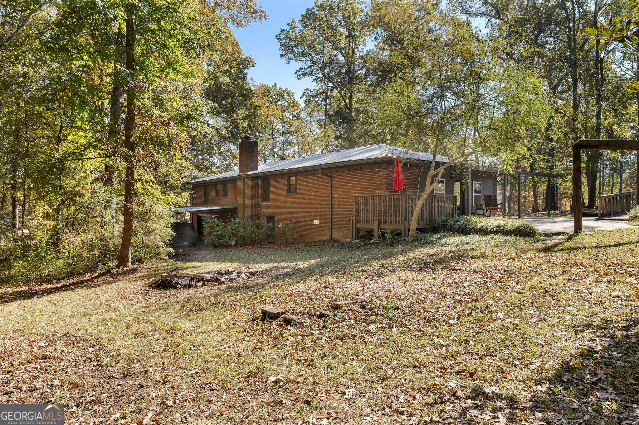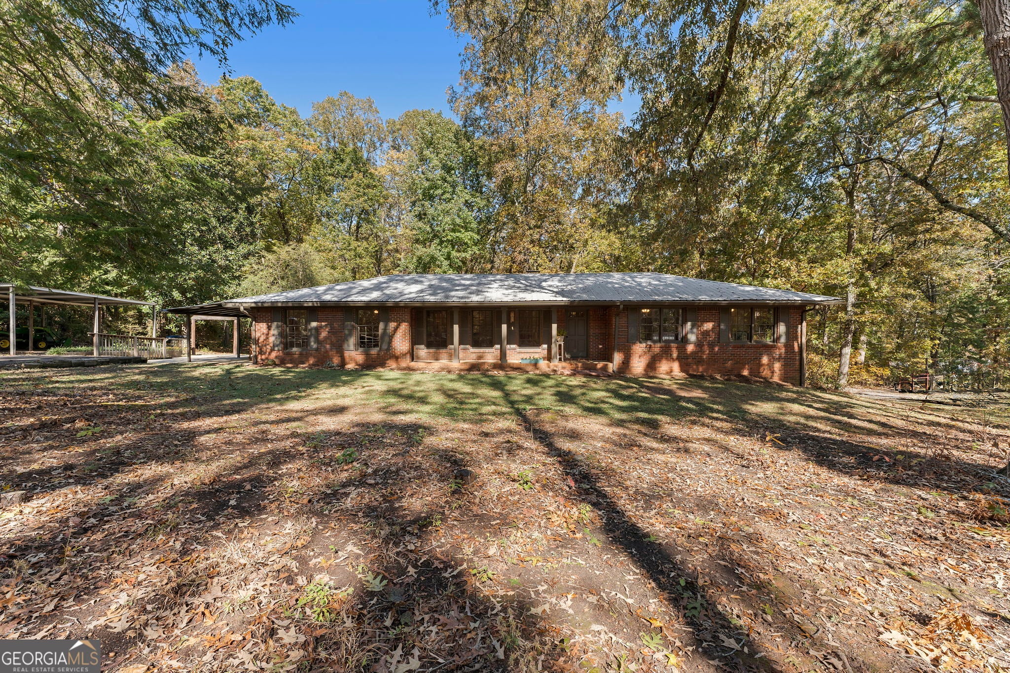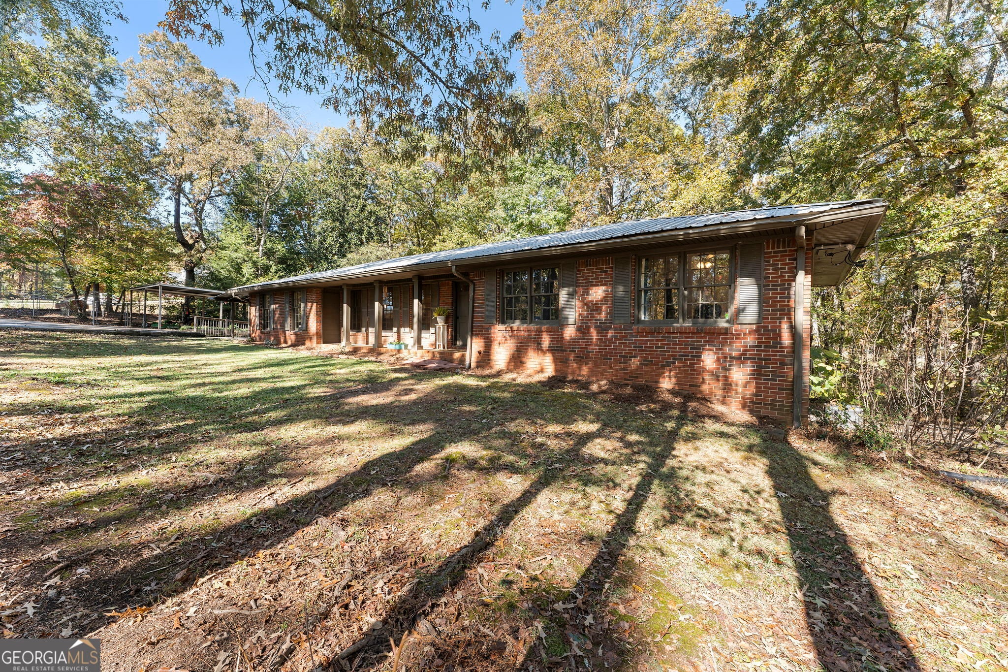 True Ranch home on almost 1.5 Acres* NO HOA* Brick Exterior with Front Porch* Low Maintenance Metal Roof* Huge Den perfect for Media Room, Game Room or Work Out Area* Large Living Room with Ceiling Fan* Kitchen has Granite Counter Tops, Built In Microwave, Hanging Pot Rack and Tons of Storage in the Oversized Laundry Room* Brick Fireplace in the Dining Area and Tons of Cabinets* 3 Bedroom and 2 Full Baths* There is a Full Daylight Basement with Exterior Entrance and Separate Driveway* Lots of Privacy and very nice homes all around this property* 2 Car Carport and Circular Driveway for Plenty of Parking Spaces* Easy Access to I-20 for Atlanta Commute* This home has been well maintained*