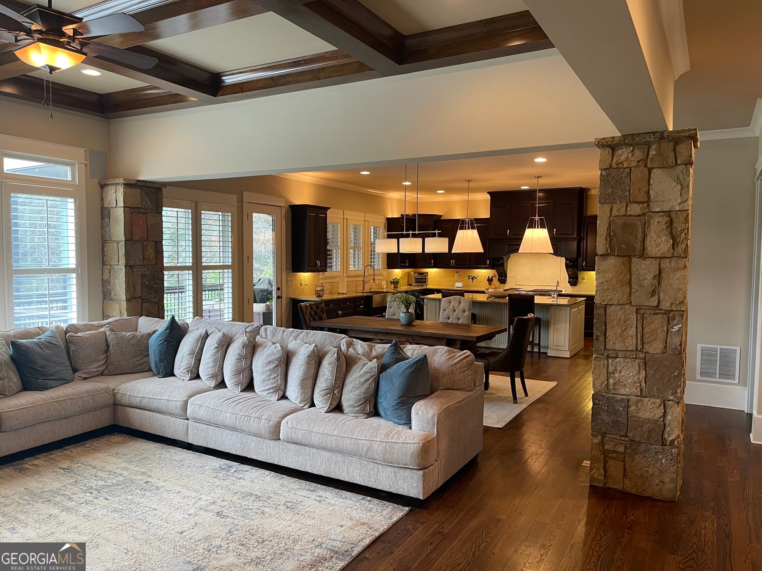 *Main level wood floors just refinished to ensure quick buyer move in* Stunning Custom Craftsman in prestigious Cambridge at Hamilton Mill - Dacula, GA 6 Bedrooms | 5.5 Bathrooms | 3-Car Garage | Movie Theater | EV Charging | Mill Creek Schools Welcome to this meticulously maintained custom-built 2014 Pottery Barn-style craftsman located in the desirable Cambridge section of Hamilton Mill, within the Mill Creek School Cluster in Dacula, GA. Step through grand double wrought-iron doors into a soaring two-story foyer, where elegance meets functionality. This 6-bedroom, 5.5-bathroom masterpiece features solid hardwood floors throughout both the main and upper levels, showcasing true craftsmanship in every detail. Main Level Highlights: Formal dining room with beamed ceiling and board & batten walls - seats 12 for those memorable gatherings. Opposite the dining room: a flex space with coffered ceiling and barn doors - perfect for a sitting room, music room, office, or playroom. Oversized guest suite on main with ensuite bath and wheelchair accessibility - ideal for multigenerational living. Chef's dream kitchen: Six-burner Wolf gas cooktop with griddle Double ovens & prep sink Oversized island and massive walk-in pantry Open-concept family room with coffered ceilings, three stone columns, and a floor-to-ceiling gas fireplace. Mudroom/drop zone off the kitchen leads to an oversized 3-car garage with EV charging. Upper Level Retreat: Expansive primary suite with coffered ceiling and a luxury ensuite spa bath: Jetted tub, oversized shower, makeup vanity, and boutique-style custom closet. 3 spacious secondary bedrooms: 2 share a Jack-and-Jill bath 1 has a private ensuite Large laundry room with sink - accessible from both hallway and primary closet. Huge media room currently used as a home office/study with custom built-ins. Terrace Level Features: 6th bedroom with custom bunk beds for four + full bath Second laundry room Fully functional home theater with: 120-inch screen, projector, surround sound Snack & beverage concession area Unfinished areas framed and ready for: Club bar, game room, or guest suite Includes HVAC, plumbing, and ample storage space Outdoor Living: Oversized deck with wood-burning fireplace Matching covered patio below Fully fenced backyard Professionally landscaped and maintained Systems & Utilities: 4 Trane A/C units and furnaces 2 water heaters (gas + electric) Built in 2014 and maintained to perfection This home checks every box - luxury, space, functionality, and entertainment. Located in one of Gwinnett County's top school districts, with access to parks, shopping, and I-85. You truly have to see this one in person to appreciate all it offers.