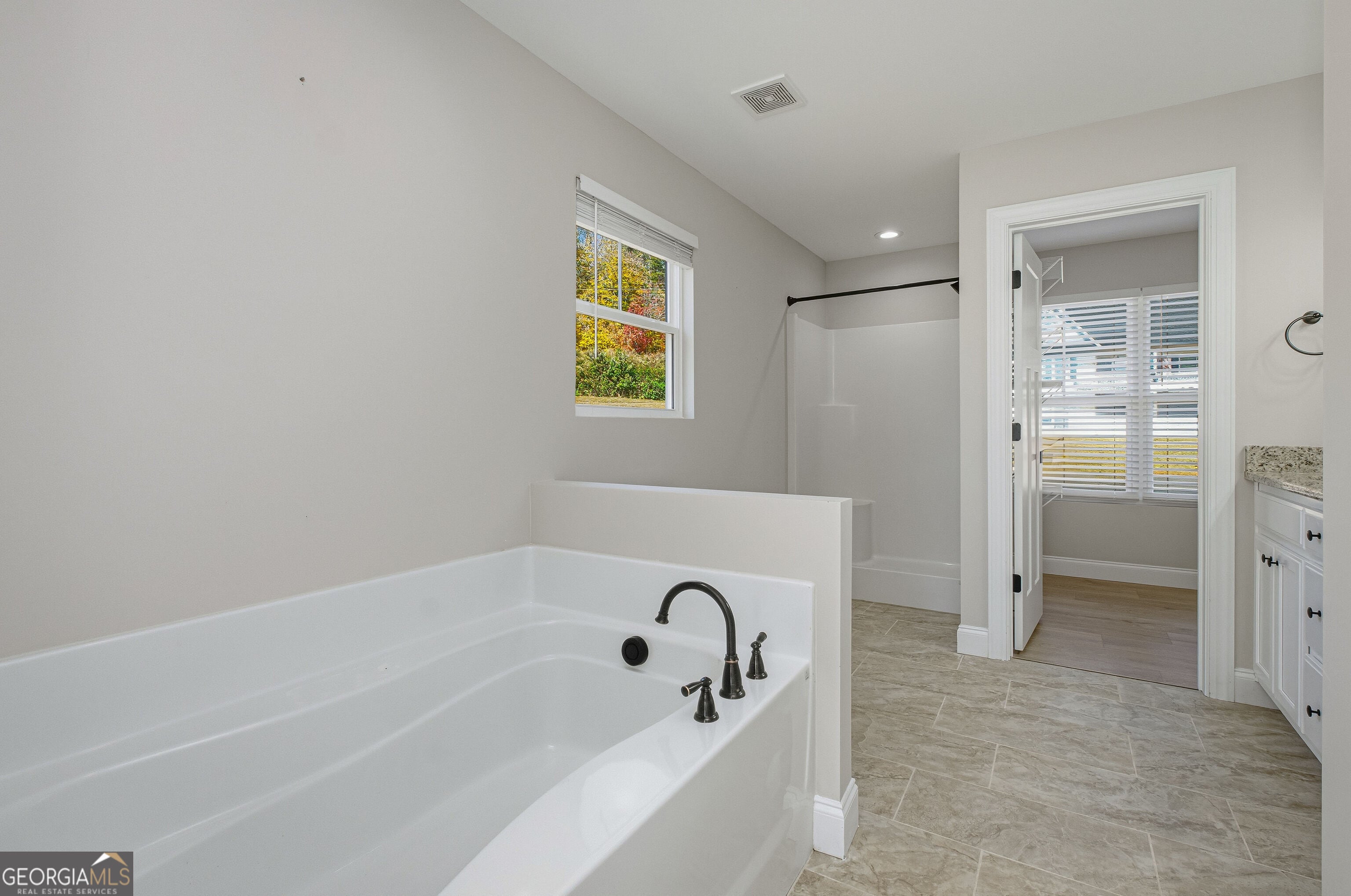 - Interior FeaturesBeamed Ceilings, Double Vanity, Master On Main Level, Separate Shower, Soaking Tub