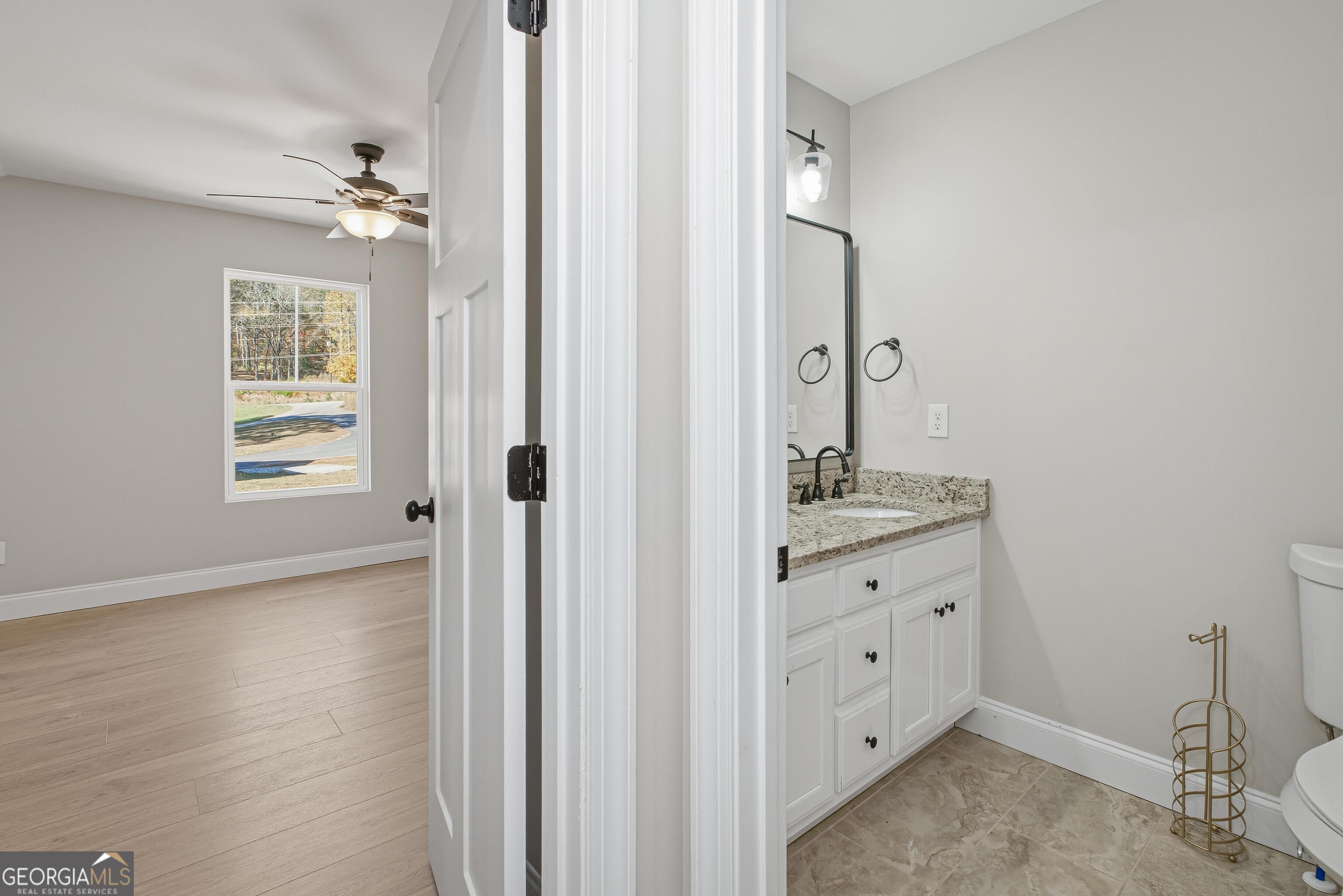 This charming 3-bedroom, 2.5-bath home offers an ideal blend of comfort and convenience, with the primary suite located on the main level. Enjoy a beautifully designed kitchen featuring granite countertops, custom white cabinetry, and stainless steel appliances. LVP hardwood flooring runs throughout the home, adding warmth and durability. The full unfinished daylight basement provides excellent potential for expansion-easily accommodating two additional bedrooms and a bath. Outside, you'll love the spacious backyard, complete with professional landscaping and an underground sprinkler system. Conveniently located near local wineries and the University of North Georgia. Don't miss this must-see home!