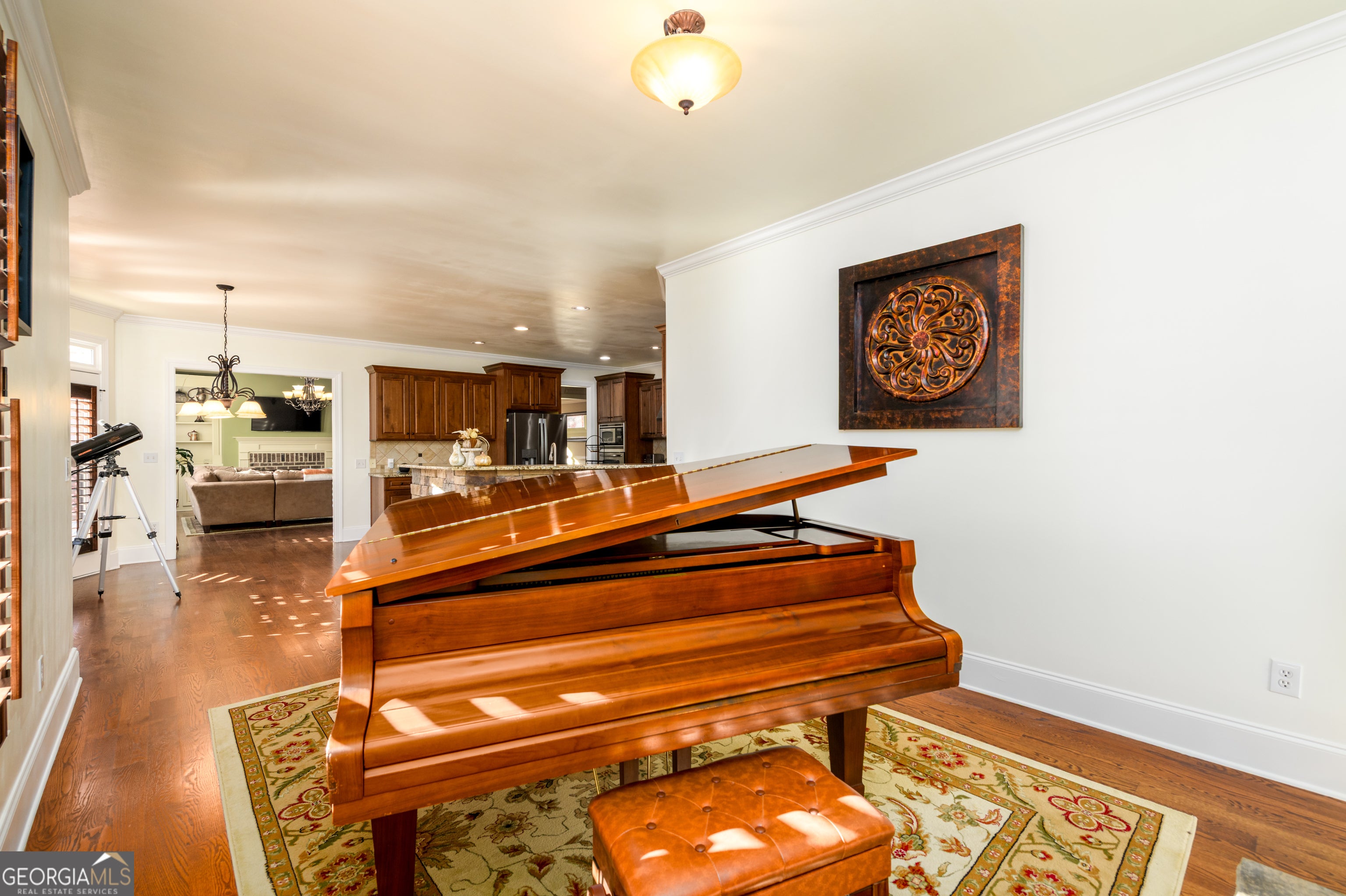 Welcome to this stunning home in Dacula, perfectly positioned on a corner lot and filled with natural light. Crown molding, coffered ceilings, and built-in shelving enhance the home's timeless charm, while a spacious unfinished basement with exterior entry offers endless possibilities. Inside, enjoy three gas fireplaces in the living room, family room, and upstairs primary suite. The primary suite features a cozy sitting area, a separate tub and tiled shower, and a large walk-in closet with custom shelving and motion-sensor lighting. The home offers multiple ensuite bathrooms-including a main-floor guest suite and a second upstairs suite-plus a Jack-and-Jill setup connecting two bedrooms, all with tiled floors and tub/shower combos for convenience and style. A large bonus room provides flexible space for work, play, or relaxation. Tech-savvy buyers will appreciate the Nest system and smart home control panel, allowing automation of lights, fans, and exterior doors. Step outside to the back deck, enhanced with lattice-style privacy detailing for peaceful outdoor living. With thoughtful upgrades, elegant finishes, and smart features throughout, this home balances sophistication and everyday comfort.
