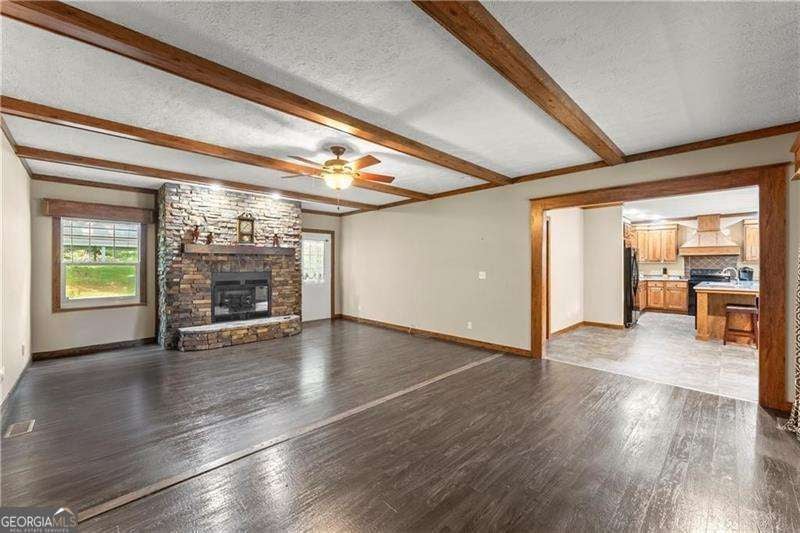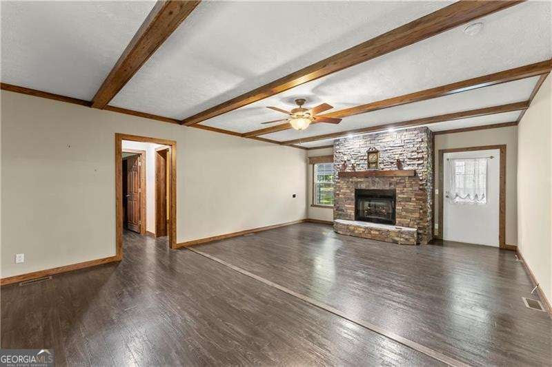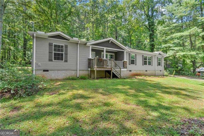 Welcome home to this meticulously well-maintained 3 bedroom, 2 bathroom manufactured home sitting on a permanent foundation! Situated on one level acre of land in the highly desired Sequoyah District, this home has NO HOA and plenty of wooded privacy! Bring your RV or outdoor toys! Over 1900+ SQ FT, inside, you will find an open concept, main living area featuring wooden beams and a stacked stone fireplace. Just off the family room is your spacious kitchen/dining area featuring a large island and stained kitchen cabinets. Your primary suite is over-sized and offers his/hers separate walk-in closets and vanities! Enjoy soaking in your garden tub while enjoying the nature views! On the other side of the home, you will find two secondary bedrooms with large walk-in closets as well as a secondary bathroom. Quick and easy access to East Cherokee Dr; Hwy 5; Hwy 575 - just minutes to all the shopping and dining of Canton, Woodstock or Hickory Flat! FHA and VA approved (Title has been retired)! Come tour this home today!