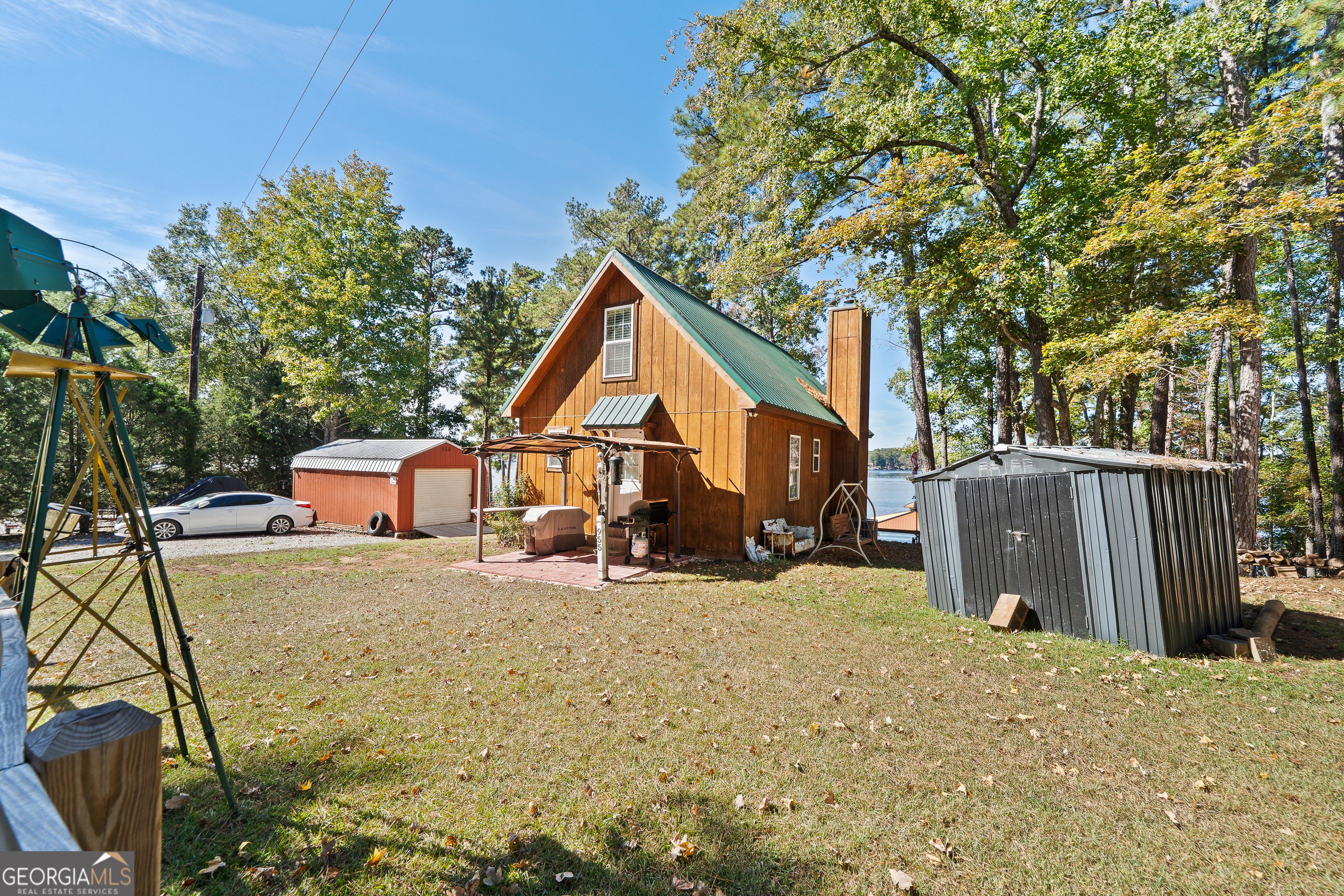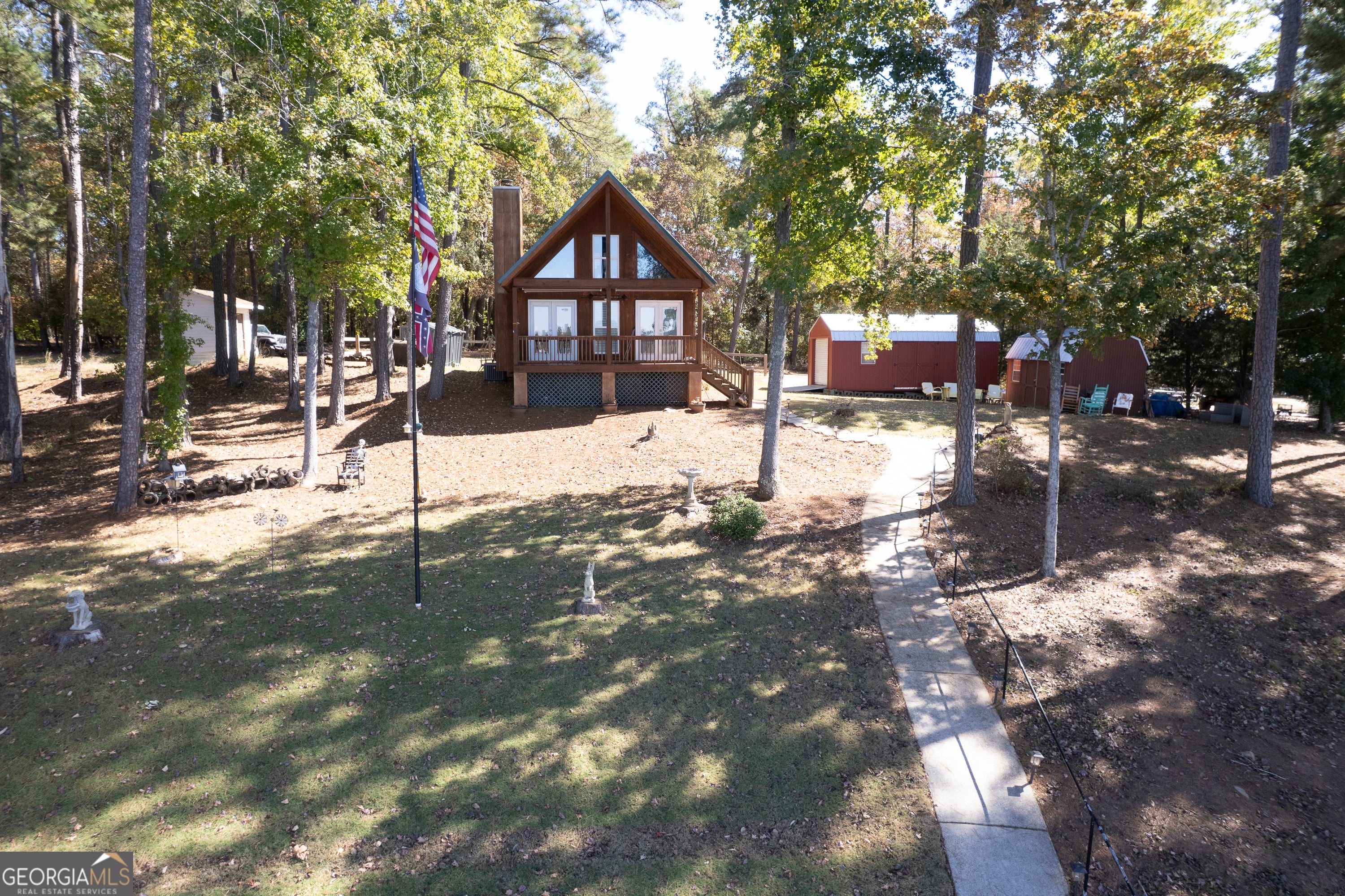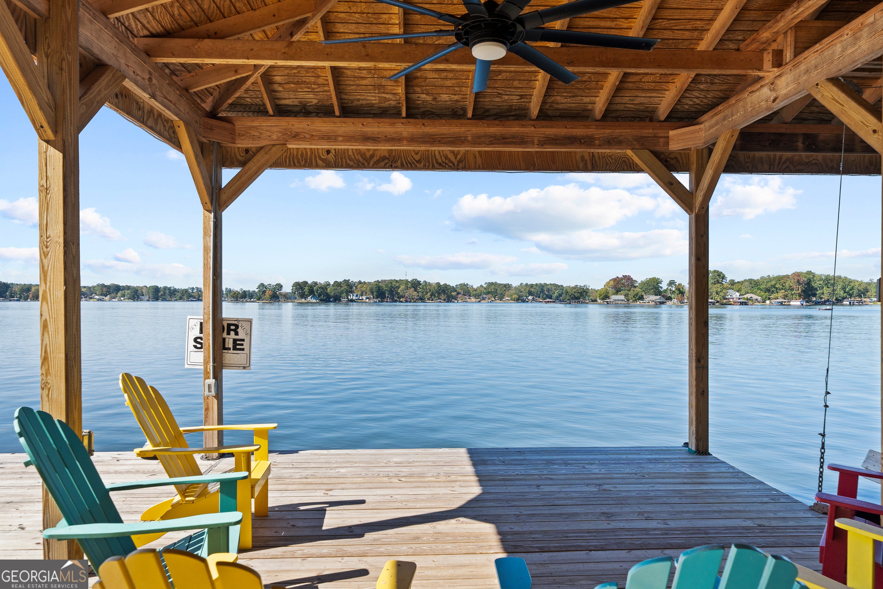 WHAT A VIEW!!!! This beautiful well-maintained home on Lake Sinclair is a must see. Great for full time or a weekend getaway. DEEP water at the dock, the dock is new with great entertaining space in shade or sun with built in fridge, has a sea doo lift, has red lights in the cupola. Has a 300-foot private well, never worry about water with tankless on demand hot water. Wood burning fireplace. Land boundary lines are marked, no guessing. Underground power leads into the home. Some furniture is negotiable. It's a lease lot and the ones around it are lease lots no worrying if your neighbors are going to be renting out to unknown people. It's a quiet beautiful area on Lake Sinclair. Call today to see this beauty.
