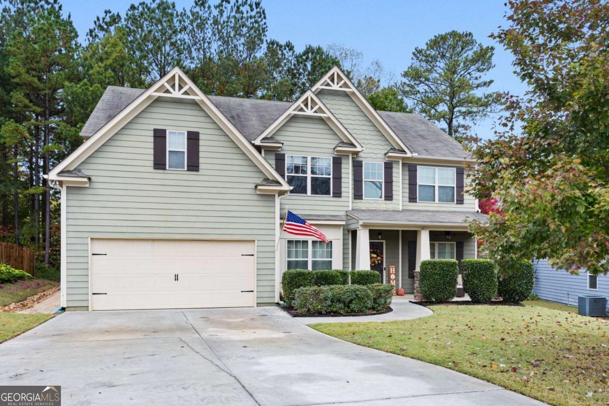 Welcome home to this stunning 5-bedroom, 3-bath, one-owner *smart home that has been meticulously maintained and thoughtfully designed! **Step inside to find an inviting open floorplan featuring a formal dining room, home office, and a coffee nook. The kitchen is a chef's dream with granite countertops, abundant cabinetry, stainless steel appliances, walk-in pantry, and breakfast area overlooking the living room. Enjoy relaxing by the wood-burning fireplace with gas starter and marble surround in the spacious family room. ***The main-level bedroom and full bath are perfect for guests or an in-law suite. Upstairs, the primary suite offers a true retreat with a sitting area, his and hers vanities, large tiled shower. Secondary bedrooms are generous in size with plenty of closet space. ****Additional highlights include upgraded lighting, hardwood floors, carpet in bedrooms, and a main-level laundry room. The available *smart home features control of lights, thermostat, doorbell, front door lock, ceiling fans, higher blinds, and oven, all integrated through the Wink Hub System for modern convenience and peace of mind. *****Step outside to a private backyard oasis featuring an oversized patio with room (and pavers) to expand, a smokeless firepit, storage building, French drain, and designated vegetable and herb garden. The garage includes a workbench, and the home's curb appeal and functionality make it truly move-in ready! *******Located in a sought-after community with pool, clubhouse, playground, and pickleball courts, all within an easy walk or golf cart ride. *******This home is in a highly desired school district with shopping, dining, and Interstate 75 just minutes away-a wonderful combination of comfort, technology, and lifestyle!