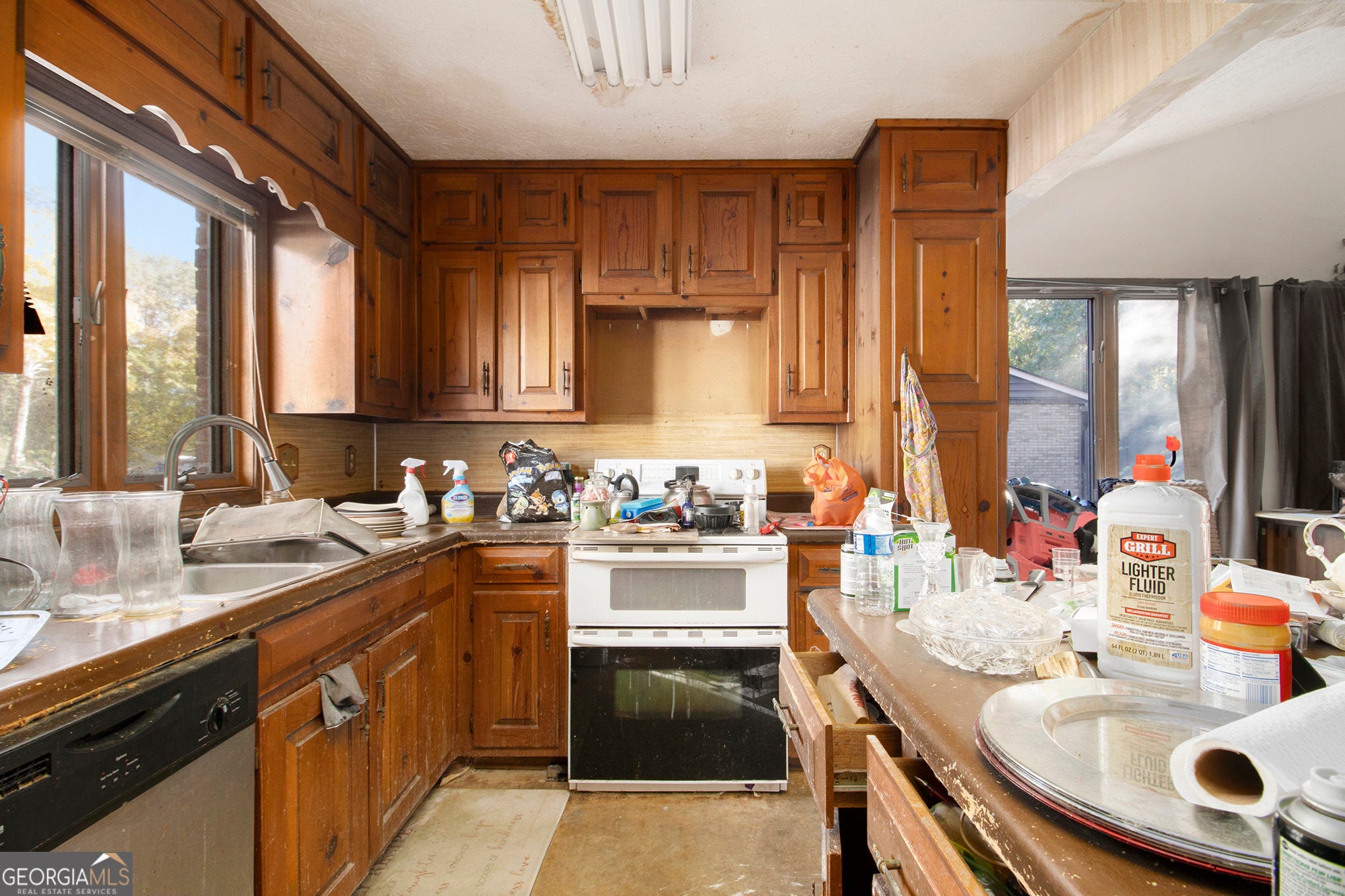 Discover the potential in this 3 bedroom, 2 bath one-level townhome featuring a classic brick front exterior and a recent new roof - a fantastic foundation for someone who's ready to bring vision, style, and sweat equity to life. Inside, you'll find a spacious family room anchored by a brick fireplace and enhanced by a soaring cathedral ceiling that adds bright, open volume. The open concept dining area flows easily into the kitchen, which offers views into both the family and dining spaces, along with stained cabinetry and an island for additional prep or serving space. A separate den/bonus room provides flexibility - perfect as a home office, playroom, media room, or hobby space. The owners suite includes a private bath with shower, while the secondary bedrooms are comfortable in size and layout. Covered parking adds convenience, and the location is ideal - just a short drive to Panola Rd, Scenic Hwy, 278, and major interstates. This property needs updating and work and is being sold AS-IS. Great upside here for a savvy buyer who sees value and opportunity.