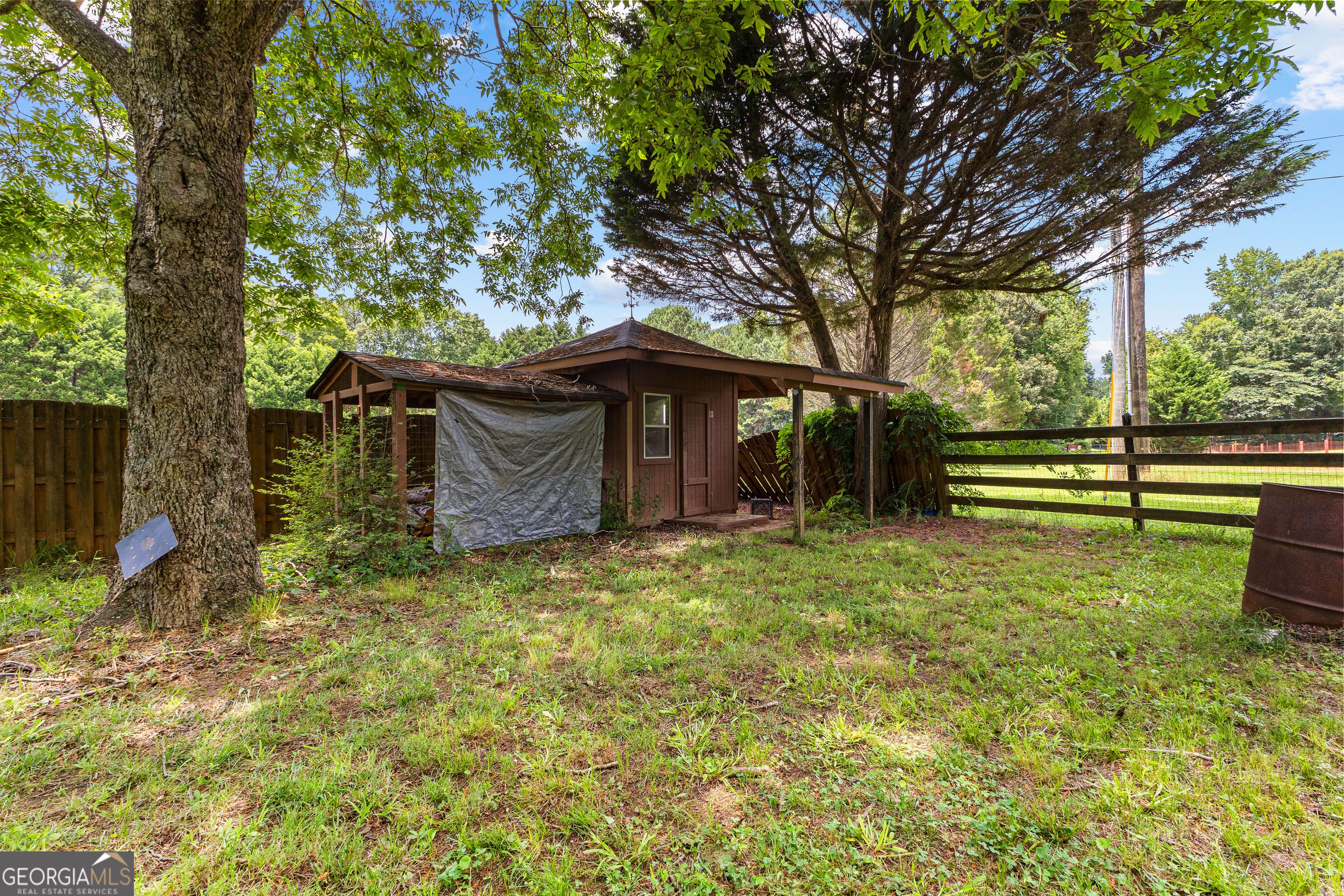 Join us Saturday 11/8 from 11:00-1:00 for our OPEN HOUSE!!! This one of a kind property could be your very own home.... Up to $10,000 in seller paid concessions for the buyer to use with an acceptable offer. Entering the circular drive you can't help but see the charm and you will want to call this home your very own. This adorable 1930's home nestled on a 1+ acre corner lot definitely sets the southern scene and provides a hint of times past. You are greeted by the large and spacious front porch just beckoning you to sit, relax and enjoy the gorgeous, mature hardwoods as you unwind from your day. If space and function are your desire, then you will be pleasantly surprised how much this 4 bedroom and 4 full bath home will meet your needs. The main floor boasts of high ceilings throughout, a sunlit and cheerful kitchen with tons of cabinets and counter space, a true laundry/mud room, as well a cozy breakfast nook adjacent to the lovely dining room which has full glass dining room doors. These can be left open to the living room with its original (but now decorative) fireplace, to make entertaining and family gatherings warm and enjoyable. The primary suite is generously sized with double closets, and the ensuite bath has a genuine deep soaking tub with separate tiled shower. The primary suite has a convenient separate entry to the laundry/mud room providing for additional access. In addition to the primary there are 2 additional secondary bedrooms, along with 2 full baths (one as another private ensuite to a bedroom). Outside the laundry/mudroom, up a quick flight of stairs you will find the 4th bedroom and 4th full bath. There is another generous space here that could be an office, craft or hobby room, workout room or even a media room. Step into the fully fenced back yard and breathe in the serenity afforded from the privacy and more gorgeous, mature hardwood trees all from the recently renovated deck which is the perfect place for the cup of coffee in the morning. In addition to the attached, oversized 2 car garage, there is a separate workshop with power. As well as an active well to help with any gardening needs. Perhaps you dream of some chicks with a little coop, there is the perfect place under the shade of the trees. This is a home like no other and it's waiting for you to put your personal touches to it and make it your very own. This location is a dream, in the heart of Henry county, you're still close enough to enjoy local eateries and shopping, and still be able to commute to Atlanta Hartsfield Airport or Atlanta. Don't miss the video and schedule your private showing to experience all this home has to offer.