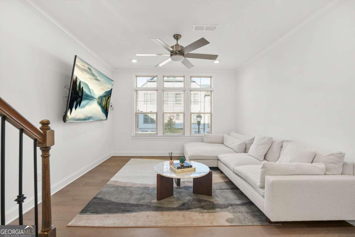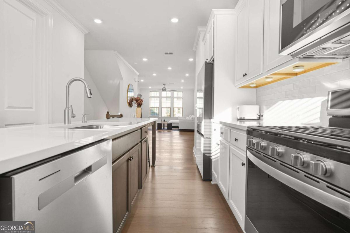 Welcome to this stunning 3-bedroom, 3.5-bath townhome located in the sought-after gated community of Reverie on Cumberland! Perfectly positioned just minutes from The Battery Atlanta, Truist Park, Vinings, and major highways, this luxury townhome offers the ultimate blend of modern living, convenience, and community lifestyle. Step inside to discover an open and bright main level designed for entertaining - featuring a spacious living area, sleek hardwood floors, and large windows that fill the space with natural light. The gourmet kitchen boasts quartz countertops, ample cabinetry, stainless steel appliances, and a commensurate island - ideal for casual meals or hosting friends and family. Upstairs, retreat to the serene primary suite with a walk-in closet and spa-inspired ensuite bath complete with dual vanities and a walk-in shower. An additional bedroom with a private bath offers flexibility for guests or a home office. The terrace level features a third bedroom with an ensuite bath, perfect for guests or extended family. Enjoy peaceful mornings or relaxing evenings on your private balcony, or take advantage of the neighborhood amenities - including a resort-style pool, clubhouse, fitness center, and lush green spaces. Situated in a vibrant community near exquisite dining, shopping, and entertainment, this move-in-ready home offers luxury, location, and lifestyle all in one. Don't miss your opportunity to call 3927 Allegretto Circle home - schedule your private tour today!