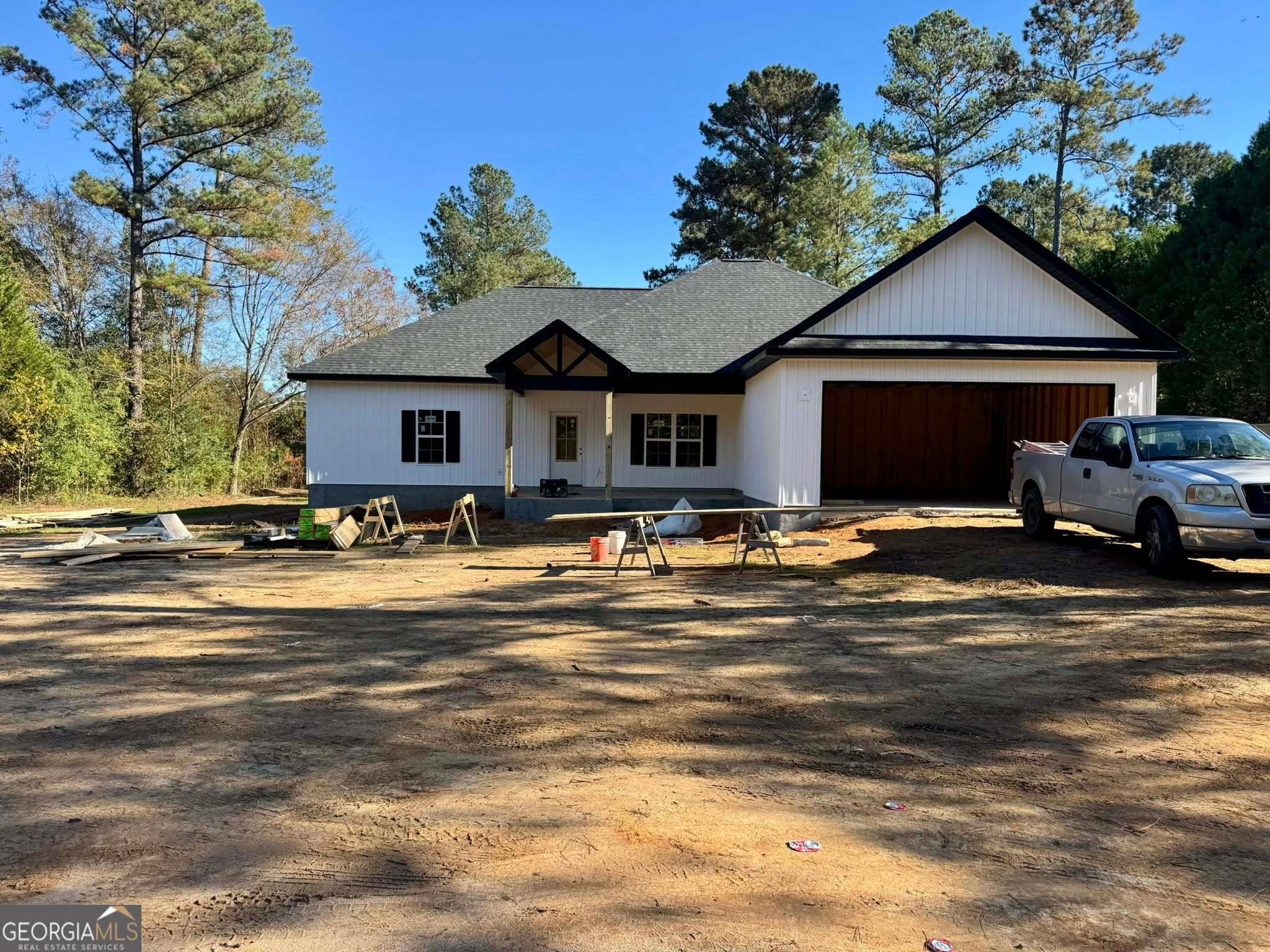Brand New Construction!! Located in the county on a double lot totaling 1.29 Acres. Beautiful four bedroom, two bath home with open/split floor plan. LVP flooring throughout house. Spacious Living Room with wooden beam coffered ceiling and brick fireplace. Kitchen with large center island, granite countertops, stainless-steel appliances, and walk-in pantry. Spacious master bedroom with tray ceilings, en-suite bathroom with garden tub, shower, vanity with double sinks/granite countertops, and large walk-in closet. Covered front and back porches. Amazing location in the county, but not far from the city limits and across the street from the Holly Hills Pool. Community Pool Membership available. Pictures posted are similar to what finished home will look like. Estimated completion date: December 2025.
