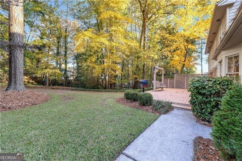 Unique Opportunity in Dunwoody's Premier Neighborhood Discover an exceptional chance to reside in the highly desirable Village Mill community of Dunwoody! This home features 4Bed | 2.5Bath, complemented by a side-entry two-car garage, all situated on a beautifully landscaped lot. The property boasts mature greenery and a fenced backyard, complete with a deck perfect for outdoor relaxation and entertaining. As you enter this charming home, you'll be greeted by a spacious foyer that opens to both a living room and dining area on either side. The family room features a cozy Brick gas fireplace with an open concept to the living room, creating an inviting atmosphere. The expansive eat-in kitchen is highlighted by a bay window, while a generously sized laundry room is conveniently located off the kitchen. Enjoy the elegance of gleaming hardwood floors throughout both levels of the home. (under carpet) The primary bedroom is a true retreat, featuring double closets and a large master bath. Three additional guest bedrooms provide ample space for family or visitors. An attic above the garage offers the perfect bonus room or office. The property includes a large recreation room with an abundant of storage and direct exterior access. You'll appreciate the convenience of being within walking distance to the Village Mill Swim & Tennis Club, which features a family-friendly pool with swim lanes, a pavilion, six tennis courts (four of which are lit), and a playground area. Membership to the club is optional. Additionally, enjoy access to award-winning schools, scenic walking trails, public parks, shopping, and dining options, all just minutes away. Don't miss this rare opportunity to call this beautiful home yours!