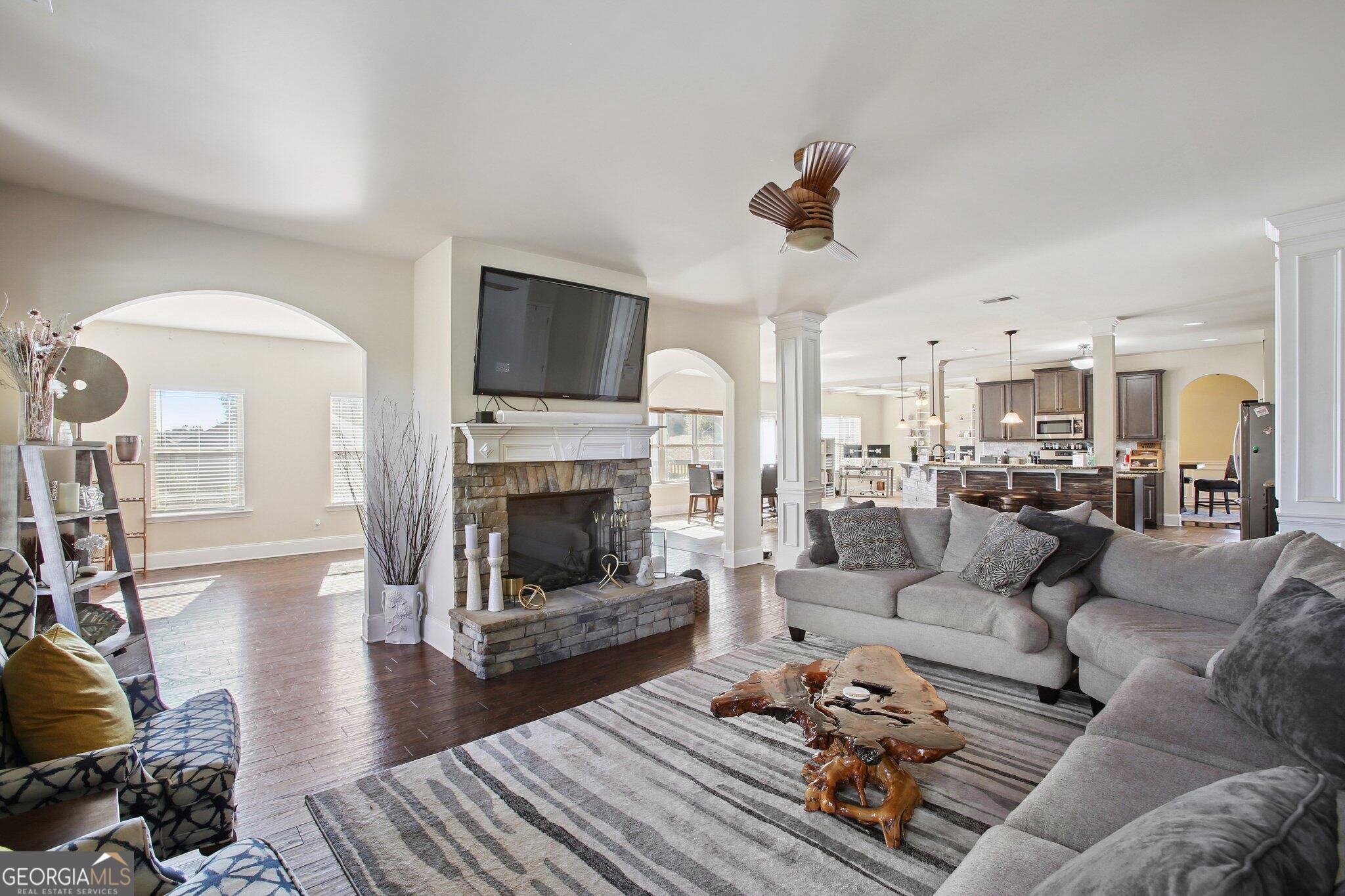 THIS IS IT!!! Gorgeous 8 bedroom, 6 bath home with a FULL FINISHED BASEMENT. There are just too many features and upgrades to list. But here are a few. Let's begin on the main level. The plan is open, inviting and great for entertaining. Immaculate gourmet kitchen with breakfast area and large island, formal living and dining room, keeping room and large family room with fireplace. Main level has spacious guest bedroom adjacent to full bath. Dual staircase allows for easy access to the 2nd level where you'll find 5 additional bedrooms and 4 baths. Each bedroom is spacious and has access to its own bath and walk-in closet. But first things first, the LUXURIOUS OWNER'S retreat. It is amazing! It has a huge sitting area, great for relaxing, reading or watching TV. Owners bath has linen closet, dual vanities, large soaking tub, separate shower, and large dual walk-in closet. The 3rd and 4th bedrooms each have their own full baths. The 5th and 6th bedrooms share a jack and jill bath. BUT WAIT, there's more! The FULL FINISHED BASEMENT includes a full kitchen, full bath, custom bar, entertainment area, bonus room (gym) with custom barn doors, media theatre room, 2 bedrooms and a common living space. The basement has interior/exterior access. The patio leads to a HUGE fenced backyard. 2 car garage. Conveniently situated near Downtown Fayetteville, Trilith Studios, Piedmont Fayette Hospital, and Fayette Pavilion Shopping. DON'T MISS THIS ONE. IT'S A MUST SEE!