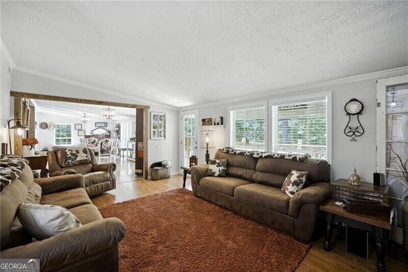 Motivated Seller! Discover the perfect blend of country charm and modern convenience with this beautifully remodeled Manufactured home set on a permanent foundation. Nestled on 26 acres with 200+ Feet of Hudson River Frontage, this property offers privacy, space, and endless possibilities-all just minutes from downtown Commerce and convenient to I-85. Currently operating as a working mini-farm, the property is fully fenced and features multiple barns and outbuildings, a detached garage, and a 4-stall pole barn ideal for large campers, boats, or farm equipment. A natural pond adds to the serene landscape, while a custom outdoor fire pit or the Hand built pier on the pond makes the perfect gathering spot for family and friends. Animal lovers will appreciate the opportunity to continue the legacy of this farm: while livestock is not included, the seller is willing to leave behind two cherished donkeys (a bonded mother and son pair) for the right buyer. Whether you're seeking a private homestead, hobby farm, or a retreat with abundant space for recreation and storage, this property delivers. With gated drive, gorgeous landscape, and river frontage, it's truly a rare find.