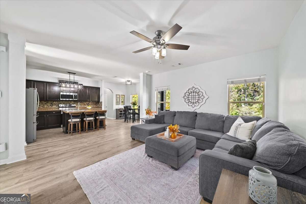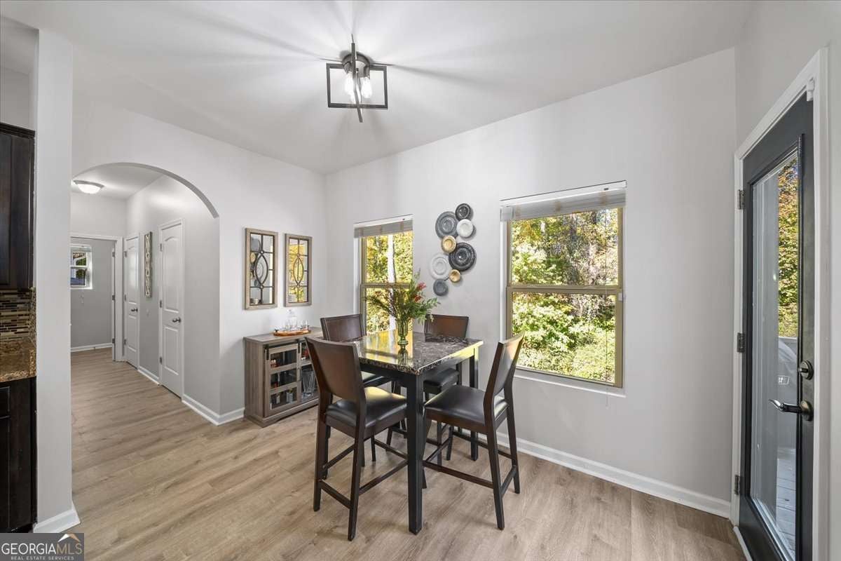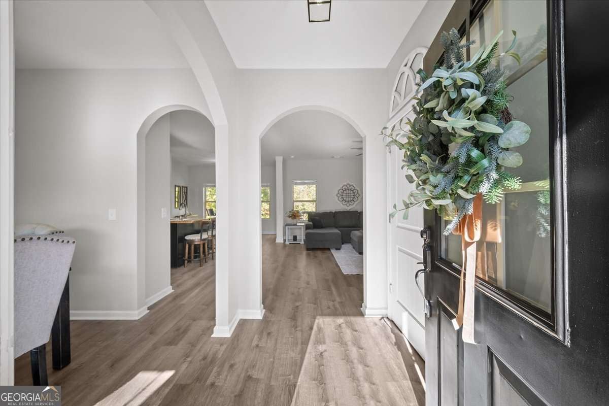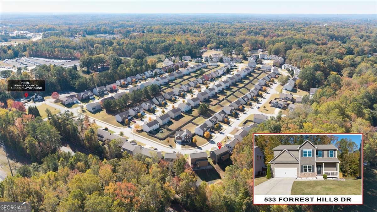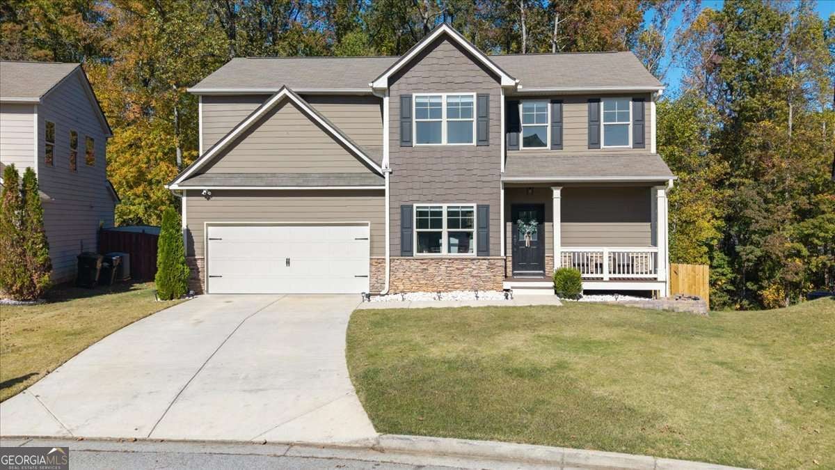 Welcome to 533 Forrest Hills Drive-an inviting, well-maintained home nestled on a peaceful corner in Forrest Hills community of Paulding County. Built in 2015 and thoughtfully updated throughout, this 4-bedroom, 2.5-bath home offers over 2,000 square feet of comfortable living space and a floorplan designed for modern living. Step inside to a welcoming entryway with graceful arched doorways and a formal dining room that sets the tone for gatherings. The main level features an open-concept living room and kitchen, complete with a center island, breakfast area, stainless steel appliances, updated fixtures, and a large walk-in pantry-perfect for extra storage and everyday convenience. A spacious laundry room and powder bath complete the main floor. Upstairs, all bedrooms are conveniently located off a bright and airy landing, filled with natural light from large windows. The serene primary suite features tray ceilings, a large walk-in closet, and an ensuite bath with a dual vanity, soaking tub, and separate shower. Three additional secondary bedrooms share a well-appointed hall bath with a unique sit-down vanity space-ideal for busy mornings. Out back, enjoy your private, fenced yard with a custom firepit and seating area, perfect for cool evenings. A newly painted deck offers the ideal spot for grilling and outdoor dining. The attached 2-car garage has a new door, and recent updates include interior and exterior paint (2025), refreshed upstairs flooring, modern fixtures, and new kitchen appliances (2021). Located in a swim, tennis, and playground community, Forrest Hills offers a friendly and active lifestyle with amenities the whole household can enjoy. From neighborhood strolls to summer afternoons by the pool, it's a place where comfort meets connection. Tucked into a quiet corner of the community, this home offers both privacy and convenience-located close to local schools, shops, dining, and parks.