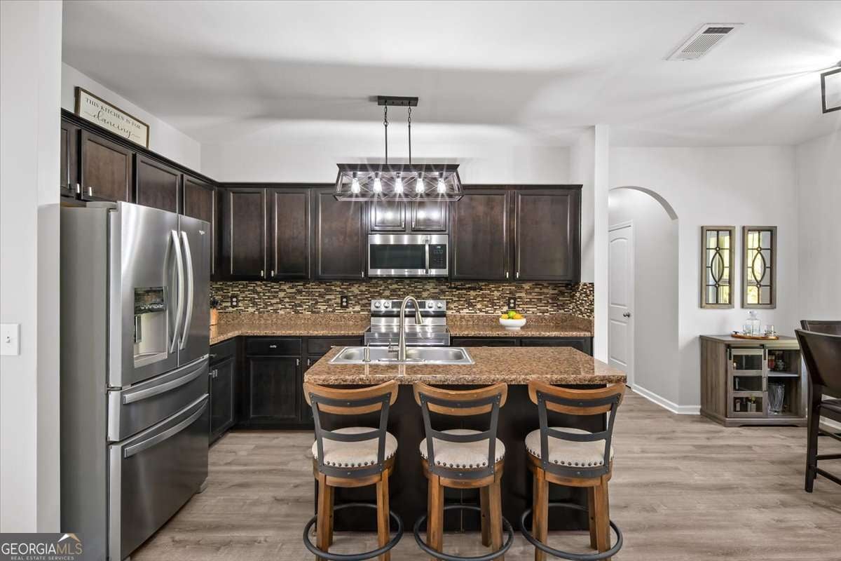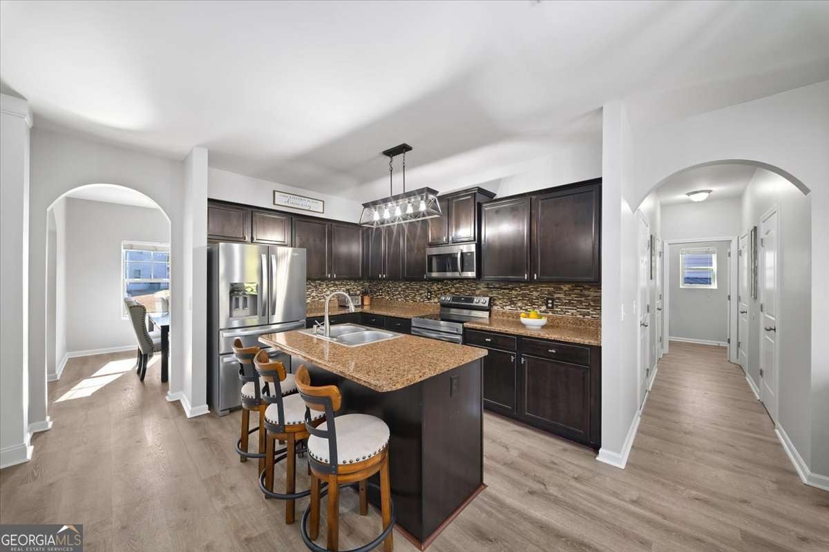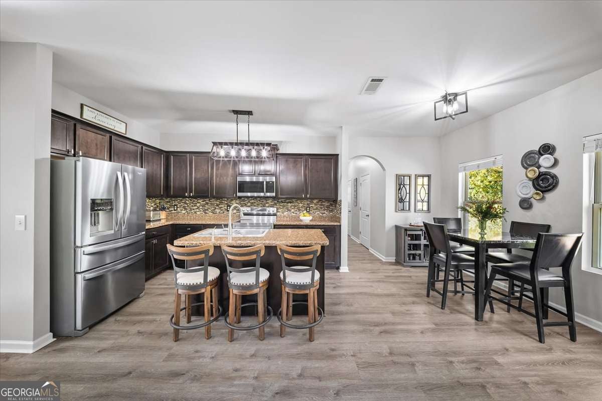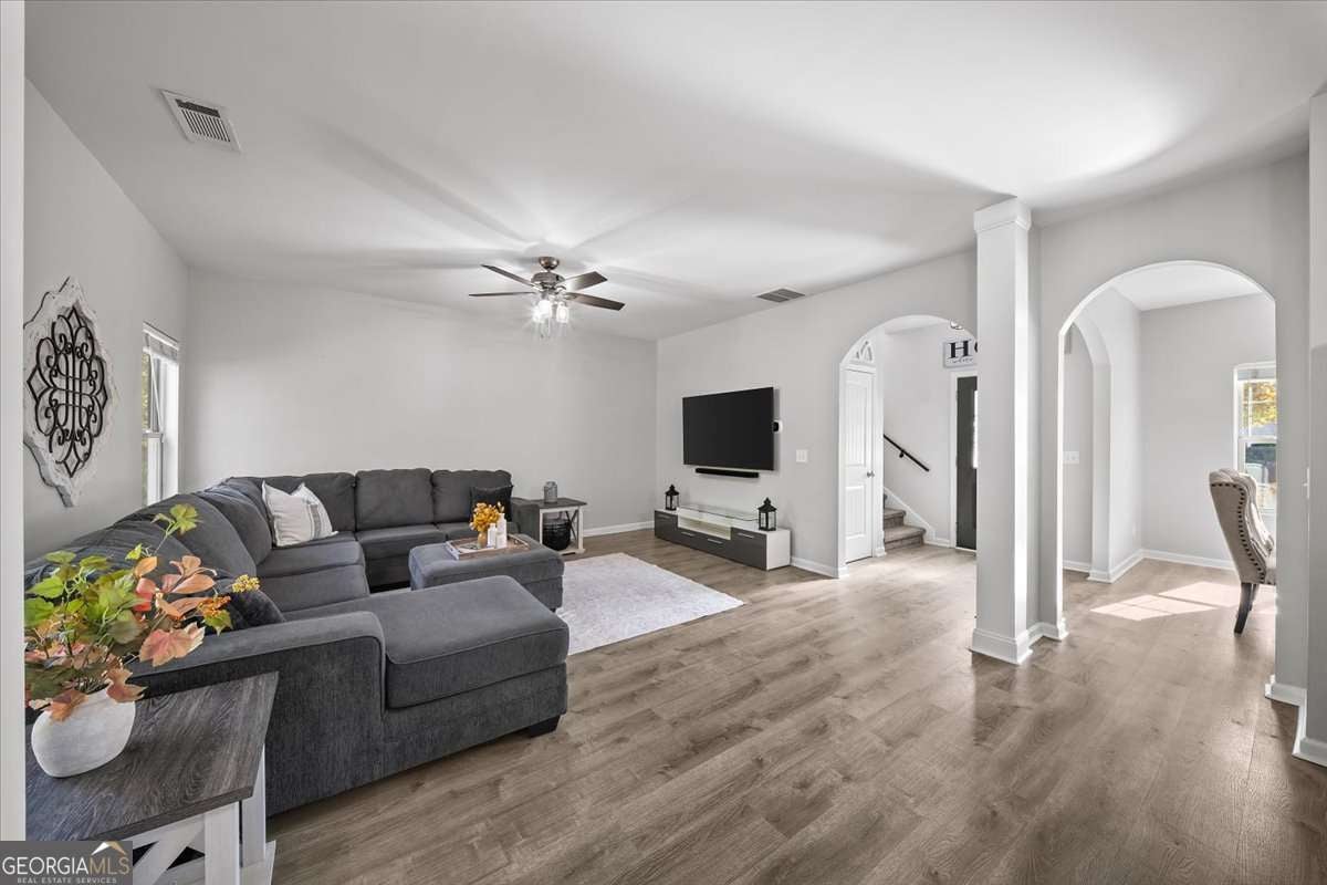 Welcome to 533 Forrest Hills Drive-an inviting, well-maintained home nestled on a peaceful corner in Forrest Hills community of Paulding County. Built in 2015 and thoughtfully updated throughout, this 4-bedroom, 2.5-bath home offers over 2,000 square feet of comfortable living space and a floorplan designed for modern living. Step inside to a welcoming entryway with graceful arched doorways and a formal dining room that sets the tone for gatherings. The main level features an open-concept living room and kitchen, complete with a center island, breakfast area, stainless steel appliances, updated fixtures, and a large walk-in pantry-perfect for extra storage and everyday convenience. A spacious laundry room and powder bath complete the main floor. Upstairs, all bedrooms are conveniently located off a bright and airy landing, filled with natural light from large windows. The serene primary suite features tray ceilings, a large walk-in closet, and an ensuite bath with a dual vanity, soaking tub, and separate shower. Three additional secondary bedrooms share a well-appointed hall bath with a unique sit-down vanity space-ideal for busy mornings. Out back, enjoy your private, fenced yard with a custom firepit and seating area, perfect for cool evenings. A newly painted deck offers the ideal spot for grilling and outdoor dining. The attached 2-car garage has a new door, and recent updates include interior and exterior paint (2025), refreshed upstairs flooring, modern fixtures, and new kitchen appliances (2021). Located in a swim, tennis, and playground community, Forrest Hills offers a friendly and active lifestyle with amenities the whole household can enjoy. From neighborhood strolls to summer afternoons by the pool, it's a place where comfort meets connection. Tucked into a quiet corner of the community, this home offers both privacy and convenience-located close to local schools, shops, dining, and parks.