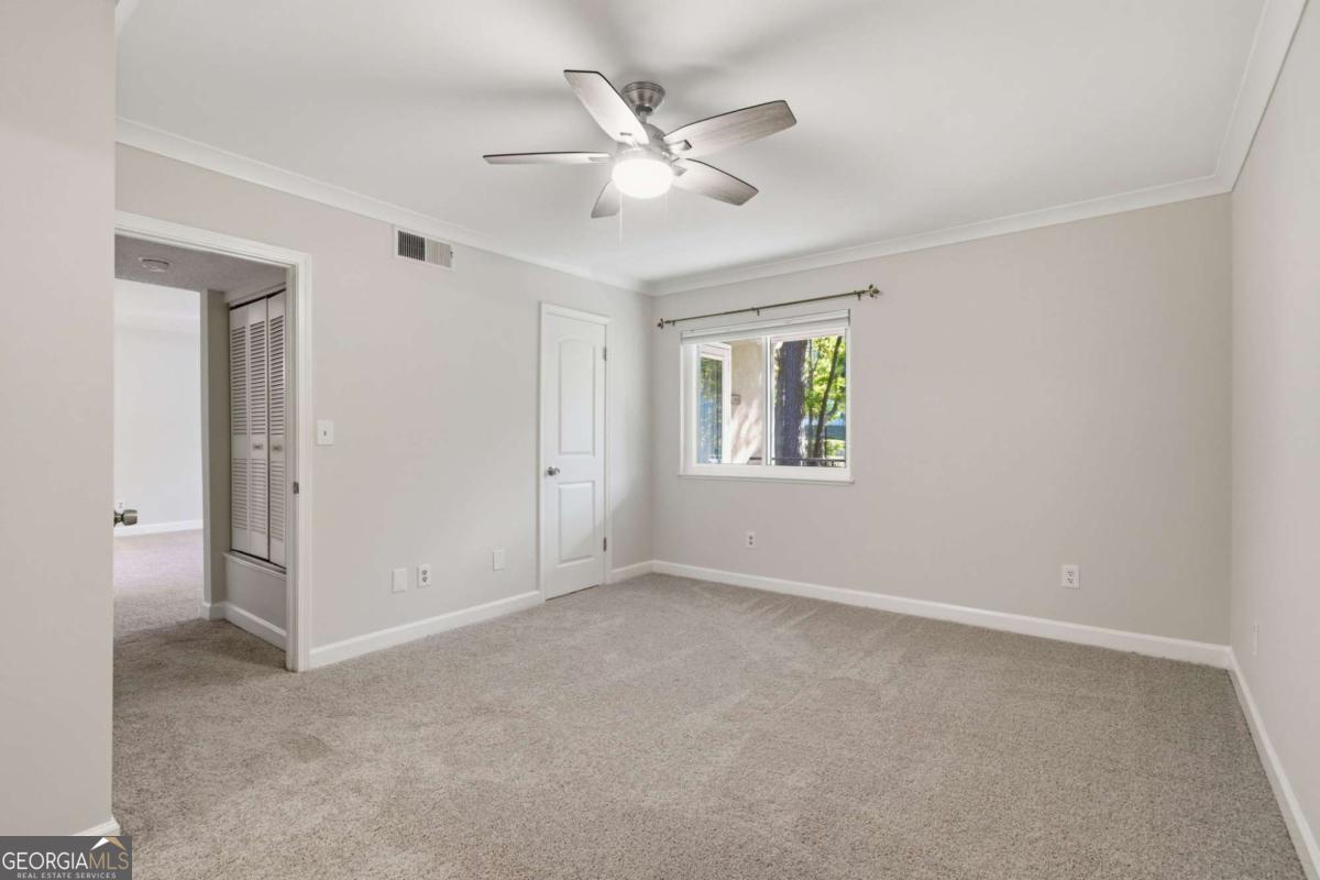 DON'T LET THIS ONE GET AWAY. Newly updated, turnkey condo with a split bedroom layout and bonus sunroom! A major highlight of this home is new Sunrise energy-efficient windows, offering exceptional noise reduction, energy savings, and year-round comfort. In addition, the owners have added R-49 attic insulation, a unique upgrade that boosts energy efficiency and helps lower utility costs. Additional features include brand-new quartz countertops with large, deep single-bowl sink and new faucet in the kitchen; new quartz countertop with rectangular undermount sink and new faucet in the hall bath; sleek new cabinet hardware in the kitchen and hall bath; new modern vanity with rectangular sink in the owner's bath; fresh neutral paint; new carpet; updated lighting, ceiling fans in bedrooms; and light-filtering honeycomb shades throughout, creating a warm, modern feel from the moment you enter. The open living area offers plenty of space to relax and entertain, while the fully enclosed sunroom provides a highly versatile bonus space that is perfect for a home office, workout area, playroom, or cozy morning coffee spot. The kitchen also features newer stainless-steel appliances and white subway tile backsplash. The generous owner's suite includes two walk-in closets, crown moulding, and a renovated bathroom with a walk-in shower. The split-bedroom design gives the guest suite ideal privacy, complete with an oversized walk-in closet and its own renovated bathroom. You'll also appreciate the large walk-in laundry room, offering excellent additional storage space. Outside, residents enjoy resort-style amenities, including an outdoor pool, grilling station, covered lounging areas, dog park, tennis court, playground, fire pit, renovated fitness center, walking trail and a community clubhouse with newly renovated restrooms and gym. Renovations to the clubhouse and pool are planned for 2026. Future walking trails connecting to Morgan Falls and the Chattahoochee River are also in progress by the City of Sandy Springs. All of this is in a prime location close to top-rated schools, hospitals, shopping, dining, GA-400, and Hwy 9. Does this feel like the right fit? We would love to show you around. Contact us now to schedule a private showing.
