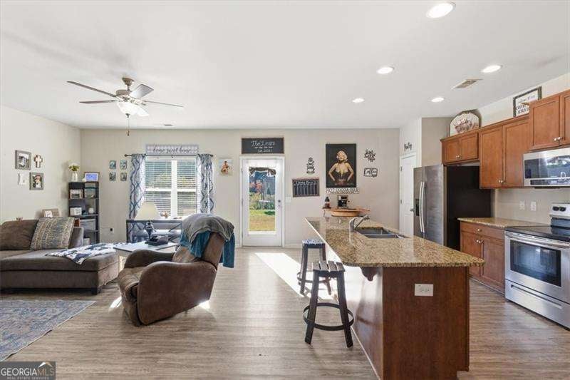 Welcome home to this inviting 3-bedroom, 2-bath all-electric ranch featuring an open-concept layout and flat yard perfect for easy living. The split bedroom plan offers two bedrooms at the front of the home and a private owner's suite tucked away in the back. You'll love entertaining in the bright kitchen with its extra-large island, ideal for gatherings or casual meals. Extend the back patio, add a pergola, and you've got the perfect spot for relaxing weekends or summer cookouts. Conveniently located minutes from popular shopping, dining, and a local park with a lake and walking trail, this home offers comfort and connection. Whether you're a small family, downsizer, or college student ready to put down roots, this home is the perfect place to settle in and enjoy all that Rome has to offer.