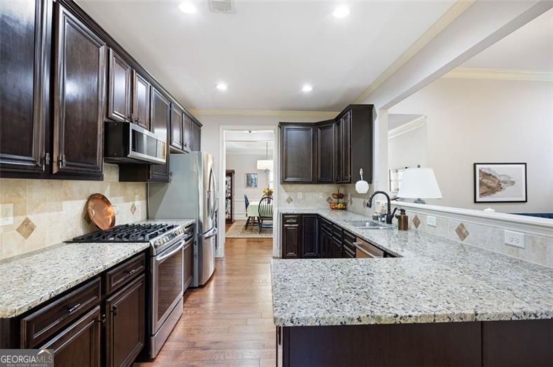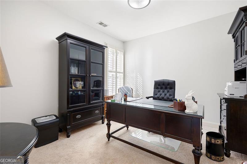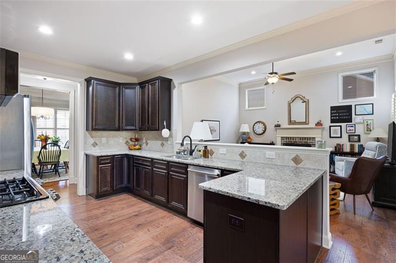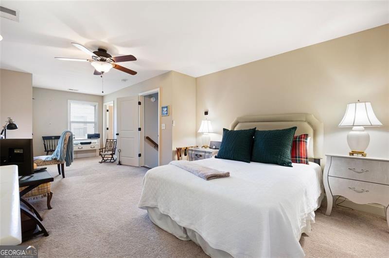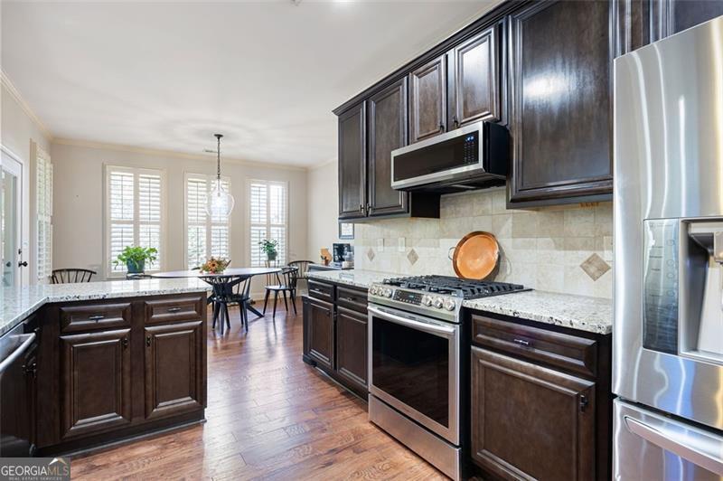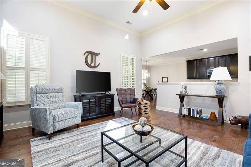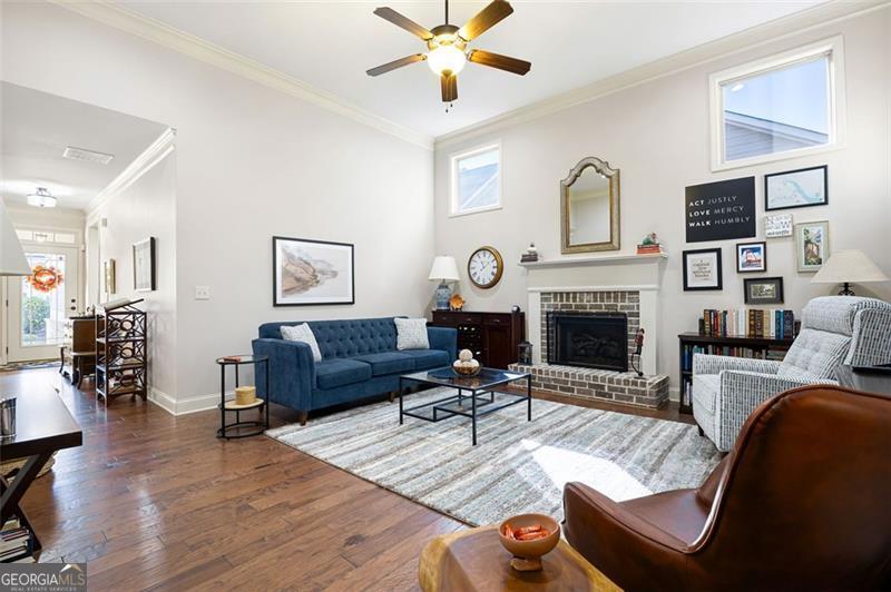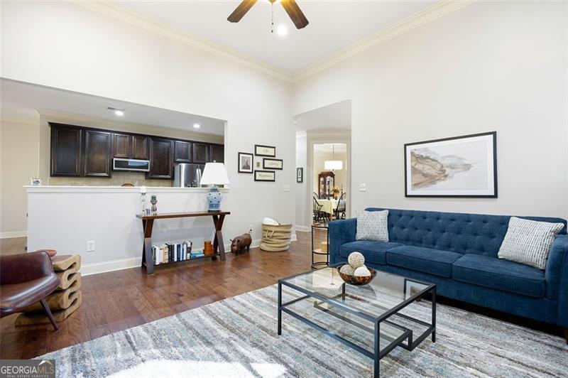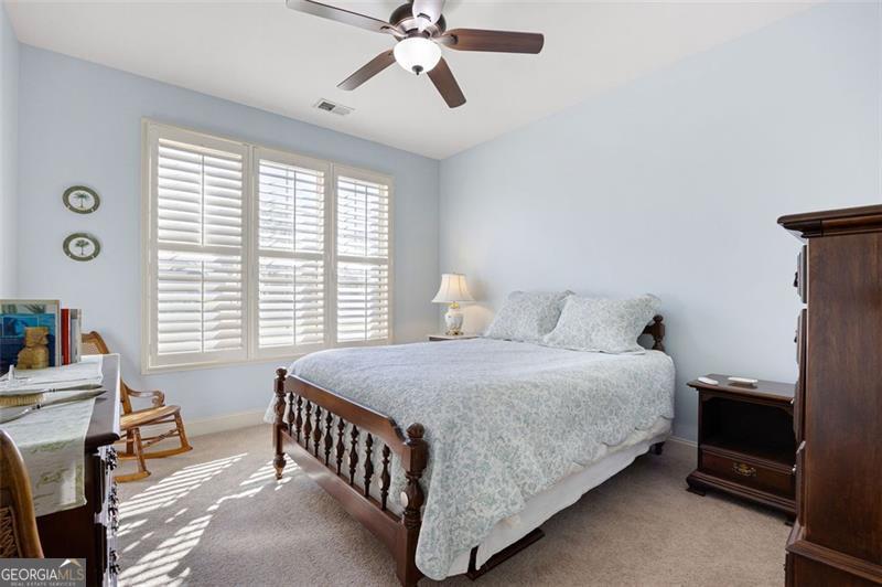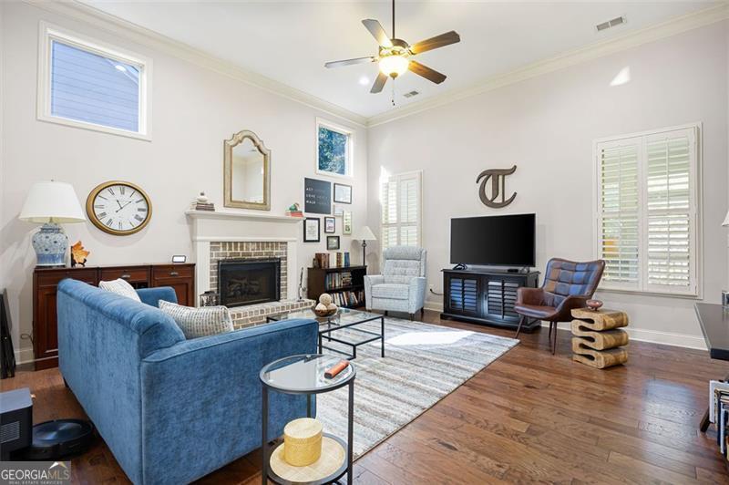 Discover timeless comfort and craftsman charm in this stunning main-level home, nestled in a premier 55+ community in Marietta, just under a mile from restaurants, shopping, groceries, banks, and top-rated schools. Step inside to soaring natural light, rich hardwood floors, and exquisite trim throughout; the chef's kitchen, open to the cozy family room with plantation shutters, is an entertainer's dream, flowing seamlessly into a finished, covered sunroom overlooking your private, lush backyard oasis. The lavish primary suite offers serenity with custom built-ins and abundant space, while a private upstairs suite with full bath adapts effortlessly to guests, office, or gym. A generously sized laundry room features a spacious folding counter with built-in storage below and ample upper cabinets above the washer and dryer. The terrace-level patio is perfect for grilling and gatherings, and a full 2,100 sqft unfinished basement awaits your vision. With HOA-covered yard care, this low-maintenance gem delivers peace, privacy, and convenience, this is the one you've been waiting for and it won't last long!